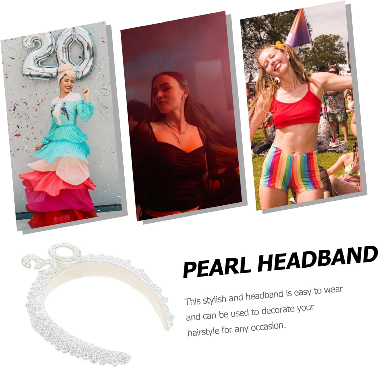 Accessorio per per lady: aumenta l'area del contratto e riduce l'estrusione della testa, il che rende più comodo da indossare, fascia per feste Larga fascia-con un aspetto semplice ma elegante e raffinata fattura per praticità e estetica, fascia di compleanno Cesti per per feste-iimitazione del numero di perle intarsiate elementi per la testa per darti un aspetto molto elegante e di classe, copricapo delle feste Class per intarsiati perla-la fascia è elegantemente realizzata e molto conforte Bancella divertente: non dose non cadere sulla testa tiene i fuori dal viso anche non troppo stretti dietro le orecchie, fascia di compleanno con perle