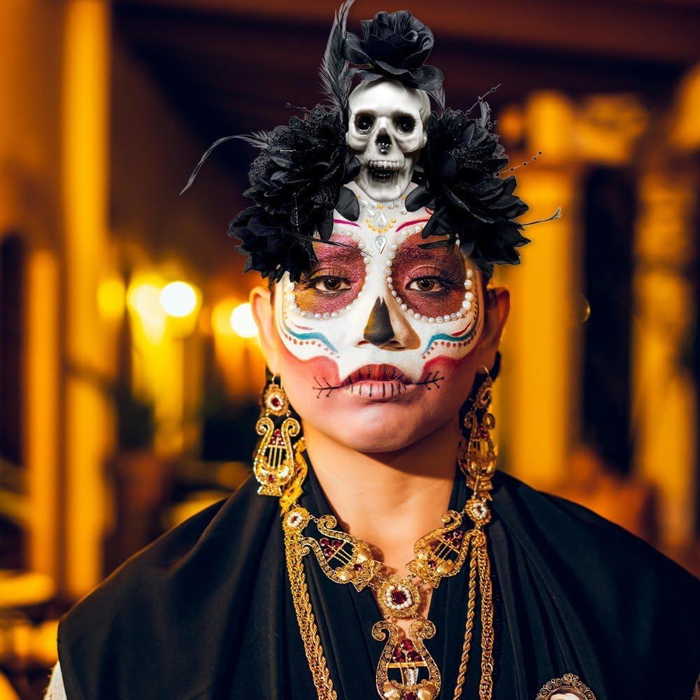 Design adattabile: si adatta perfettamente a diverse acconciature, aiutandoti a ottenere un aspetto cosplay raffinato e autentico, fascia per con teschio, fasce per per feste cosplay di Halloween. Decorazione dettagliata: caratterizzato fiori realistici e motivi a teschio, questo accessorio è realizzato per stupire con i suoi dettagli intricati e accattivanti, copricapo di Halloween per , cerchietto per . Stile versatile: progettato per adattarsi a diverse acconciature, questo accessorio ti aiuta a ottenere senza sforzo un look cosplay di Halloween con una maggiore autenticità del personaggio, fasce per con teschio per , fascia per il giorno della morte. Combinazione di fiori e teschi: combinazione di fiori realistici e dettagli a forma di teschio aggiunge un tocco unico outfit, mettendo in mostra il lato creativo, fascia per con osso, copricapo con teschio. Abbinamento senza sforzo: si adatta a un'ampia gamma di costumi, dai temi punk a quelli carnevaleschi, diventando un'aggiunta versatile alla tua collezione di accessori, cosplay di Halloween, fasce per horror.