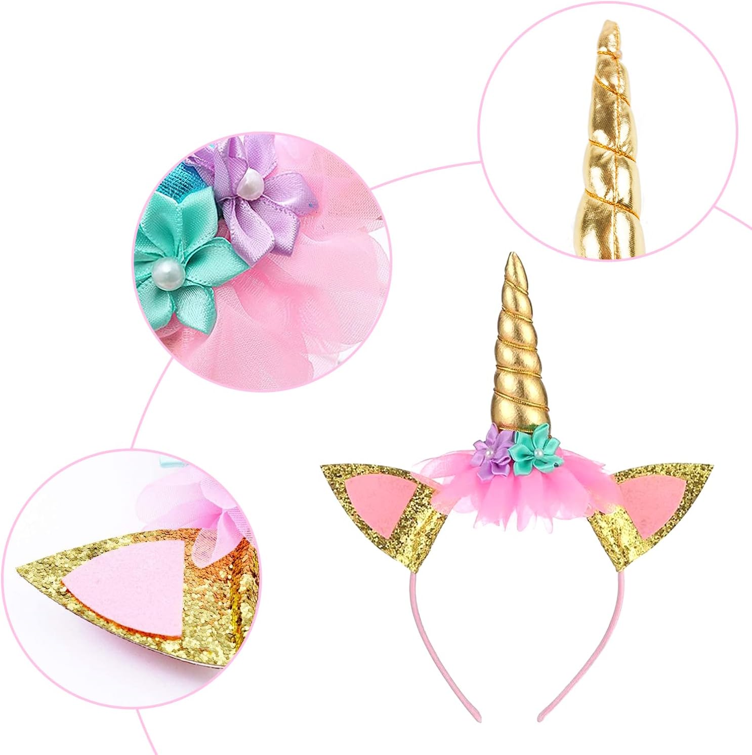 Jmitha Fascia per capelli con corno di unicorno Costume cosplay per feste di compleanno Feste Festival Fascia per unicorno Fascia elastica per principessa Materiale: tessuto di alta qualità + fiori di seta, cravatte artigianali e ben fatte. La fascia elastica si adatta alla maggior parte delle teste, morbida e molto leggera, comoda per i bambini piccoli. Questa fascia può essere utilizzata come decorazione per una torta per una festa con unicorno ma anche su un cavallo di peluche per sembrare un vero unicorno. Occasione: festa di compleanno per baby shower, foto di famiglia, festa di trucco in costume cosplay...... regalo perfetto per neonati, neonati, bambini piccoli. Questa è una fascia molto speciale! Il corno di unicorno con fiori e orecchie è una combinazione molto divertente. È perfetto per le bambine che amano travestirsi! O genitori che amano vestire i propri figli. Il miglior vestito da dressage per giocare a travestirsi con i bambini, è delizioso, divertente, gioioso e assolutamente fantastico.