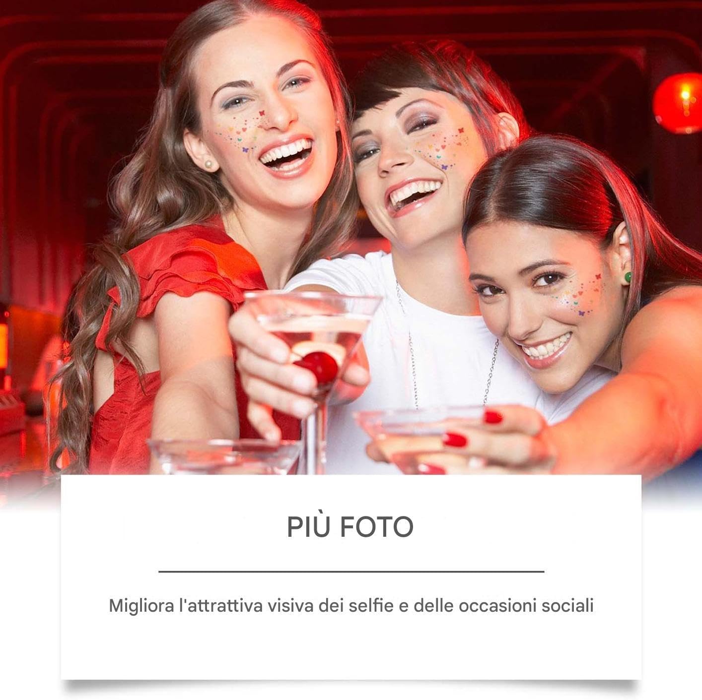 Uso Immediato: Cerotti con tecnologia a pasta pronti all'uso senza preparativi, processo conveniente che ottimizza e semplifica la routine Impiego multiuso: Che sia un festival musicale, una sfilata, una celebrazione o una festa a tema, questi adesivi decorativi offrono una soluzione multiuso per esprimere individualità ad ogni evento sociale Tocco Makeup Ricercato: Ottieni risultati accattivanti con cerotti che aumentano il fascino e semplificano l'applicazione del trucco a strati, perfetti per ritocchi o feste last minute Design Impermeabile: Tecnologie avanzate preservano l'effetto sfumato impeccabile con barriera anti-umidità. Resistenti ad acqua e sudore, proteggono il trucco da pioggia e traspirazione mantenendo la texture impeccabile per 24 ore Tocco Morbido: Lo strato adesivo amichevole per la pelle assicura un'applicazione confortevole e delicata, con impercettibile che previene disagi durante l'uso prolungato senza causare