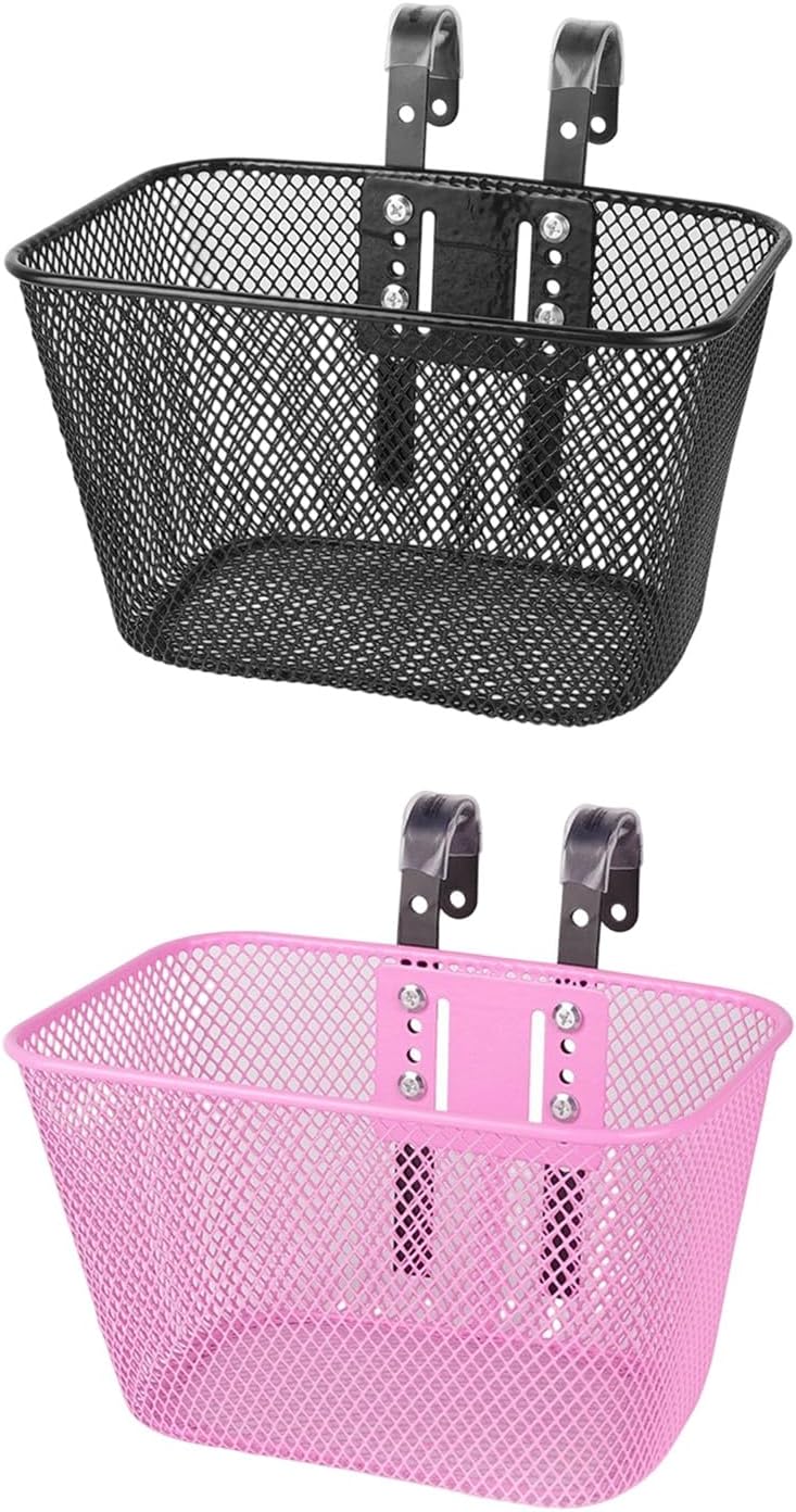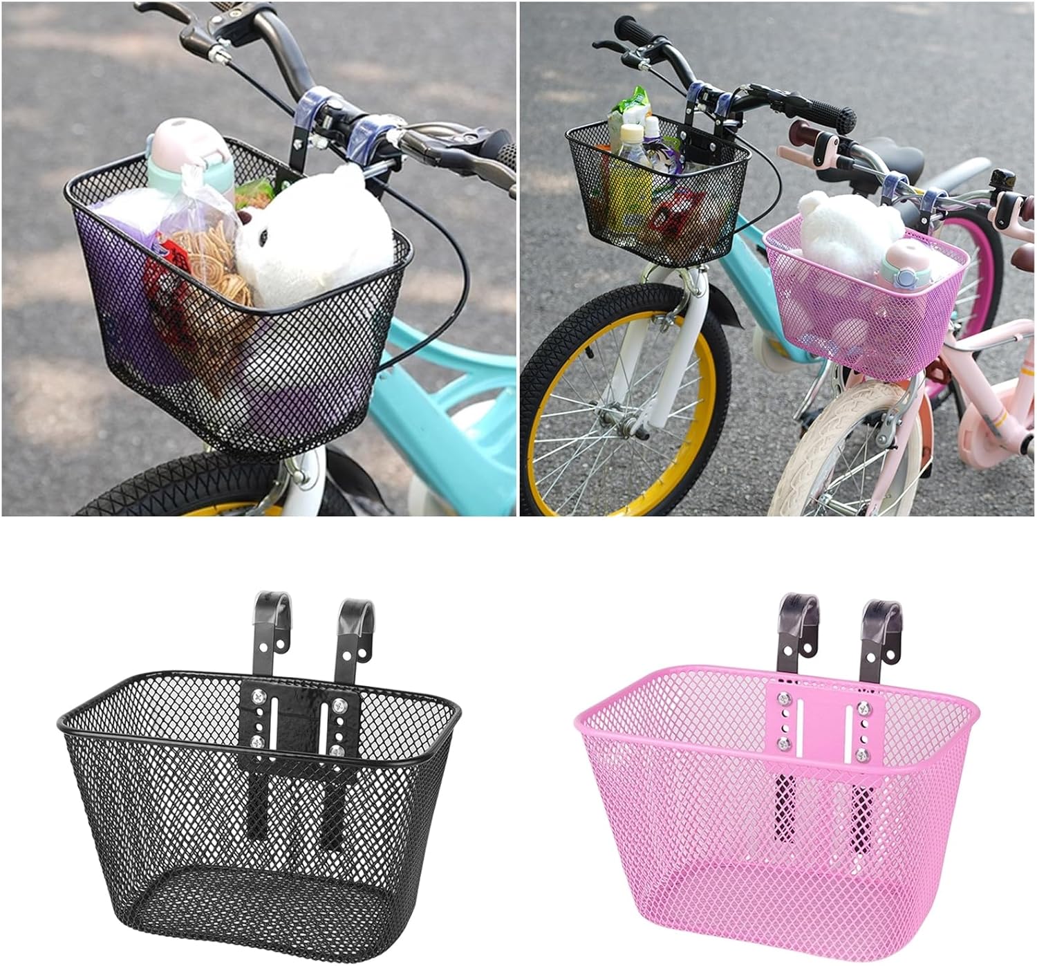 Realizzato in metallo, resistente e robusto, non facilmente deformabile o danneggiato Il cestino può essere collegato saldamente alle biciclette per bambini. Puoi mettere libri, borse e cibo nel cestino La parte superiore e piccola parte inferiore è facile da mettere e prendere oggetti come libri, fiori, giocattoli, cibo Il cestino per biciclette per bambini può essere lavato direttamente con acqua e asciugato Ogni cestino è dotato di due ganci per un facile montaggio e smontaggio
