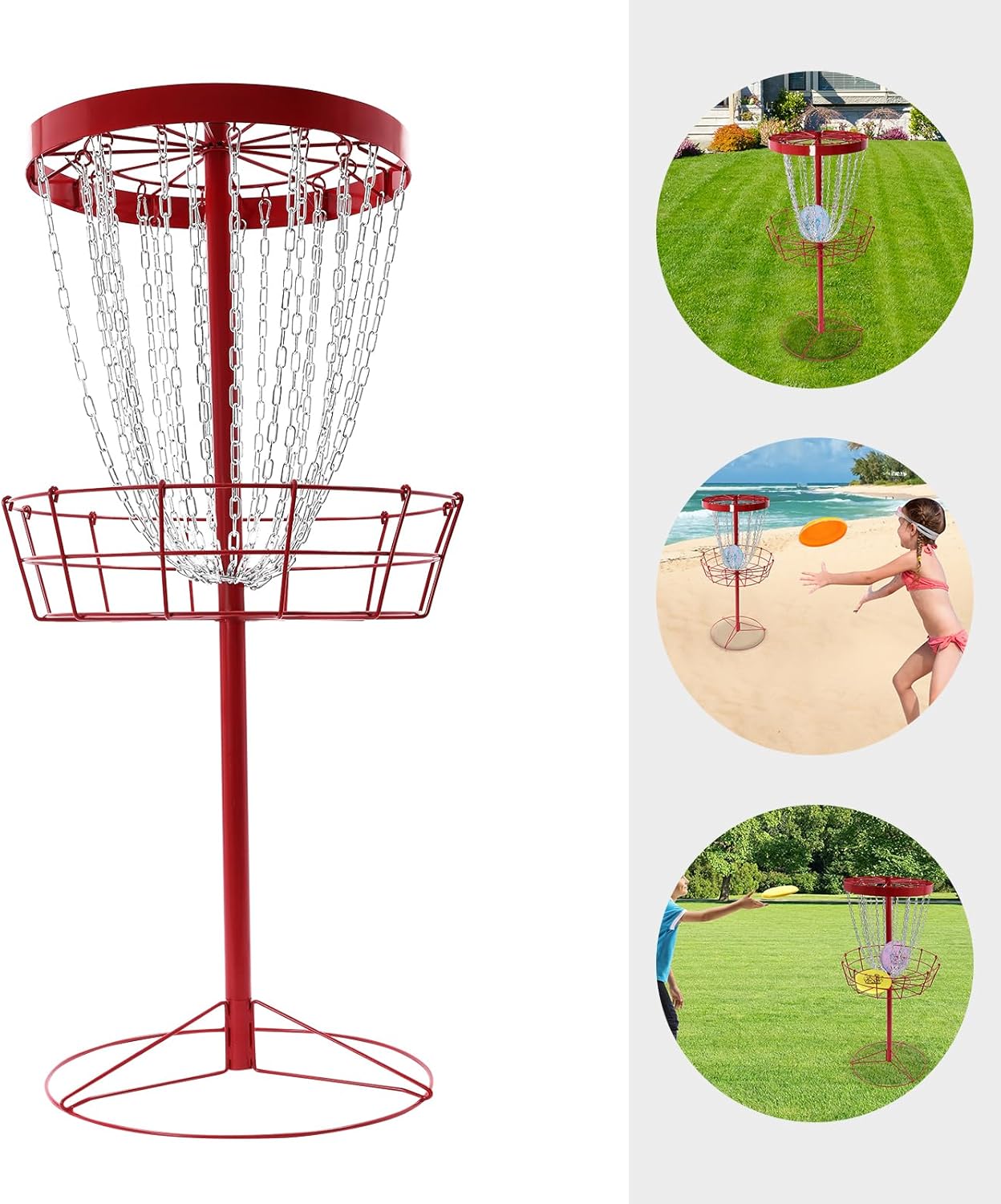 [Robusto e durevole] Questo cestino da golf è realizzato in ferro di alta qualità e rifinito con una finitura a fuoco che garantisce un'eccellente resistenza alla ruggine e agli agenti atmosferici. È perfetto per l'uso all'aperto e resiste anche a condizioni difficili. [Alta stabilità, uso sicuro] Il fondo rotondo e il telaio triangolare garantiscono un'eccellente stabilità e impediscono al cestino da golf di ribaltarsi in caso di putt potenti o vento forte. [Design intelligente, più comfort] La parte superiore è dotata di 24 catene e un robusto telaio a catena per ridurre al minimo il rimbalzo della racchetta e mantenere la palla da golf sicura nel catcher. [Divertimento in famiglia] Che sia un principiante o un esperto, questo cestino da golf offre divertimento e intrattenimento ai giocatori di tutte le età. [Facile da pulire, facile da montare] La superficie liscia e la struttura cava di questo cestino da golf consentono una facile pulizia con un panno umido. Il design rimovibile facilita ulteriormente la pulizia.