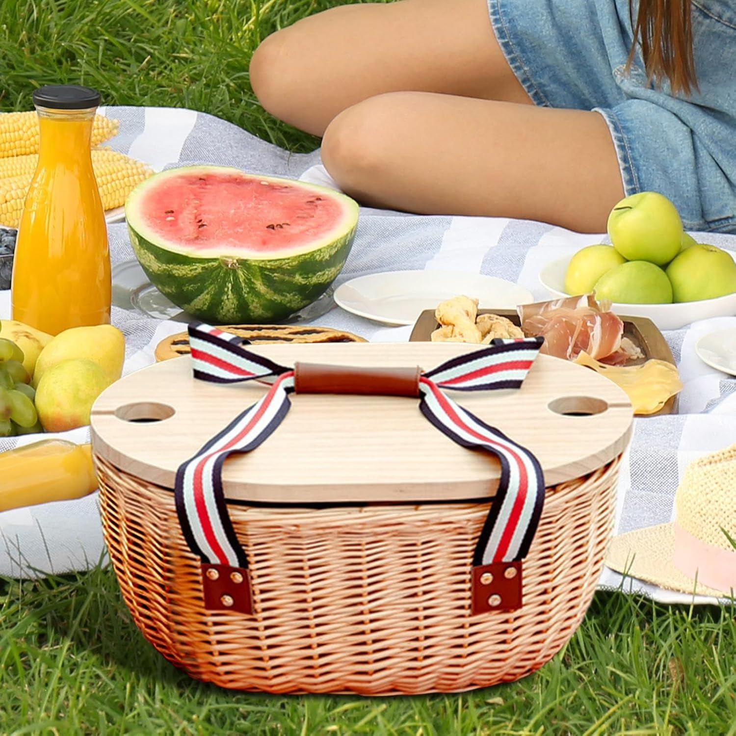 Sorpresa perfetta: regalate una sorpresa commovente con questo cestino da picnic, un regalo unico per occasioni speciali. Ideale per tutte le feste, è un'idea regalo per le vacanze che esprime naturalmente il tuo affetto in modo distintivo e sincero. Solidità Garantita: questo cestino da picnic in rattan combina robustezza eccezionale e intreccio durevole, offrendo un compagno affidabile per tutte le tue avventure all'aria aperta grazie alla sua costruzione senza tempo e resistente. Ideale per attività all'aperto: questo cesto da picnic da spiaggia indispensabile incorpora un doppio portabicchieri e un tavolo pieghevole compatto. Accessorio per pasti all'aperto perfetto per momenti rilassati all'aria aperta con una portabilità ottimale. Uso universalePensato per la flessibilità nella vita quotidiana, questo cestino da picnic funge da pratico organizzatore per i tuoi momenti festivi, passando armoniosamente dall'uso interno all'esterno, migliorando ogni occasione con il suo design funzionale. Freschezza esterna: dotato di tecnologia termica per preservare la freschezza all'aria aperta, mantiene i pasti freschi grazie ai blocchi refrigeranti e offre superfici pratiche da pulire.