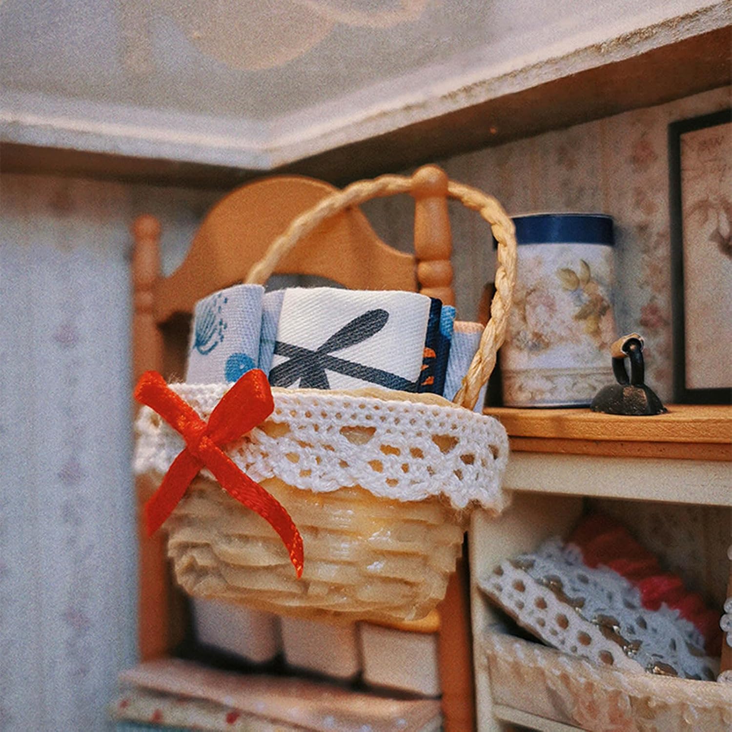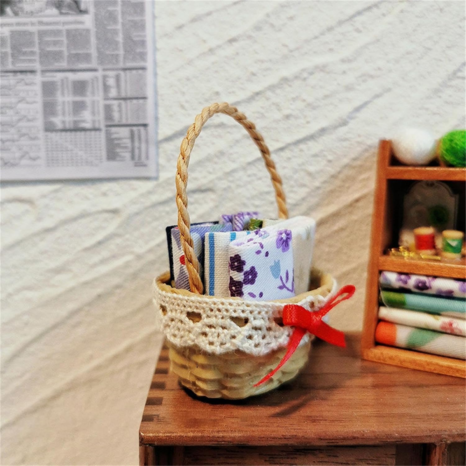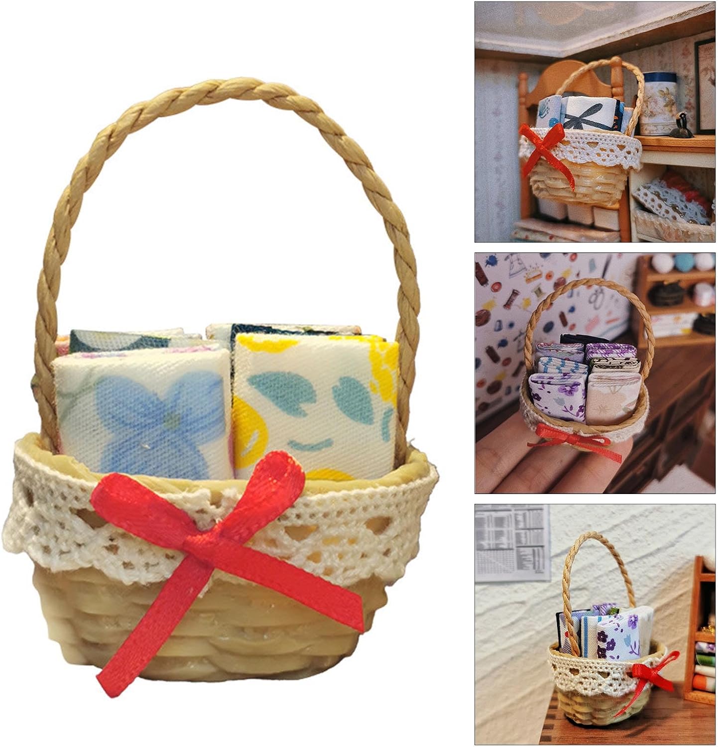 Con una buona stimolazione e formazione educativa per i bambini, stabilire la loro capacità cognitiva delle case delle bambole e promuovere la coordinazione occhio-mano del bambino Adatto per giochi di finzione e anche per decorazioni per case delle bambole Struttura in resina, resistenza all'usura, sicura per i bambini Cestino intrecciato, realistico e adatto per decorazioni di case delle bambole Un set da gioco modello giocattolo, non un vero cestino, si prega di infastidire anche eventuali feriti