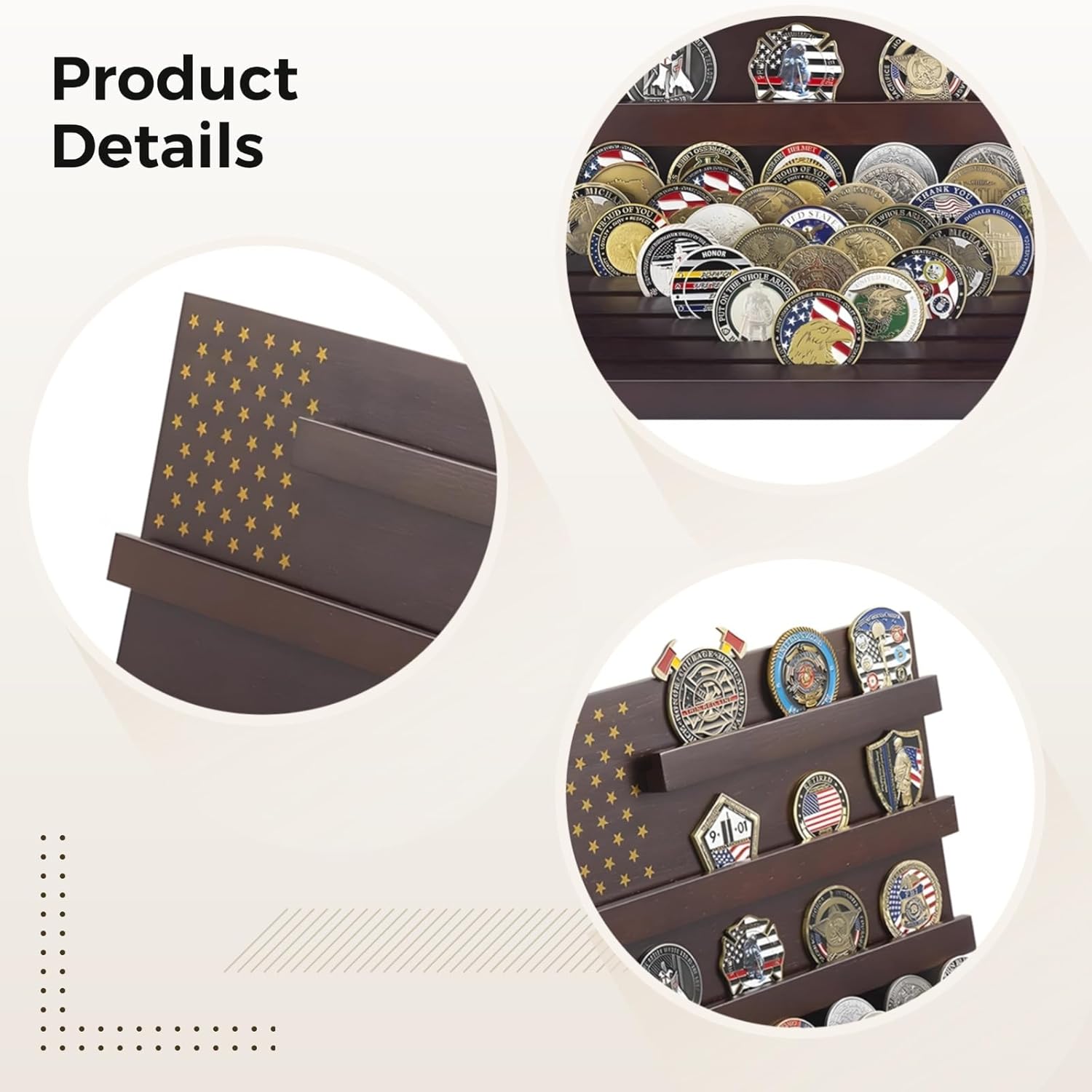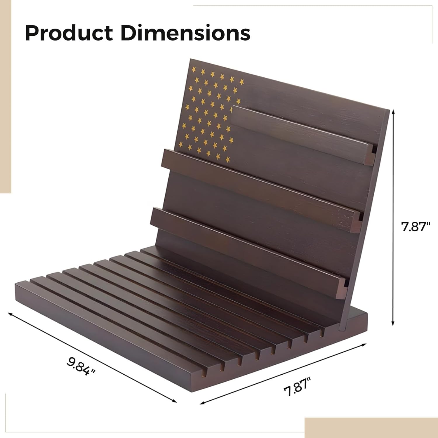 Materiale in legno affidabile: costruito in legno naturale, che garantisce un forte supporto; progettato per conservare monete a lungo termine Artigianato dettagliato: ogni pezzo è accuratamente realizzato a mano con attenzione ai dettagli; offre bellezza e praticità per i collezionisti Decorazione con bandiera a stella: il design della bandiera americana dà un tocco patriottico, per monete, medaglie e altri ricordi Grande capacità: include slot verticali e orizzontali per ospitare fino a 100 monete; per esporre una collezione in crescita Elegante e pratico: legno nero con base piatta; un espositore elegante e salvaspazio che si abbina a qualsiasi arredamento della stanza