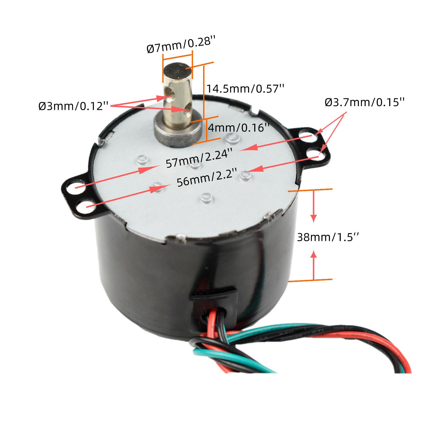 *Questa è una combinazione di motore 50KTYZ e supporto. Questo motore sincrono è stabile, durevole e compatibile. Può funzionare per molto tempo. La staffa è realizzata in materiale intellettuale di alta qualità. *Specifiche del motore: diametro dell'albero: 7 mm; Lunghezza dell'albero: 14,5 mm; Tensione operativa: CA 220 V; Velocità: 1-1,2 giri/min; Frequenza: ~50/60Hz; Potenza: 7 W; Condensatore: 0,56uF; Coppia: ≤30Kgf.cm; Rotazione: CW/CCW (controllabile); *Specifiche della staffa: Materiali: acciaio ad alta resistenza; Livello verticale: spessore 3 mm, altezza 65 mm; Piastra di base: 65 mm x 65 mm; Foro di montaggio del motore: 5,3 mm, 4,0 mm; *Applicazione: un buon motore per la casa, l'artigianato, progetti scolastici, modellini, luci, annunci pubblicitari e tutto ciò che desideri. Utilizzato principalmente in strumenti, automazione, incollatrici, lampade da palcoscenico e apparecchiature per display pubblicitari, controllo automatico di tende, regolatore automatico di tensione, quadro elettrico, ecc. *La confezione include: 1 motore, 1 staffa motore, 2 dadi, 2 viti.