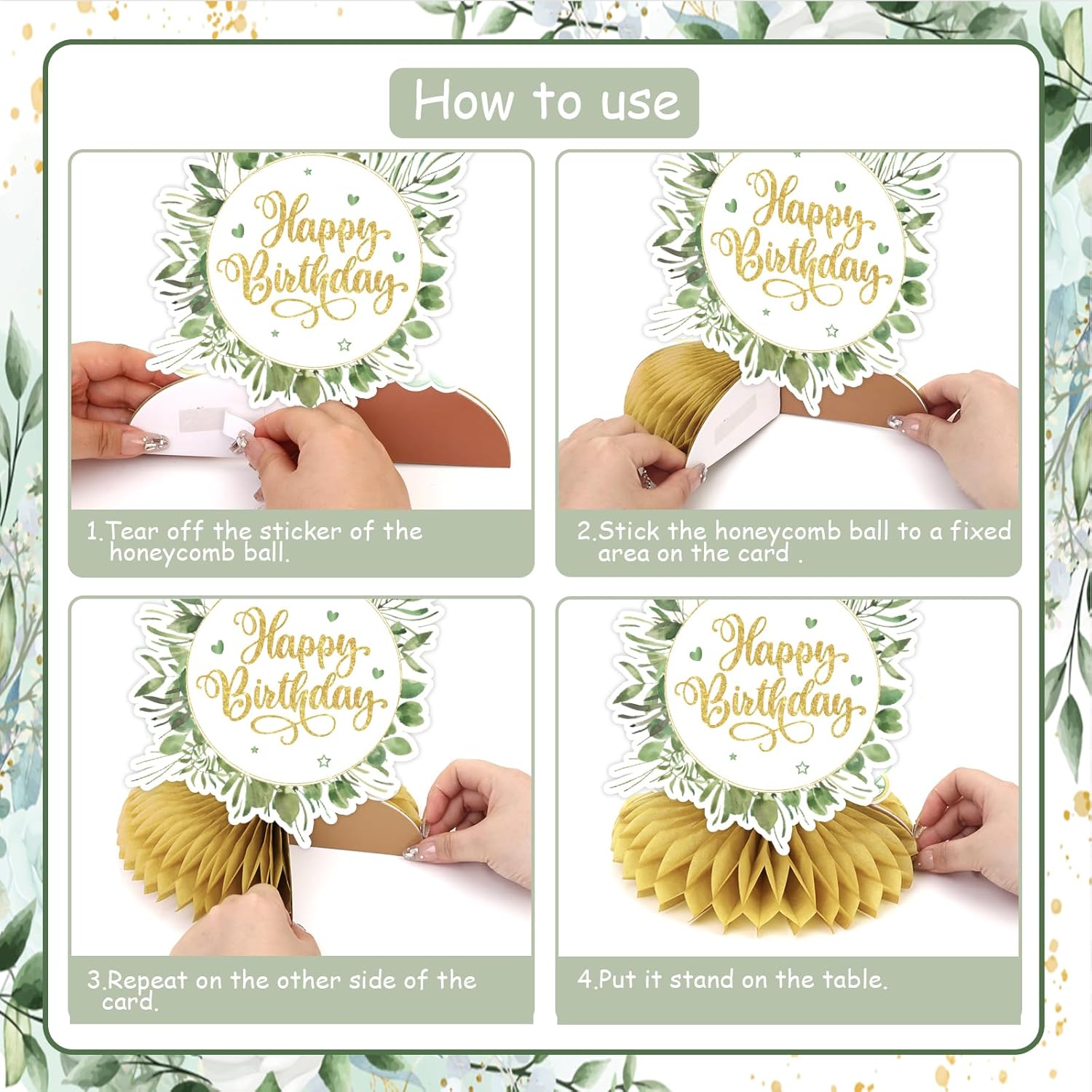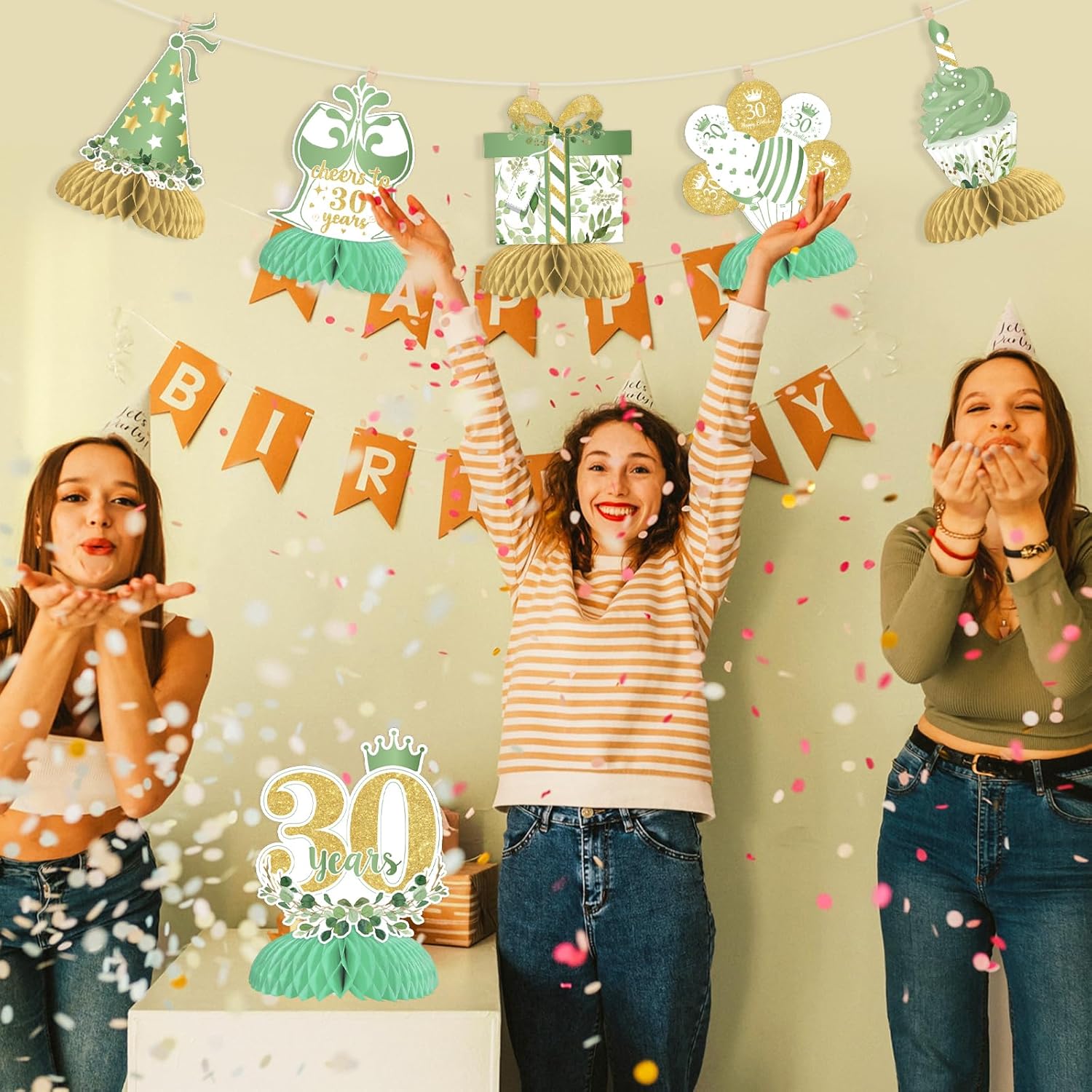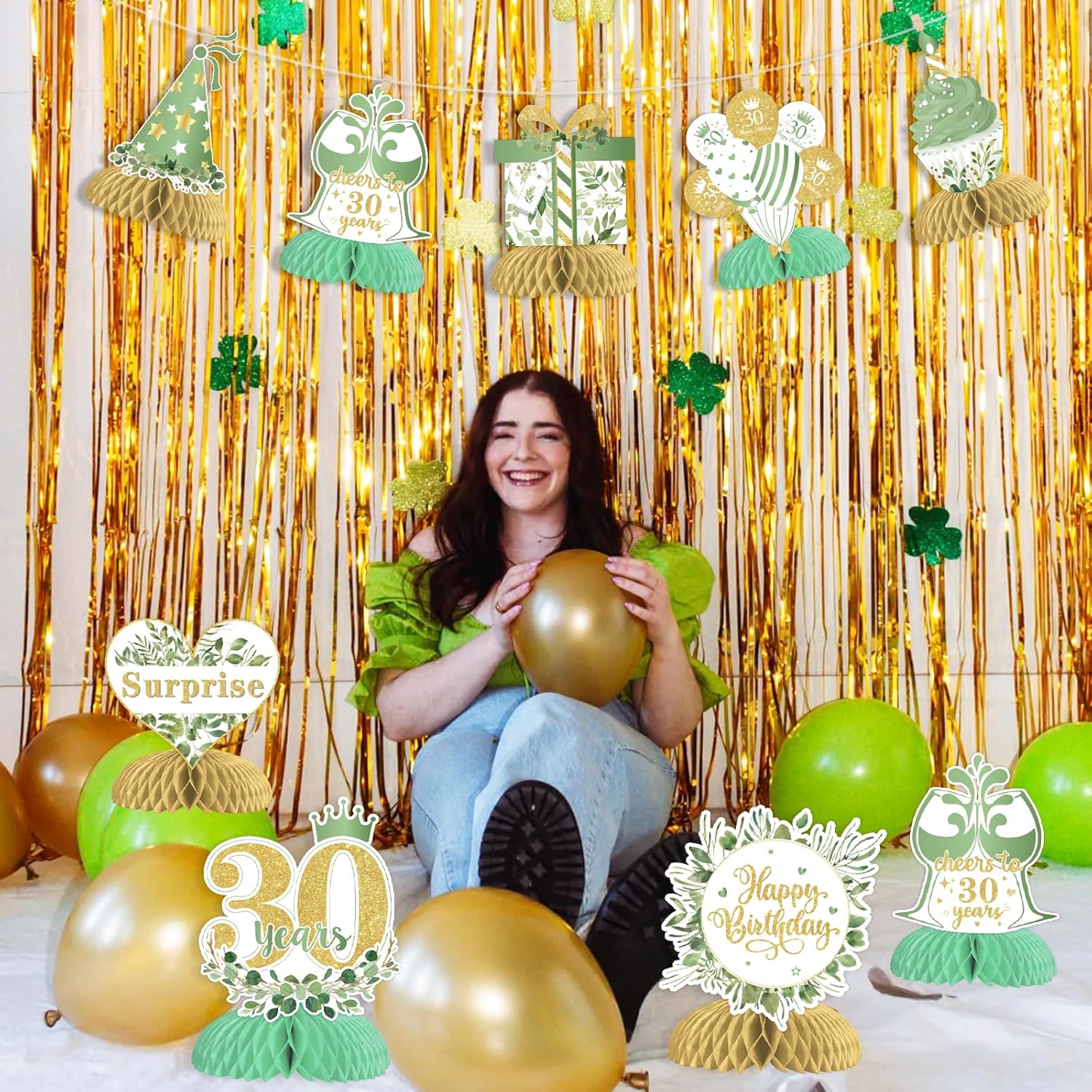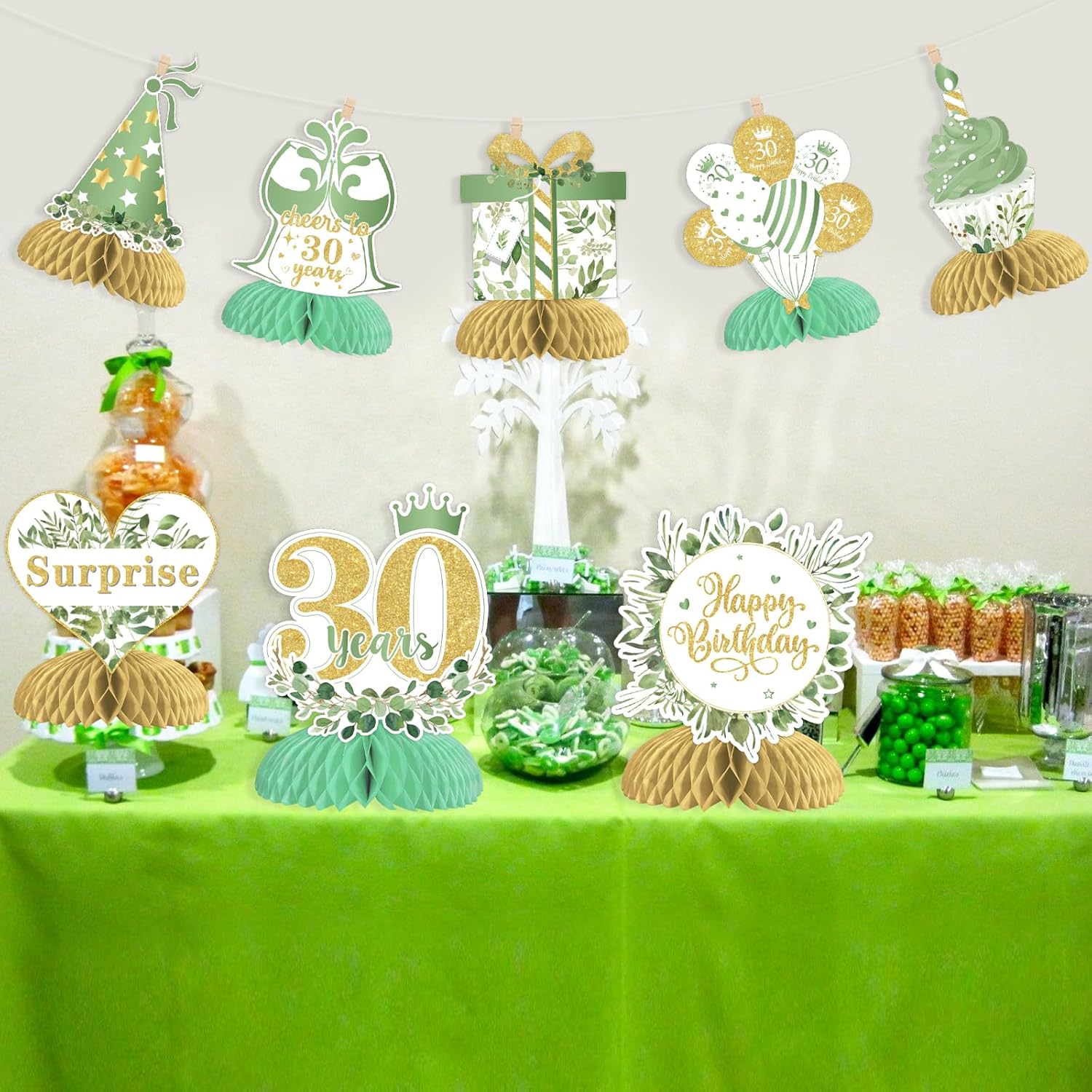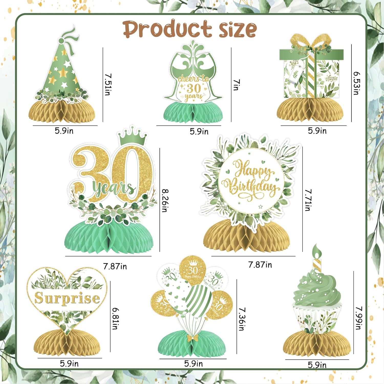 Centrotavola a nido d'ape per 30° compleanno: riceverai 8 centrotavola a nido d'ape verde salvia felice per il 30° compleanno con 8 diversi modelli. E la dimensione di ogni centrotavola a nido d'ape è di circa 17,8 x 15,2 cm. Modelli unici e squisiti: ci sono 8 diversi modelli, tra cui scatole regalo, cupcake, cappello, stella, palloncini, cartelli "applausi a 30 anni", ecc. Puoi anche trovare i modelli di salvia verde. Questo design unico porterà un'atmosfera speciale e piacevole alla tua festa di trent'anni. Materiale di alta qualità: questi centrotavola a nido d'ape verde salvia sono realizzati in robusto cartoncino con tecniche di stampa su entrambi i lati. I motivi sono chiaramente stampati. Tutte le decorazioni sono forti e durevoli, non facili da danneggiare. Puoi usarli per molto tempo. Come usare: trovare l'adesivo e strapparlo dal nido d'ape. Incolla il nido d'ape sul fondo della carta e fissalo. Aprire delicatamente la palla a nido d'ape. È possibile installarlo secondo l'immagine. È facile per te. Ampia applicazione: i nostri topper da tavolo di compleanno verde salvia sono perfetti per la festa di 30° compleanno. Puoi metterli sul tavolo, sulla torta o sul terreno della festa. Puoi anche appenderli con uno spago. Tutti apprezzeranno questa meravigliosa festa di compleanno!