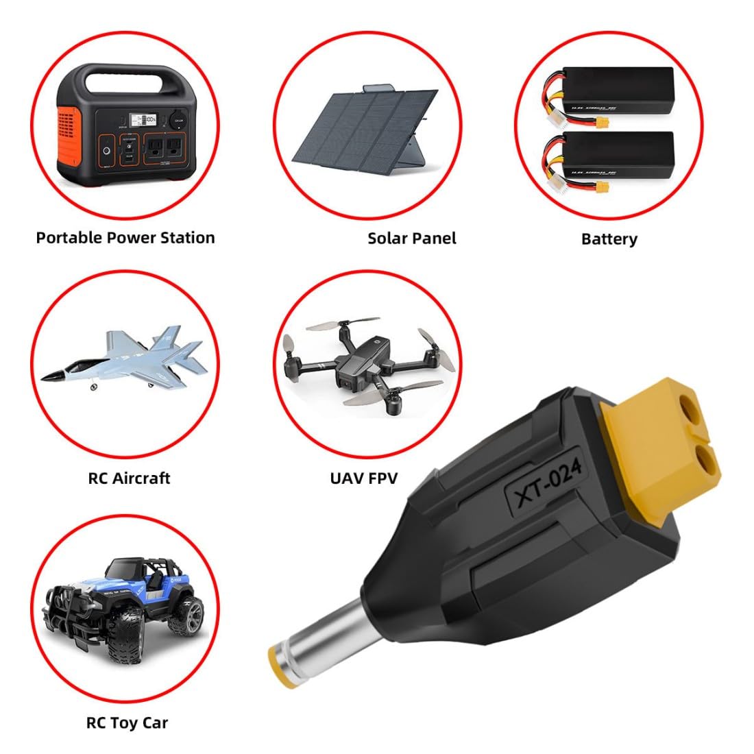 1) NOTA: nella confezione è incluso un solo adattatore. 2) Adattatore di alimentazione da XT60 a DC, progettato per collegare un saldatore TS100 a una porta di uscita XT60 per accendere la batteria. 3) Adattatore XT60 adatto per video FPV, droni, pannelli solari, veicoli e giocattoli telecomandati, ecc. 4) È molto conveniente per coloro che volano multirotori FPV e un must per le riparazioni in loco. 5) Materiale di alta qualità, resistenza alle alte temperature e buon isolamento, plug and play, facile da usare.