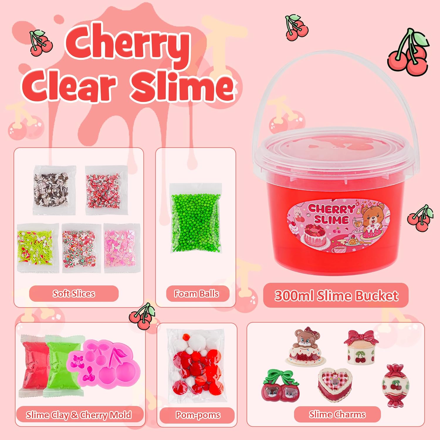 ?Slime trasparente di grande capacità?Ogni secchio è confezionato con una generosa quantità di slime, contenente 300 ml/10 fl oz di pura gioia. Avrai molto da condividere con amici e familiari, oppure tienilo tutto per te: la scelta è tua. ?Varietà di componenti aggiuntivi per slime?Per aumentare il divertimento, abbiamo incluso 10 confezioni di diversi componenti aggiuntivi per slime con il nostro kit per slime. Crea il tuo slime come slime al burro o slime croccante attraverso l'esplorazione e la scoperta pratica. ?Slime per bambini? Realizzato con ingredienti di alta qualità, questo slime rosso è sicuro sia per i bambini che per gli adulti. Nota: si raccomanda la supervisione di un adulto per i bambini di età inferiore ai 3 anni. NON mangiare ?Super morbido, elastico? Lo slime preconfezionato di Okaybee offre una consistenza unica, super morbida al tatto. Grazie alla sua natura facile da usare, puoi immergerti subito e iniziare a goderti la bontà soffice ed elastica. ?Ottimo regalo di slime per bambini?Questo kit di slime alla ciliegia è un eccellente regalo di compleanno per le feste per bambini e bambine di 6, 7, 8, 9, 10, 11, 12 anni. Bomboniere per feste di slime, per la scuola o per ogni occasione, persino per riempire le calze di Natale.