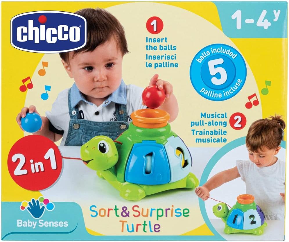 GIOCO TRAINABILE: La Tartaruga Incastra&Tira di Chicco è un divertente gioco musicale elettronico e trainabile che aiuta il bambino ad esercitarsi nel movimento con tante fantastiche attività! EDUCATIVO: Insegna le relazioni di causa ed effetto stimolando il bambino a compiere diverse attività manuali e motorie; le porte numerate inoltre gli introducono al mondo dei numeri PALLINE A INCASTRO: Il bambino può inserire le 5 palline colorate nella fessura arancione presente sul guscio della tartaruga EFFETTO SORPRESA: Premendo il pulsante arancione centrale, si aprono tutte le 5 porte e le palline rotoleranno fuori con un divertente effetto sorpresa MELODIE: Grazie al sensore di movimento, quando la tartaruga viene trainata fa risuonare simpatiche melodie GIOCHI PER BAMBINI: Scopri tutti i giochi Chicco, un mondo di divertimento con una vasta scelta di giochi prima infanzia e di regali per bambine e bambini
