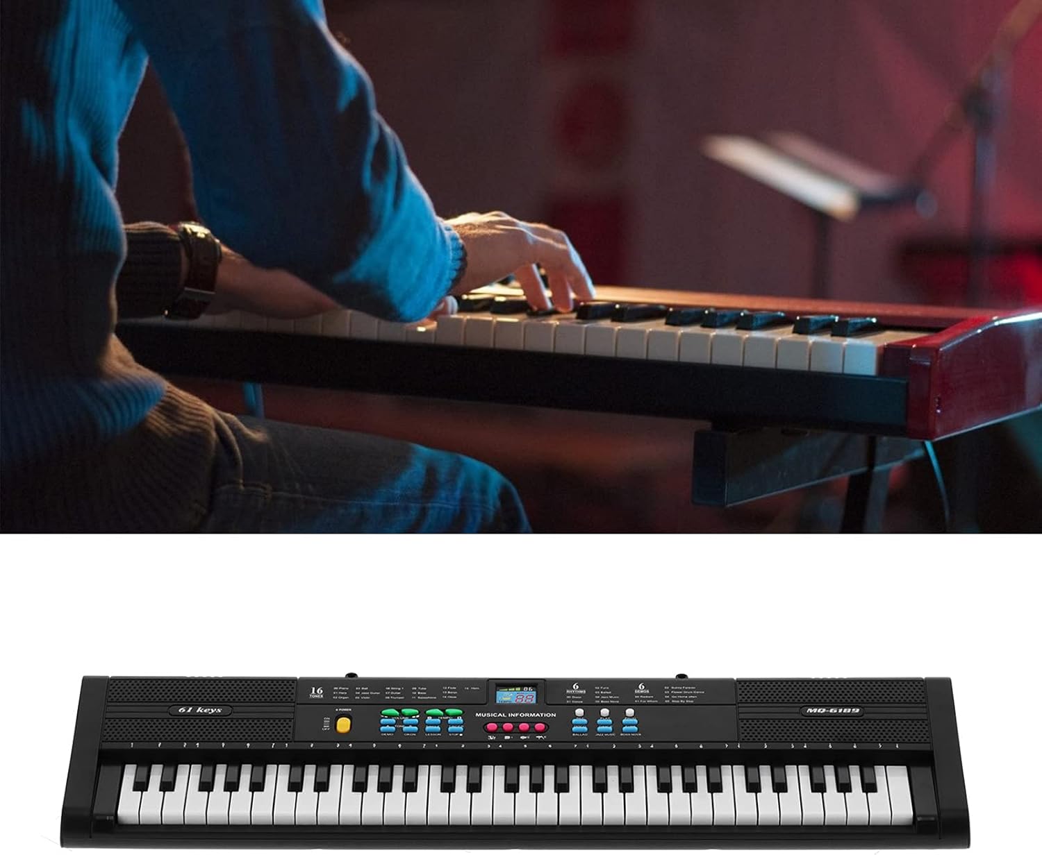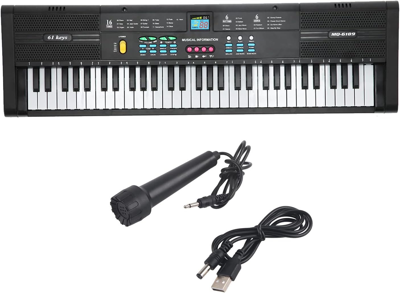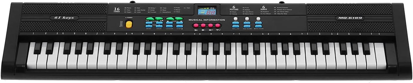 [True Piano - come esperienza] - Immergiti nella sensazione autentica di un vero pianoforte con 61 chiavi professionali. [Indaga sulle grandi funzioni] -Anlie la tua creatività musicale con 6 canzoni dimostrative, 16 toni, 6 ritmi, funzione di insegnamento/controllo degli effetti sonori, programmazione e molto altro. [Migliora la tua gioia]: dotato di un piccolo livello di musica e un microfono, rendendo la musica più piacevole e più adorabile. [Per i giovani principianti]: un eccellente per i bambini di età compresa tra 1 e 10 anni che li aiuta a praticare e migliorare le loro capacità di piano. [Opzioni di alimentazione flessibile] -L'alimentazione di un cavo USB, in modo che la compatibilità con banchi elettrici, connessioni USB al computer e dispositivi di carico del telefono siano possibili.