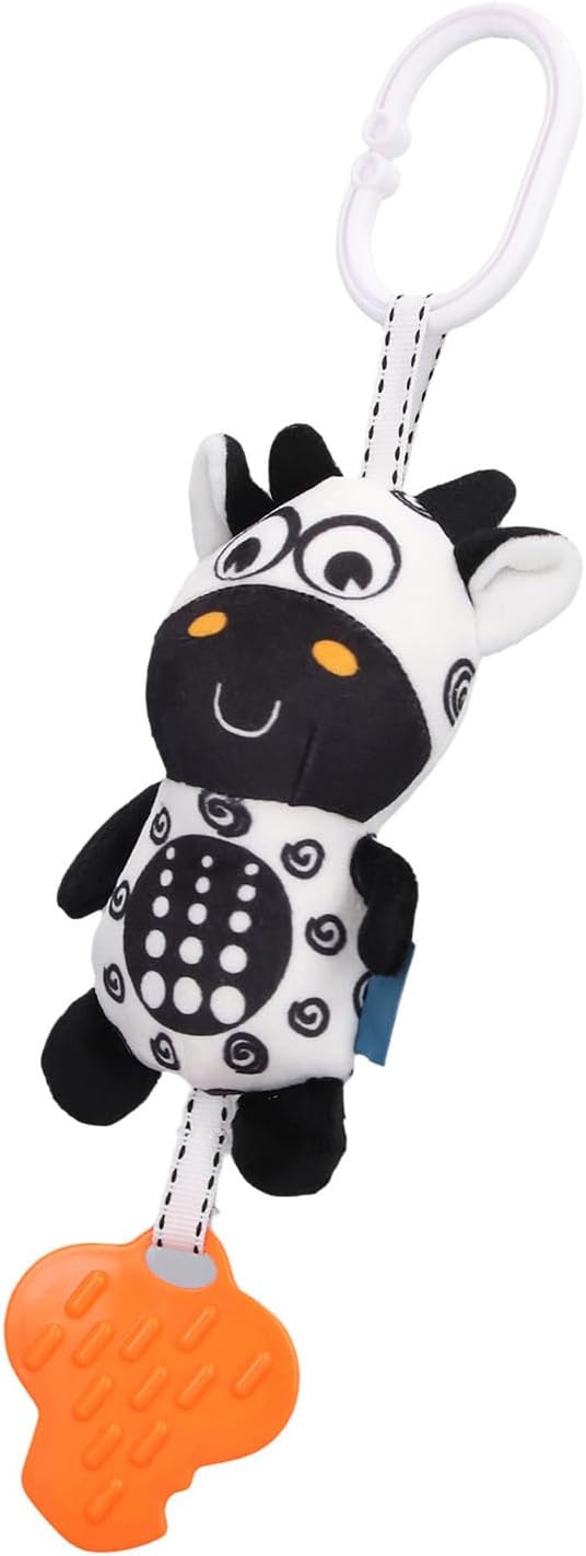 DESIGN PER APPENDERE IL LETTO: il giocattolo per passeggino per neonati presenta un design portatile per appendere il letto che è facile da attaccare alla culla. ISPIRAZIONE VISIVA PER L'ISTRUZIONE PRECOCE: il giocattolo per passeggino aiuta i bambini a sviluppare la percezione visiva attraverso modelli di animali in bianco e . EFFETTO SUONO DEL CAMPANELLO A : il giocattolo per passeggino ha un piacevole suono di carillon a per attirare l'attenzione e il divertimento del bambino. MATERIALE DA DENTI: Il giocattolo per passeggino è realizzato in materiale da dentizione sicuro e innocuo per aiutare i bambini a lenire il disagio della dentizione. ADATTO A BAMBINI DA 0 A 1 ANNO: Il giocattolo da appendere soddisfa le caratteristiche di età dei bambini e stimola il loro sviluppo tattile e uditivo.