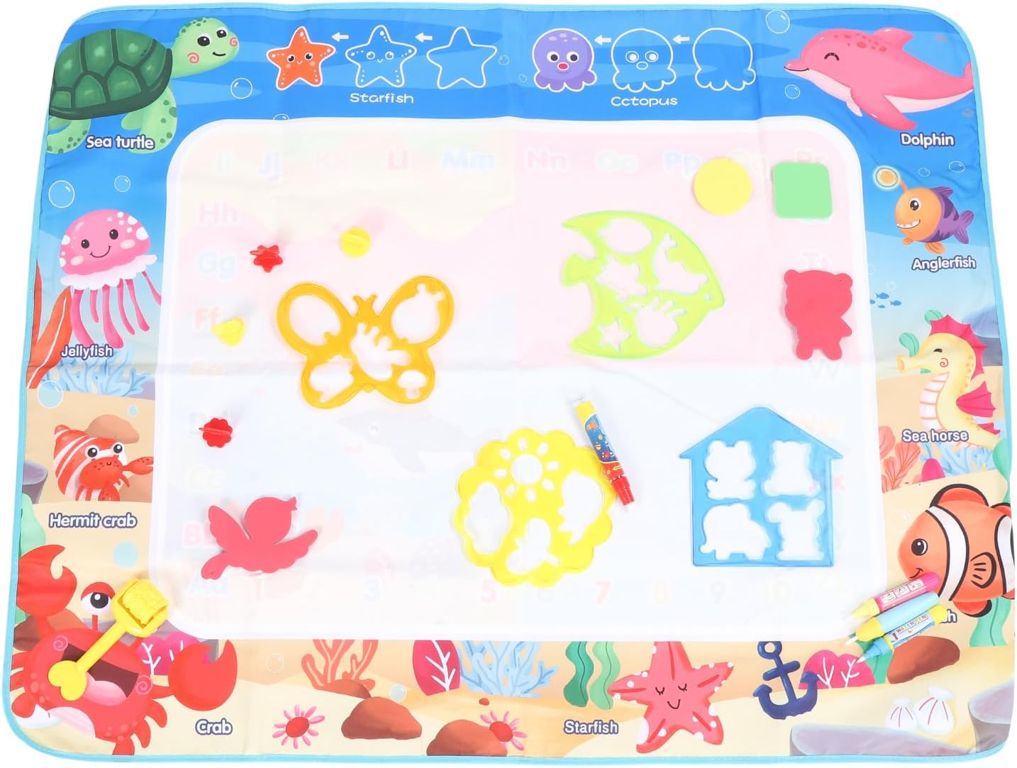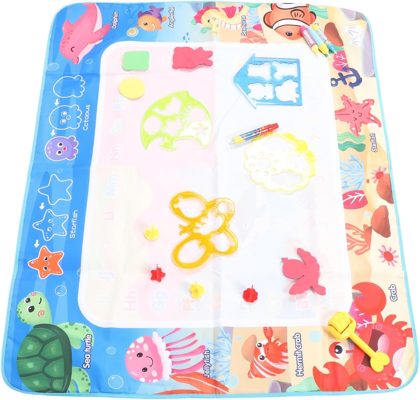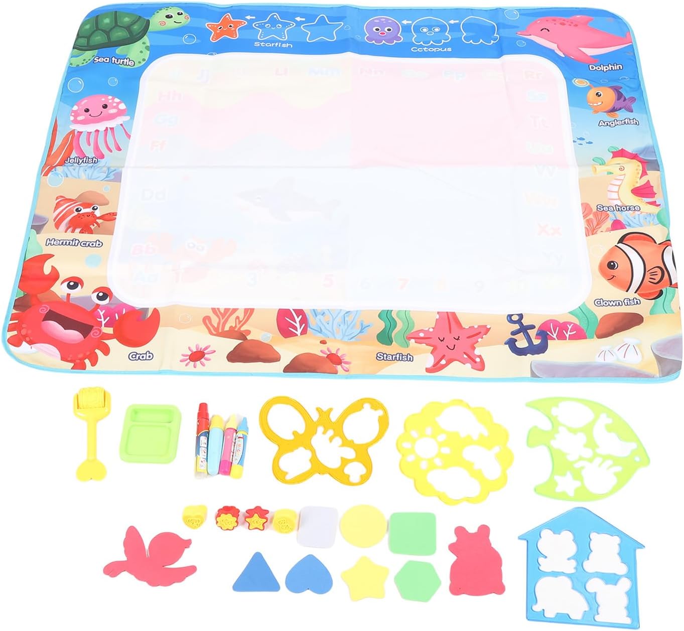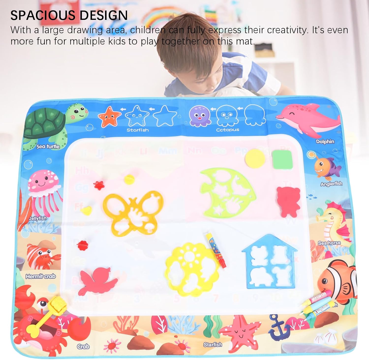 [Disegno d'acqua trasparente] Lascia che la creatività di tuo figlio fluisca con questo magico tappetino da scarabocchi d'acqua! I bambini possono scarabocchiare e scrivere liberamente usando acqua limpida, scatenando un'immaginazione senza fine. Il tappetino si asciuga rapidamente, consentendo un gioco continuo senza il casino di vernici o marcatori tradizionali. per l'espressione artistica e lo sviluppo dell'apprendimento precoce. [Riutilizzabile ed ecologico] Say Goodbye a spreco di carta e pulizie disordinate! Questo innovativo tappetino da disegno in acqua può essere facilmente pulito con un panno umido, pronto per innumerevoli ore di divertimento creativo. La sua costruzione durevole in fibra di poliestere garantisce un uso duraturo, rendendolo una scelta economica e rispettosa dell'ambiente per i genitori. [Materiali sicuri e non tossici] Progettato con la sicurezza dei bambini in mente, questo cuscinetto di doodle è realizzato in fibra di poliestere inodore premium e plastica senza BPA. I materiali completamente non tossici offrono tranquillità ai genitori mentre i bambini godono di ore di gioco di gioco sicuri e senza sostanze chimiche. [Area di disegno spaziosa] Con un impressionante spazio di disegno da 100x80 cm, più bambini possono creare insieme comodamente. La grande superficie incoraggia il gioco sociale e la creatività collaborativa, rendendola perfetta per le date di gioco, aule o tempo di legame tra fratelli. [Portable Travel Companion] leggero e pieghevole, questo tappetino per l'acqua è ideale per l'intrattenimento in movimento. Che si tratti di viaggi, ristoranti o visite a casa della nonna, il design compatto offre un divertimento senza pasticcio ovunque. Include 10 accessori da disegno per un gioco creativo migliorato in qualsiasi impostazione.