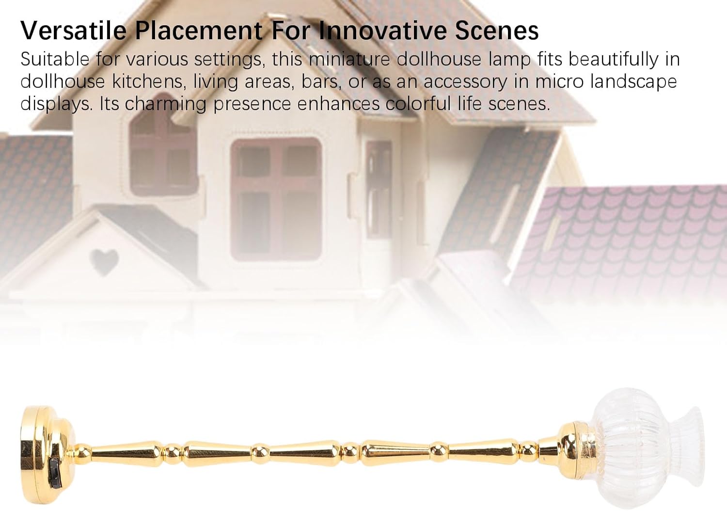 【Idea ponderata】 La lampada per la casa delle bambole è eccellente per gli appassionati di artigianato, i bambini impegnati in arte e mestieri o chiunque apprezzi l'arredamento unico. Verifica la compatibilità delle dimensioni con la tua casa delle bambole prima dell'acquisto. 【Squisita artigianato】 Questa lampada da bambola presenta un'eccellente artigianato con intricati elementi di design che danno vita all'illuminazione in miniatura, rendendola un'aggiunta amata all'arredamento delle bambole. 【Funzione LED illuminante】 La luce della casa delle bambole a LED non è decorativa ma anche funzionale, offrendo un interruttore di facile utilizzo per creare un ambiente accogliente nel tuo mondo in miniatura. 【Compatto e portatile】 Progettato per da bambole in scala 1/12, questa lampada in miniatura è compatta e portatile, rendendolo un delizioso oggetto di scena per la fotografia di action figure e aggiungendo carattere a varie scene. 【Opzioni di posizionamento versatili】 Questa affascinante illuminazione in miniatura può migliorare le cucine, le aree abitative o i bar delle delle bambole, rendendolo adatto a vari contesti e arricchenti display di micro paesaggi.