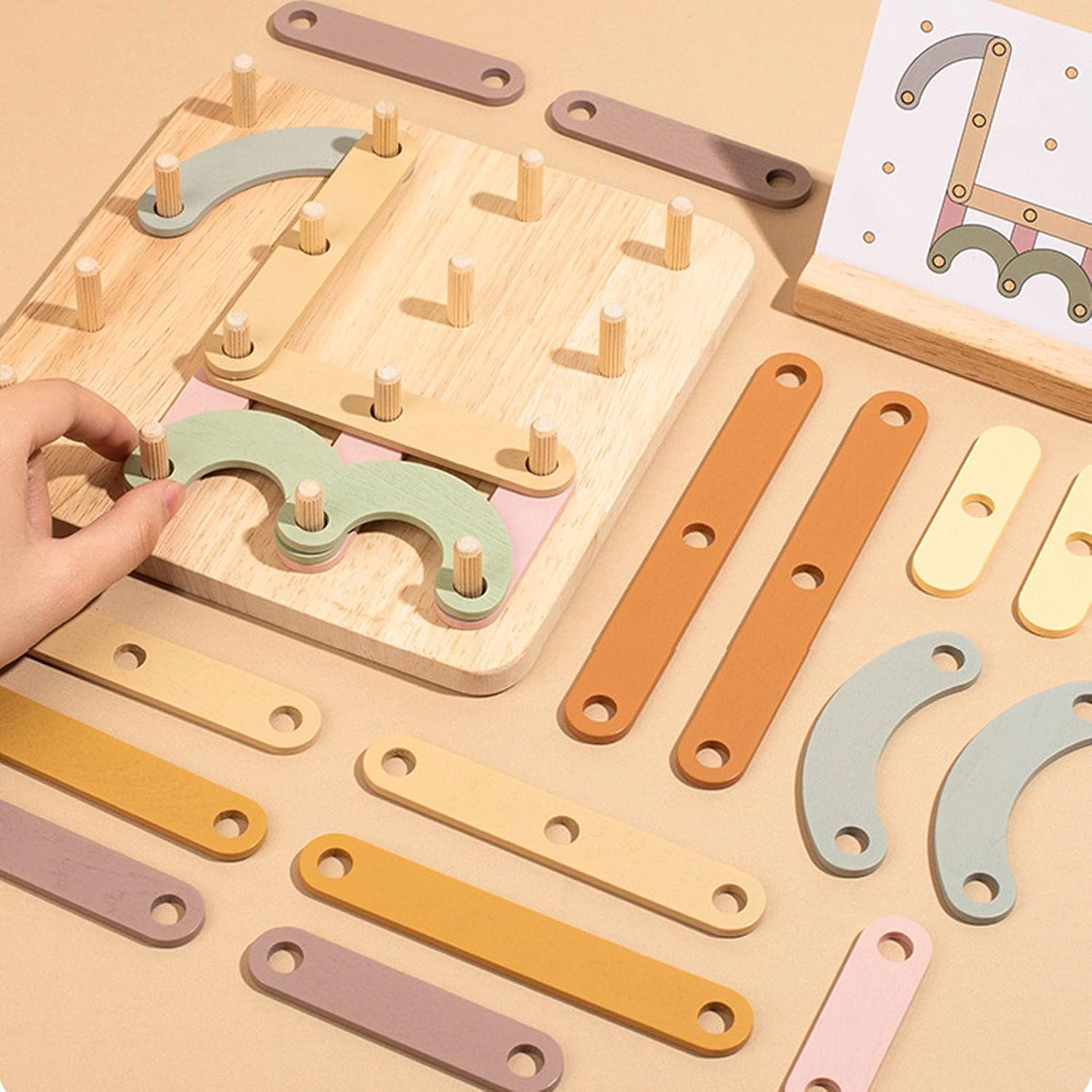 [Strumento di apprendimento versatile] per ambienti domestici e in classe, migliorando l'istruzione precoce e il coinvolgimento della famiglia. [Funzione educativa] Promuove il riconoscimento della forma, la simmetria e migliora la coordinazione occhio-mano attraverso il gioco interattivo. [Giocattolo per l'apprendimento dello sviluppo] Incoraggia la crescita cognitiva, la consapevolezza spaziale e le capacità di risoluzione dei problemi per i giovani studenti. [Divertimento nella costruzione] Presenta più picchetti e blocchi per combinazioni , stimolando l'immaginazione e favorendo il gioco . [Materiali sicuri di alta qualità] Realizzato in legno di gomma e legno di tiglio, rivestito con vernice per i bambini, progettato per durare nel tempo e per un uso ripetuto.
