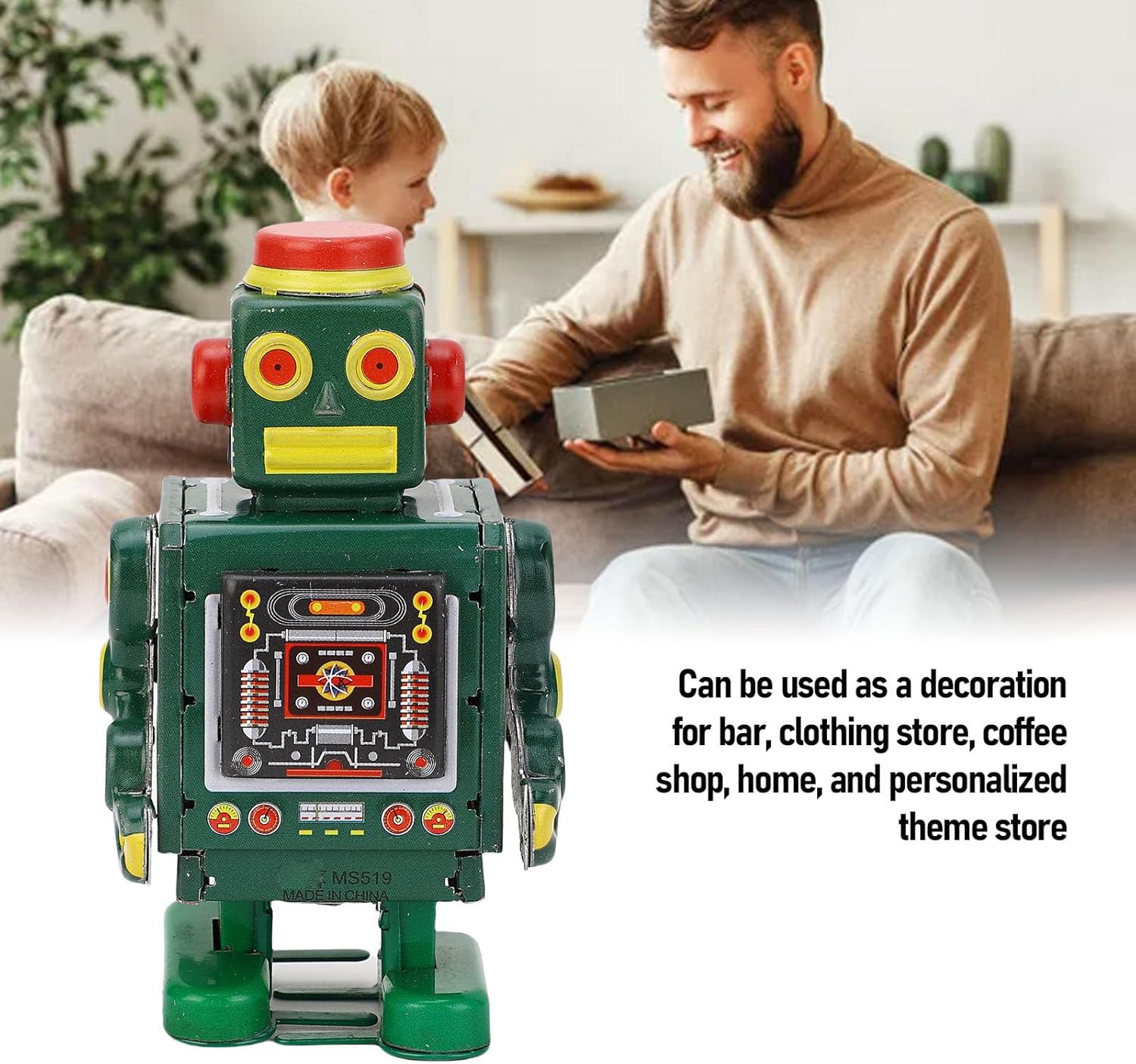 Toying robot: questo giocattolo robot vintage è facile da usare. Dopo averlo avviato, il robot oscillerà da un lato all'altro mentre cammina in avanti, rendendolo adatto per l'intrattenimento e la collezione quotidiani Ornamento vintage: questo robot, realizzato con meticolosa attenzione ai dettagli, è unico come ornamento per bar, negozio di abbigliamento, bar, casa e tema della personalità Design Wind Up: il giocattolo del robot retrò presenta una maniglia a , che consente di funzionare senza batteria, garantisce un gioco più sicuro e conveniente, conservando anche l'energia Presente unico: con il suo aspetto vintage e divertente, questo giocattolo robot è un unico per compleanni, vacanze o feste. È adatto per dare amicizia o collezionisti allo stesso modo Robusto ed estetico: realizzato con materiale di ferro robusto, questo robot è robusto e resistenza all'usura, garantendo una lunga durata. I suoi colori vibranti aggiungono personalità ed effetto decorativo