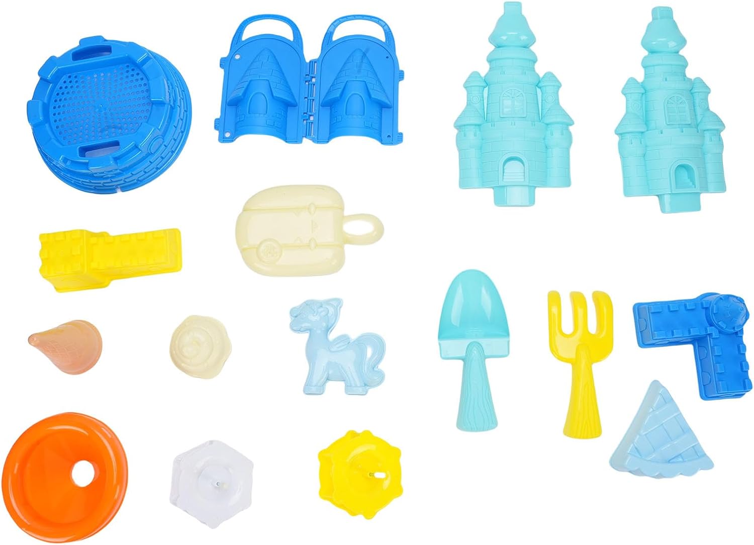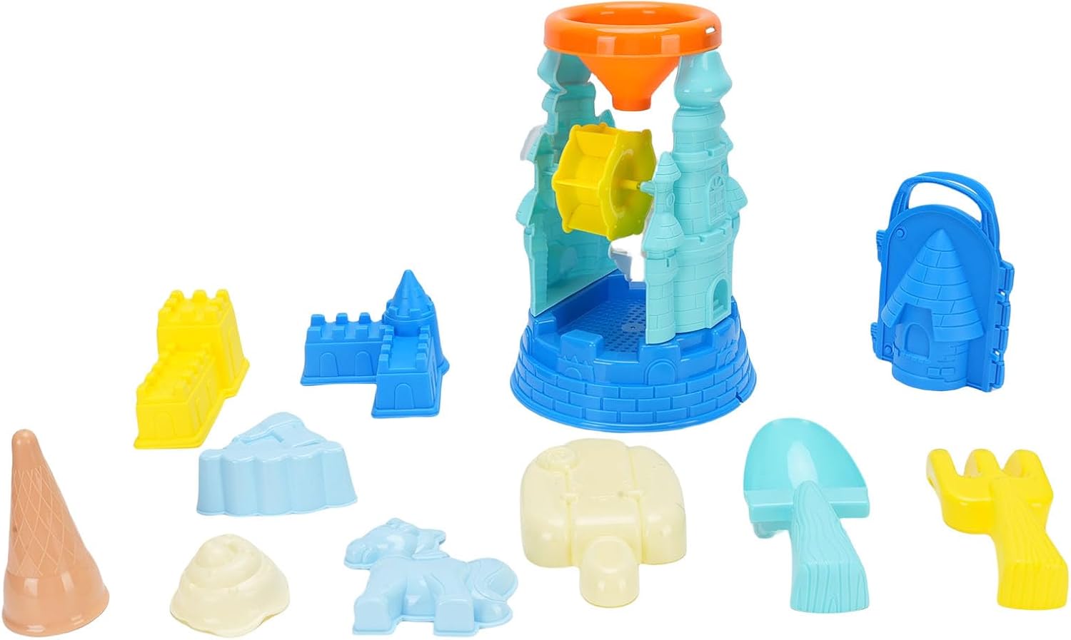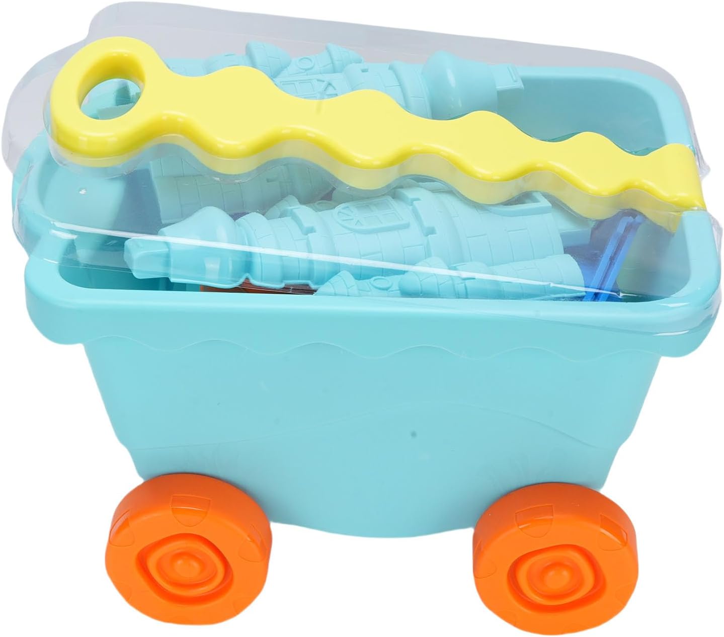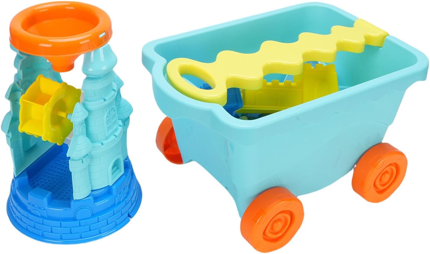 [INCORAGGIA LO SVILUPPO DELLE ABILITÀ MOTORIE] Giocattoli da spiaggia per bambini che promuovono lo sviluppo delle abilità motorie attraverso lo scavo, la costruzione e il gioco fantasioso sulla riva o nella sabbiera. [SET COMPLETO DI GIOCATTOLI CASTELLO DI SABBIA] Il set di giocattoli del castello di sabbia da 15 pezzi include un secchio, pale e accessori per giochi creativi con la sabbia, il tutto comodamente riposto in un carrello da 13,6 pollici. [DESIGN LEGGERO E PORTATILE] Set da gioco portatile per esterni caratterizzato da un design leggero con un comodo carrello per un facile trasporto in spiaggia o in giardino. [VARI STRUMENTI PER LA COSTRUZIONE DI ] Contiene un imbuto, un rastrello, piattaforme girevoli per mulini a e stampi per per creare di sabbia diversi e intricati. [PROMUOVE IL GIOCO INTERATTIVO] Ideale per lo sviluppo sociale poiché i bambini si divertono a costruire di sabbia insieme, favorendo il lavoro di squadra e la creatività nel gioco all'aperto.