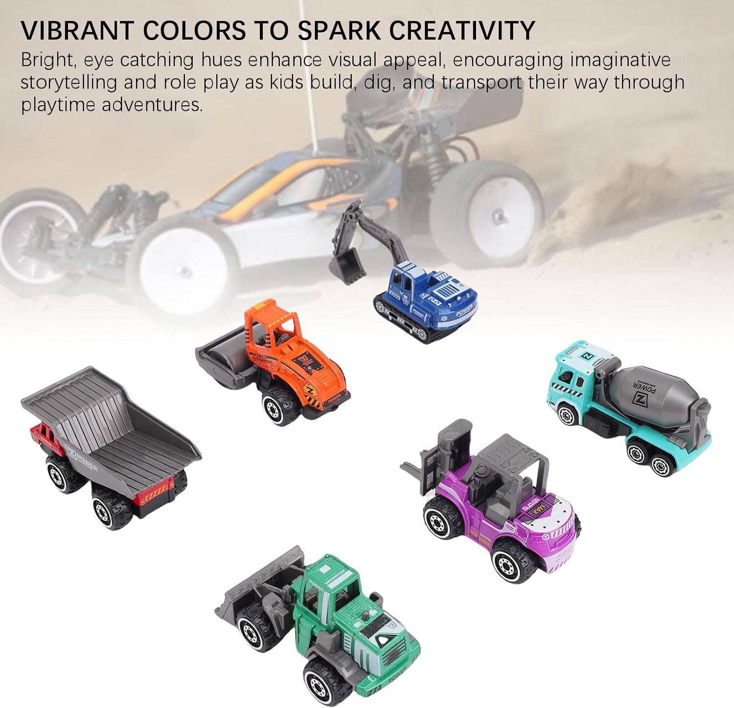 [MIGLIORA IL GIOCO IMMAGINATIVO] Ispira i bambini con colori vivaci per narrazioni creative e giochi di ruolo nelle avventure di costruzione. [VARIETÀ DI VEICOLI] Il set include 6 mini auto dettagliate: carrello elevatore, apripista, escavatore, betoniera, autocarro con cassone ribaltabile. [ROBUSTO E SICURO PER I BAMBINI] Realizzato con materiali durevoli e sicuri per i bambini per giochi difficili, perfetti per l'uso e l'esposizione. [SUPPORTA IL GIOCO COLLABORATIVO] Incoraggia il lavoro di squadra e interessi diversi con un mix di veicoli per sandbox o sale giochi. [TEXTURE AUTENTICHE] Realizzato in lega robusta e materiali plastici con parti mobili per un'esperienza ingegneristica realistica.