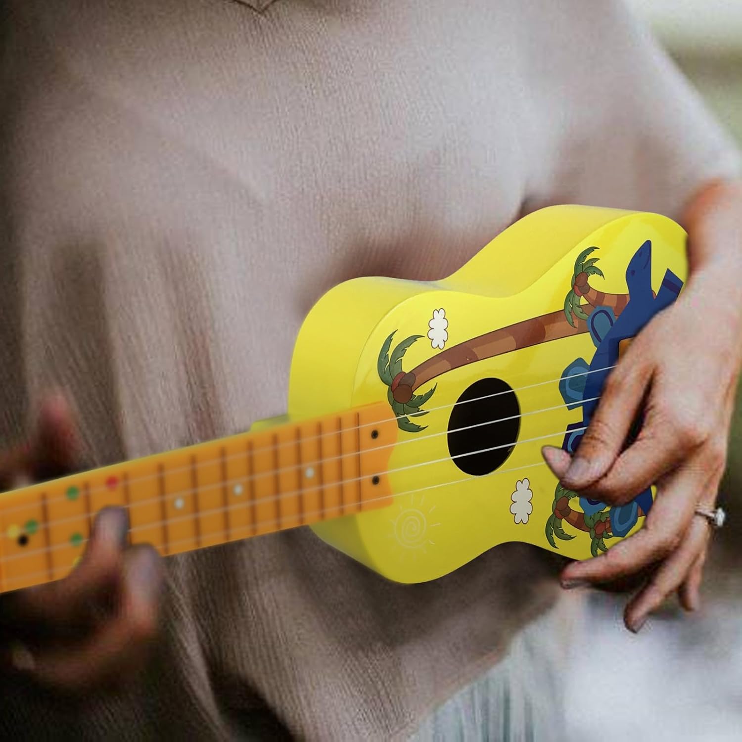 [Premium Ukulele for Kids]: questo ukulele da 21 pollici presenta un corpo a botte in legno completo e una maniglia a pioppo per un suono chiaro e nitido. per i principianti! [Design divertente per animali e alberi]: il pattern vibrante cattura l'attenzione e l'immaginazione dei bambini. strumento interessante che i bambini adoreranno suonare! [Stringhe di nylon durevoli]: dotato di robuste corde di nylon per un suono corposo. Non ti farà male alle mani e per le canzoni tradizionali hawaiane. [Facile da sintonizzare]: tasti spaziati e lunghezza della corda di 324 mm semplifica la messa a punto. Le corde di nylon si sistemano rapidamente per una messa a punto costante. [Ottima idea ]: ideale per studenti, amici, adolescenti e adulti che amano suonare musica. Viene fornito con una scelta nera per un meraviglioso di compleanno o festività.