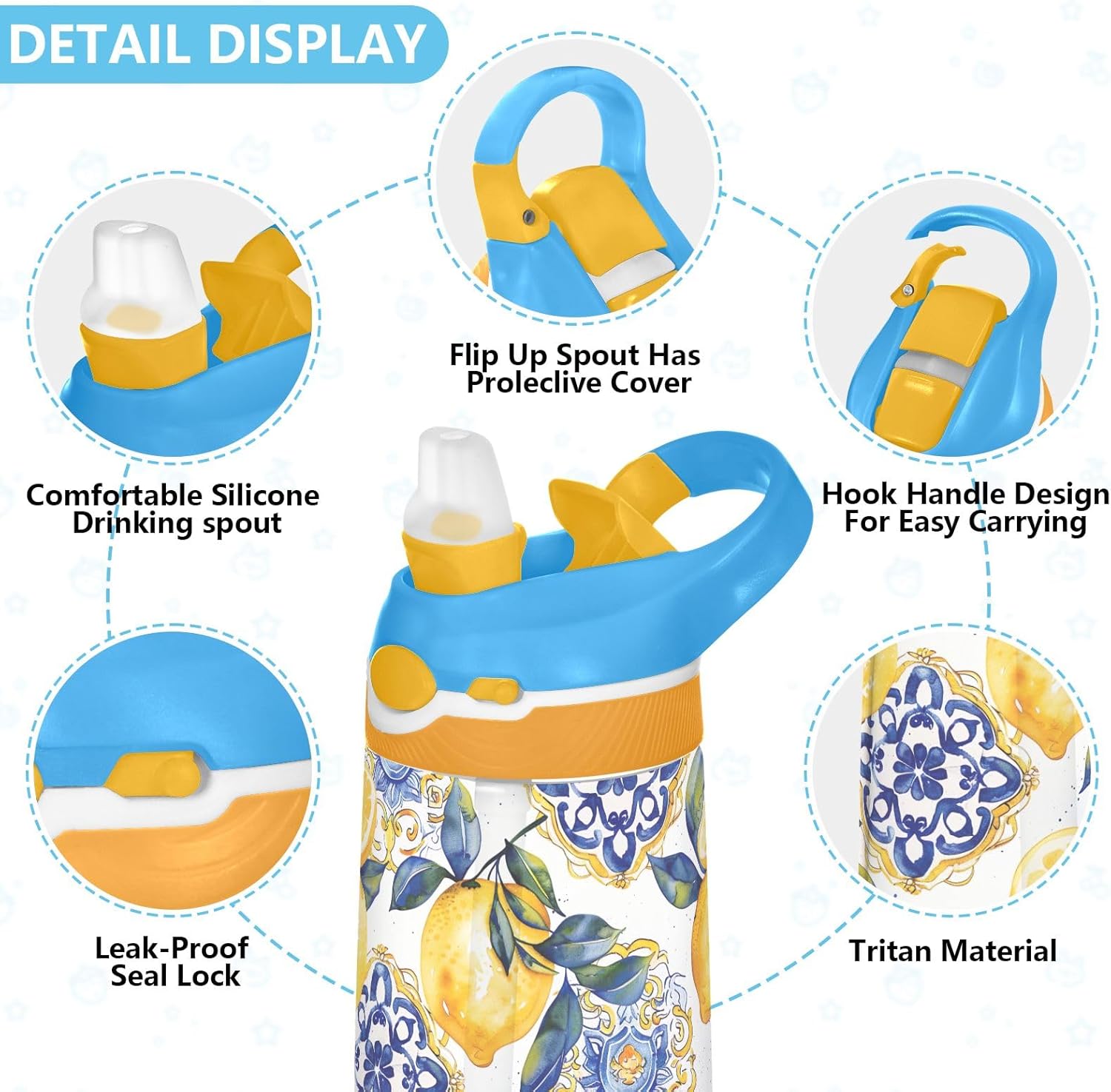 Materiale: realizzata in tritan di alta qualità, questa borraccia per ragazzi è resistente e leggera, adatta per l'uso quotidiano. Il beccuccio in silicone alimentare garantisce un'esperienza di bere sicura, liscia e confortevole. Capacità adatta: con una capacità di 473 ml, le nostre bottiglie d'acqua riutilizzabili in plastica forniscono la giusta quantità di acqua per mantenere i bambini idratati durante la scuola, lo sport, l'asilo nido e le avventure all'aperto. Beccuccio ribaltabile: questa borraccia sportiva per bambini dispone di un beccuccio ribaltabile che si apre con la semplice pressione di un pulsante, rendendo facile bere per i bambini. Quando non in uso, il coperchio può essere tenuto chiuso per evitare perdite e fuoriuscite. Facile da trasportare: dotata di un manico ampio e facile da impugnare, questa borraccia in plastica con cannuccia è semplice da trasportare a mano o da attaccare a uno zaino, rendendola ideale per la scuola, i viaggi, le pratiche sportive. Stampe divertenti: stampata con una varietà di motivi carini e alla moda, questa bottiglia d'acqua per ragazze adolescenti aggiunge un tocco di personalità ad ogni sorso. Il suo design affascinante lo rende un regalo ideale per compleanni, vacanze, stagione scolastica o occasioni speciali per ragazzi e ragazze.