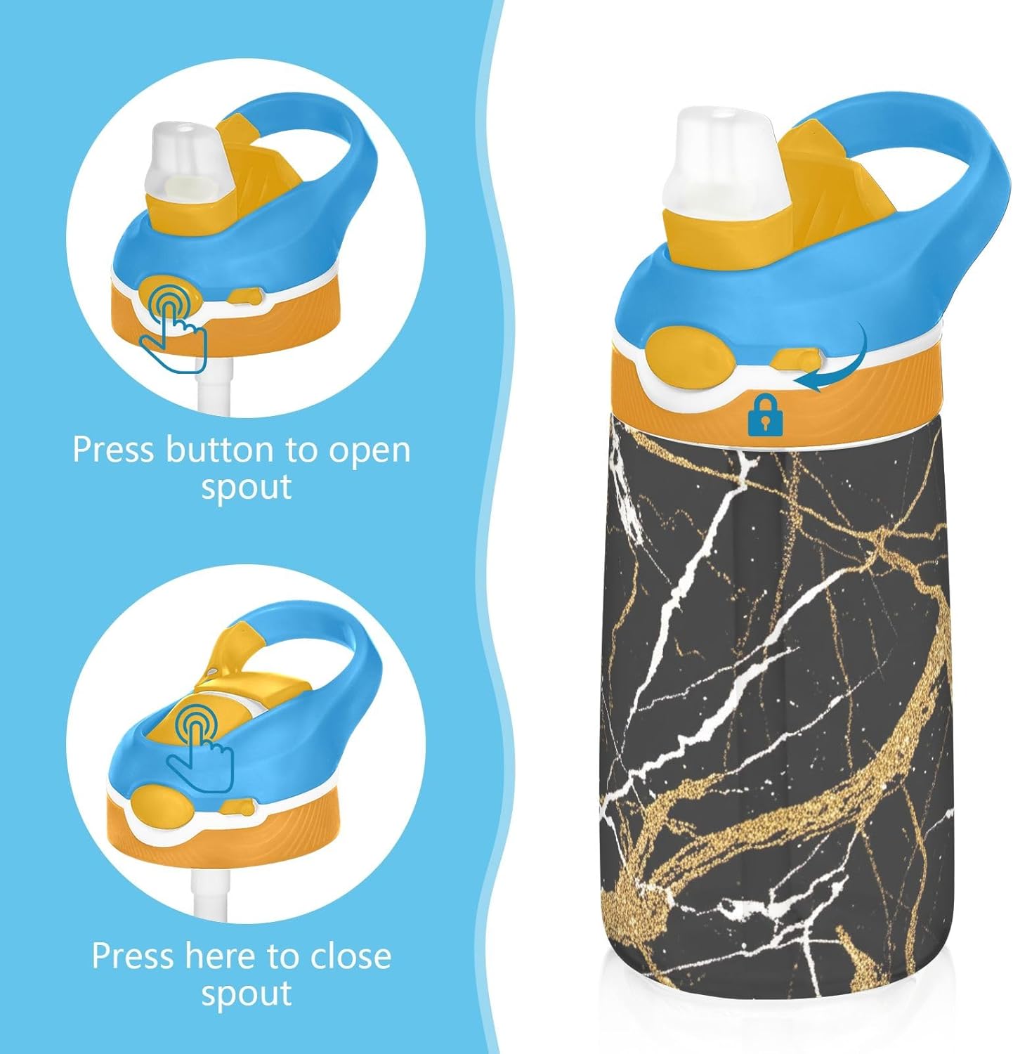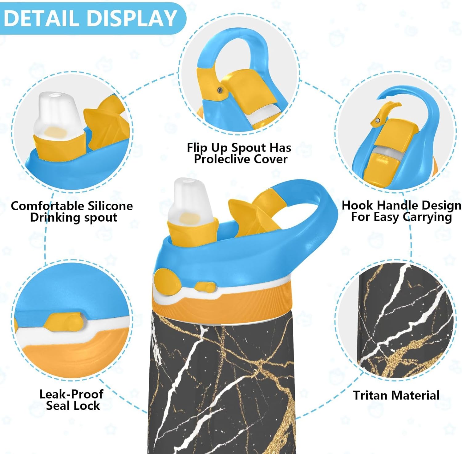 Materiale: realizzata in tritan di alta qualità, questa borraccia sportiva per bambini è resistente e leggera, ideale per l'uso quotidiano. Il beccuccio in silicone alimentare garantisce un'esperienza di bere sicura, liscia e confortevole. Capacità adatta: con una capacità di 16 once, le nostre bottiglie d'acqua per bambini forniscono la giusta quantità di acqua per mantenere i bambini idratati durante la scuola, lo sport, l'asilo nido e le avventure all'aperto. Beccuccio ribaltabile: questa borraccia sportiva per bambini dispone di un beccuccio apribile con un pulsante che consente ai bambini di bere facilmente e in modo indipendente. Il coperchio rimane chiuso quando non in uso, aiutando a prevenire perdite, fuoriuscite e mantenendo pulito il beccuccio. Facile da trasportare: questa borraccia in tritan è progettata con un manico ampio e robusto che si adatta comodamente alle mani piccole e può essere facilmente attaccata agli zaini, rendendola un compagno ideale per scuola, viaggi, parchi giochi o gite nel fine settimana. Carina ed elegante: stampata con una varietà di stampe divertenti e alla moda, questa borraccia per adolescenti rende l'acqua potabile eccitante per i bambini. È un regalo premuroso per compleanno, Natale, ritorno a scuola e altre celebrazioni.