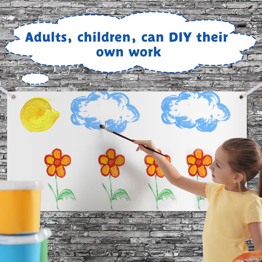 Dimensioni adeguate: lo striscione in tessuto Oxford di poliestere bianco misura circa 60 x 120 cm e offre spazio sufficiente per scrivere e dipingere. La dimensione appropriata può essere appesa nella maggior parte dei posti per decorare la tua casa. Materiale stabile: gli striscioni bianchi vuoti sono realizzati in tessuto di poliestere di qualità, robusto e durevole, non facile da rompere o sbiadire, materiale affidabile. Progetto fai da te: puoi scrivere, disegnare o trasferire a caldo disegni speciali, parole, slogan o segni sul banner da parete bianco vuoto, dando vita alle idee che hai in mente sul tessuto vuoto e creando il tuo progetto artigianale perfetto. Facile da installare: il banner verniciabile bianco è progettato con un anello di tenuta in metallo su ciascuno dei quattro angoli, che puoi facilmente appendere nei tuoi posti preferiti utilizzando la corda. Ha una grande capacità di carico e può rimanere perfetta in tutte le condizioni. Ampia applicazione: sono disponibili striscioni in poliestere vuoti per tutte le diverse esigenze di decorazione. Può essere esposto in giardino, muro, recinzione, tetti, matrimoni, attività scolastiche, feste di compleanno e altro ancora.