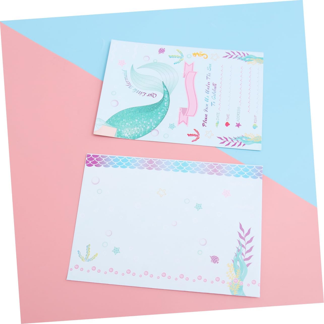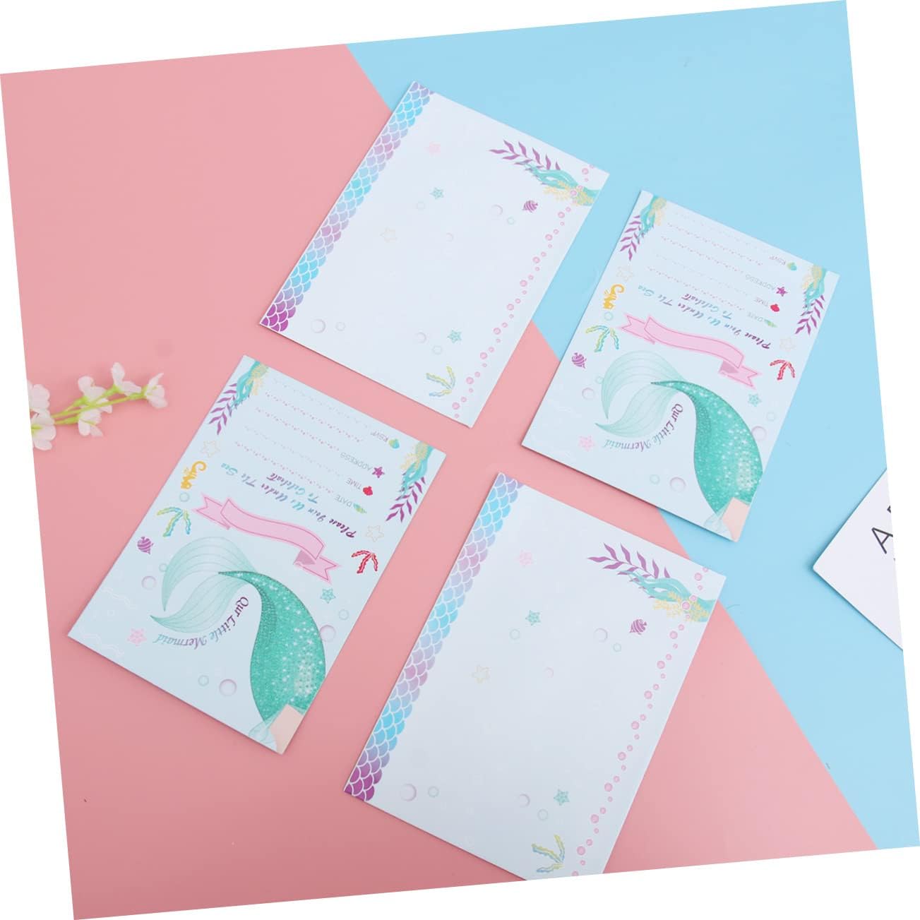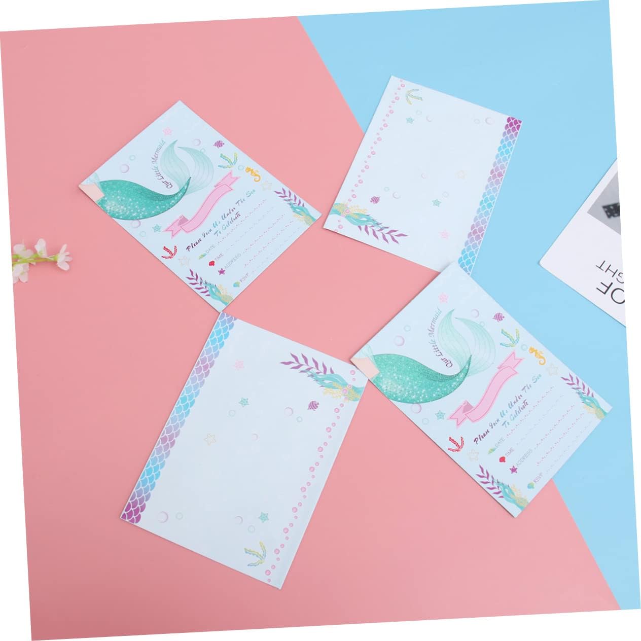 Bomboniera: ottimo per un compleanno di cartoni animati o un'altra festa a tema unicorno. Biglietti d'invito con sirena: perfetti per feste di compleanno per bambini, baby shower e altro ancora. Busta per invito a sirena: stampata con una bellissima e attraente forma a sirena, lascerà un'impressione profonda nei tuoi ospiti. Biglietti d'invito di compleanno: realizzati con carta leggera e di alta qualità, la carta è atossica. Carta di carta: diversi biglietti d'invito per feste, diverso senso di impressione visiva.