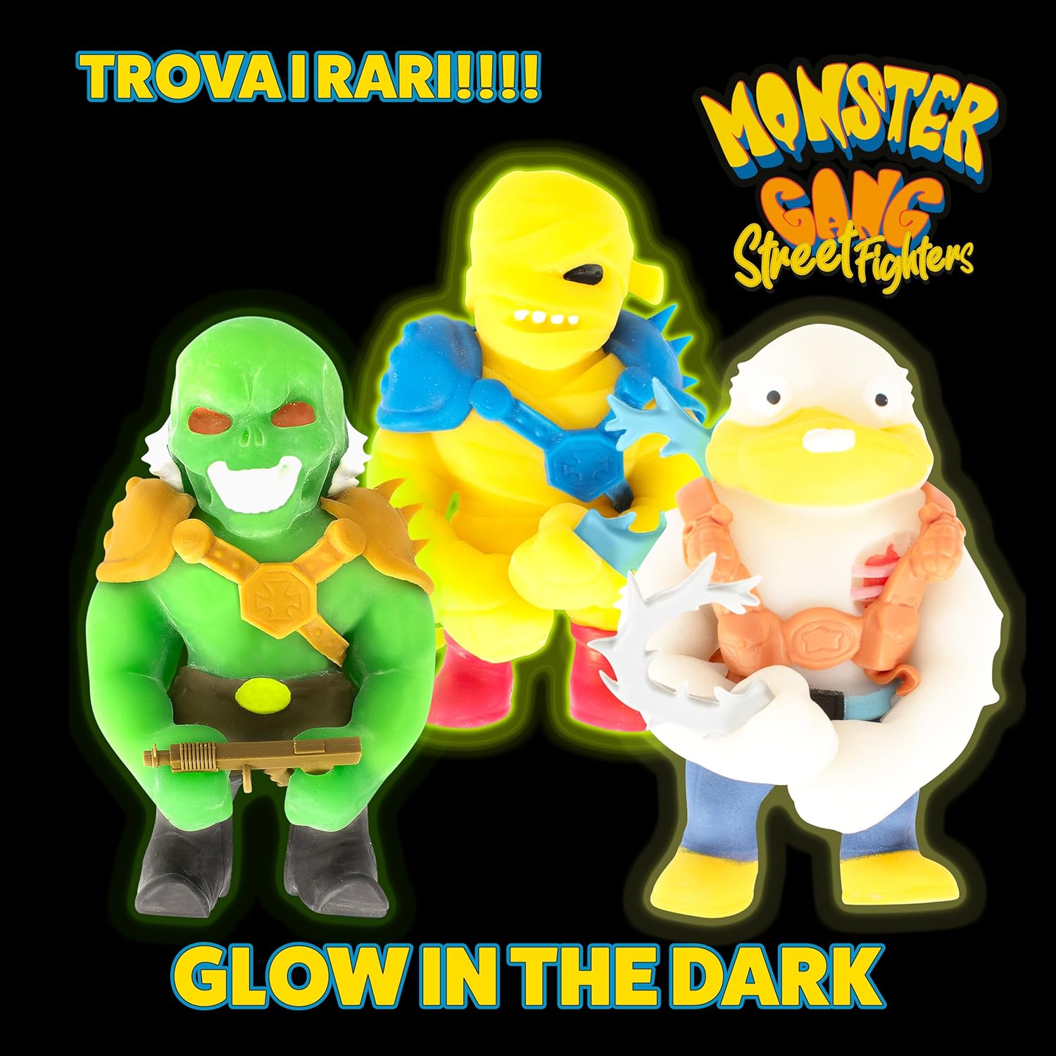 (SUPER ALLUNGABILI) Esplora lo spaventoso mondo di Monster Gang – il circo dei mosti!, la nuovissima collezione di personaggi elastici firmata Chimpanzee, pronta a sorprenderti! Questa collezione è composta da 8 personaggi elastici che possono essere allungati fino a 3 volte la loro dimensione originale! (SUPER DEFORMABILI) Puoi stritolarli, deformarli, allungarli, arrotolarli e persino legarli ma ritorneranno sempre alla loro forma iniziale se li scuoterai rapidamente. (MODELLI SPECIALI) scegli il colore che preferisci oppure collezionali tutti! Trova i modelli che si illuminano al buio per vivere un’esperienza magica e divertente! (STIMOLO LUDICO) Tutti i personaggi hanno forme dinamice che promuovono il gioco d'azione e così che il bambino possa sviluppare la fantasia e la motricità. (QUALITA PREMIUM) i personaggi hanno dettagli e colorazioni ben rifinite che li rendono irresistibili. Il materiale TPR è vellutato e morbido al tatto, con riempimento in sabbia artificiale. Prodotto conforme a normativa CE.