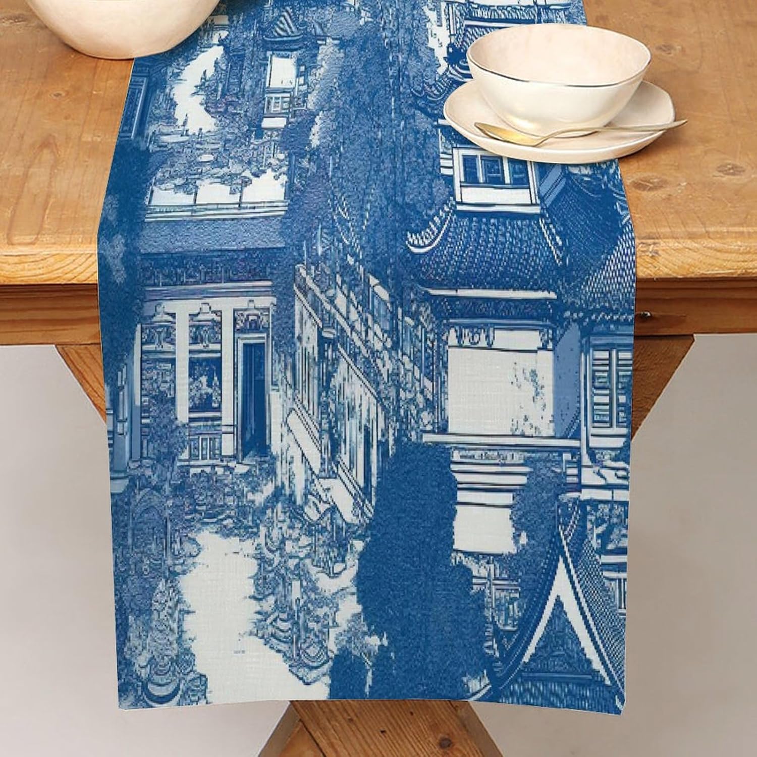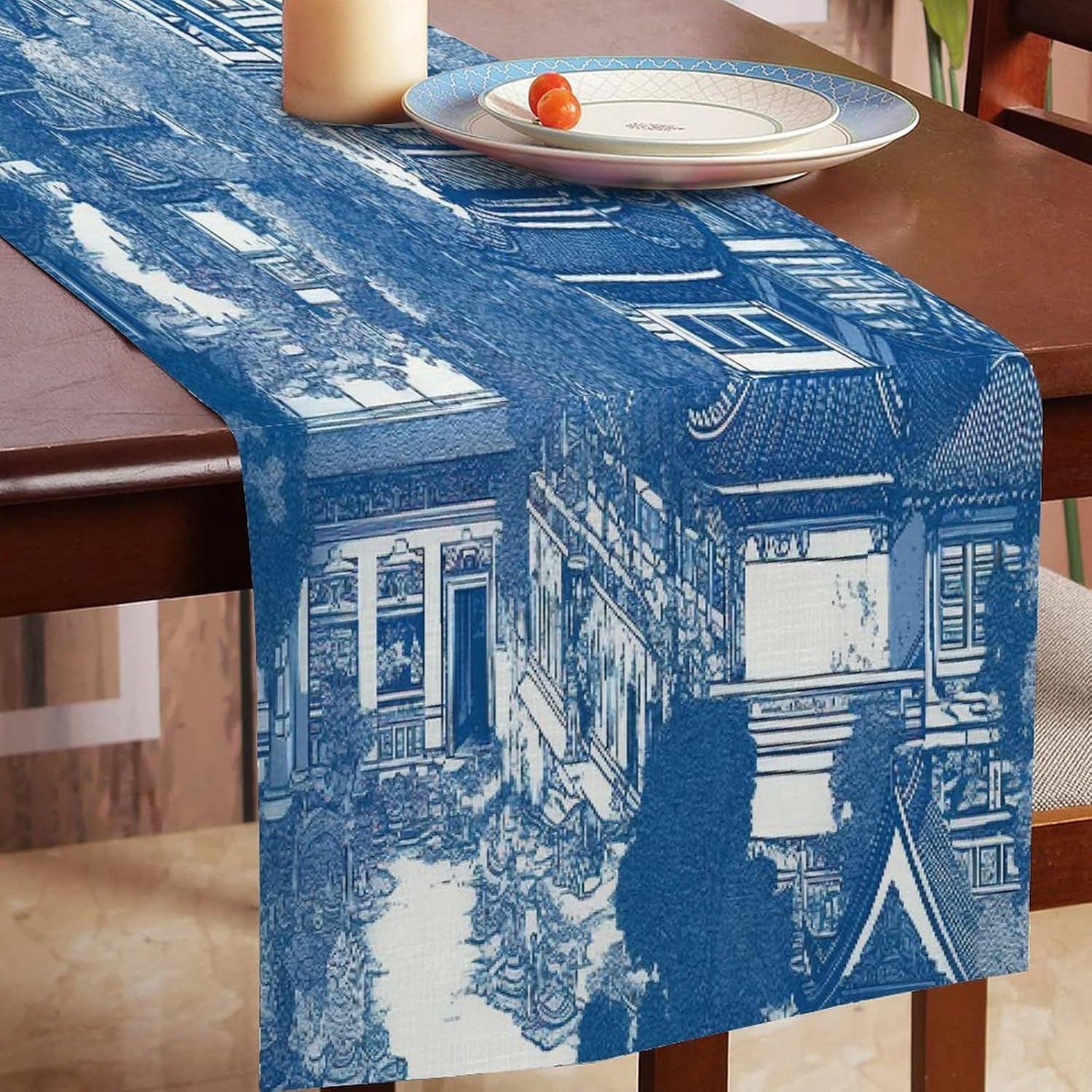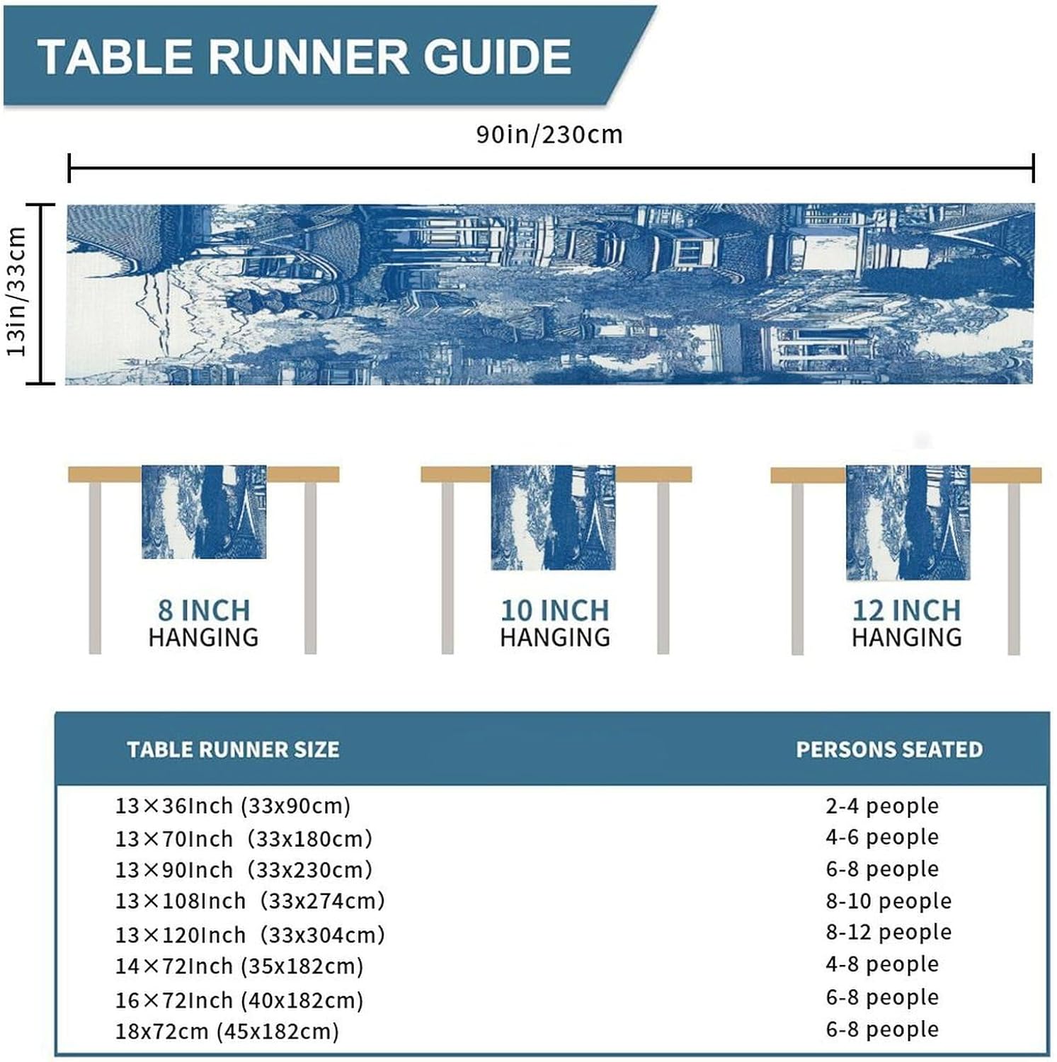 Chinoiserie Runner da tavolo da pranzo per comò e sciarpe, runner da cucina per cene in fattoria, feste festive, matrimoni, eventi, decorazione, 33 x 228,6 cm
