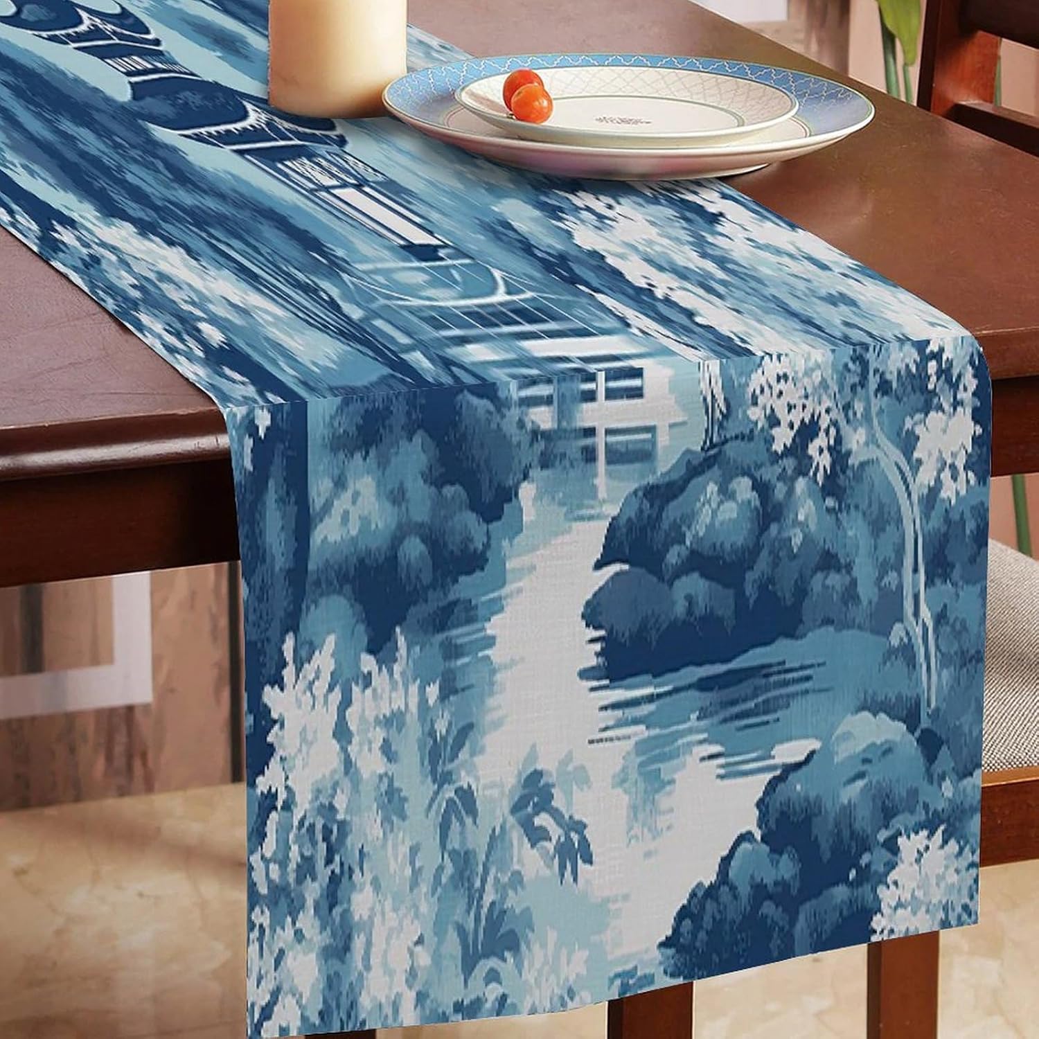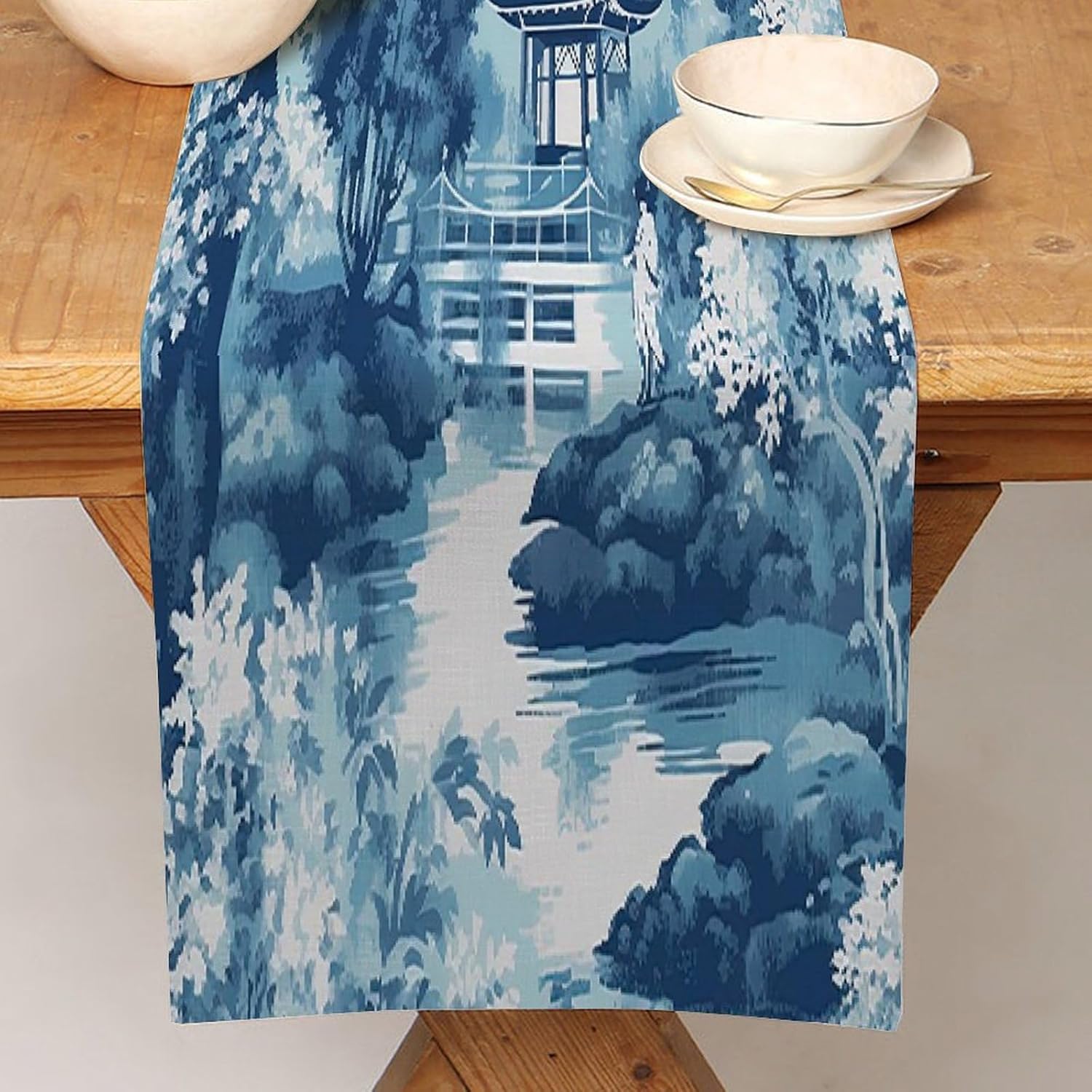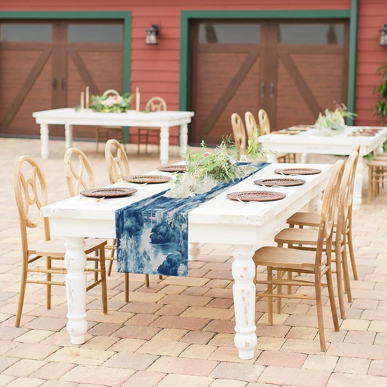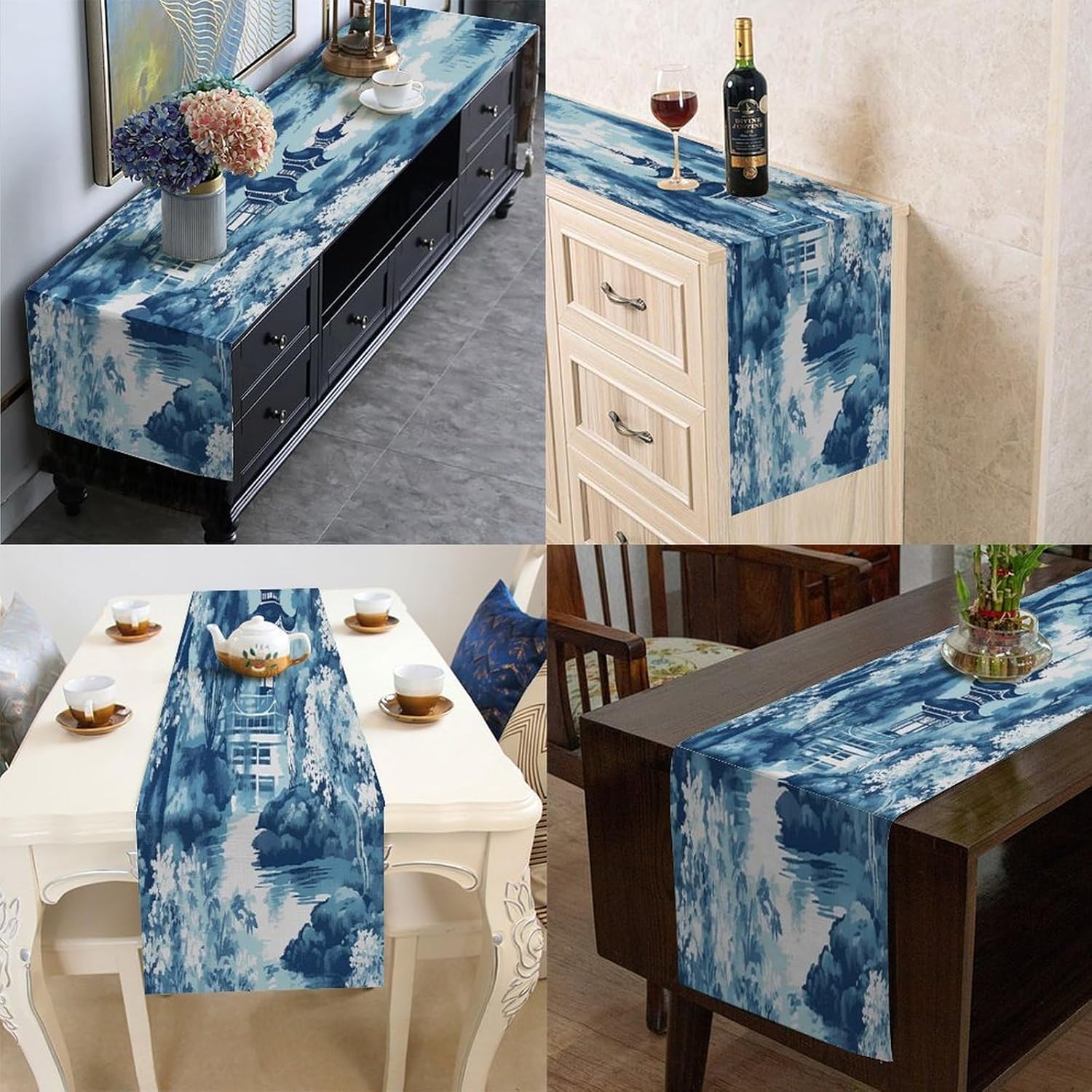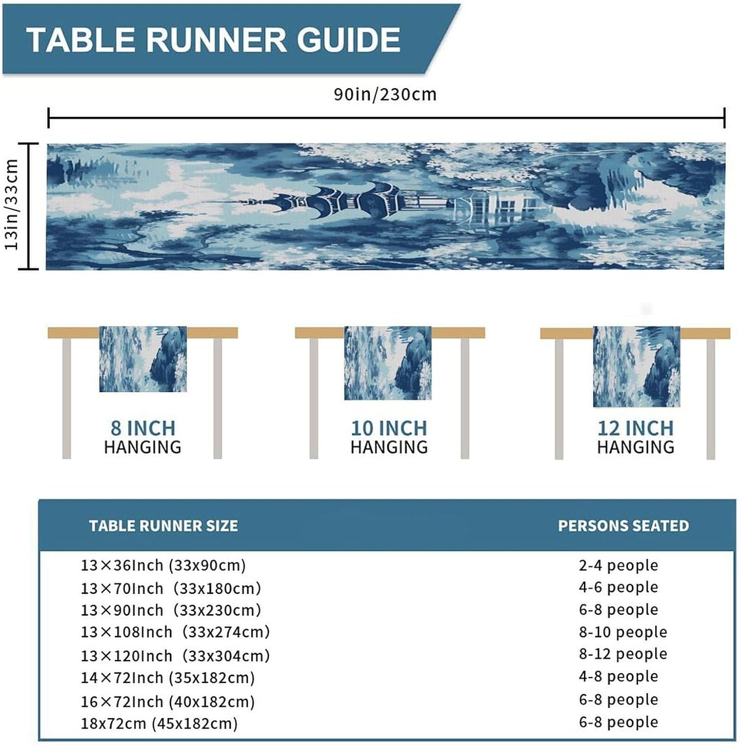 Chinoiserie Runner da tavolo da pranzo per comò e sciarpe, runner da cucina per cene in fattoria, feste festive, matrimoni, eventi, decorazione, 33 x 228,6 cm