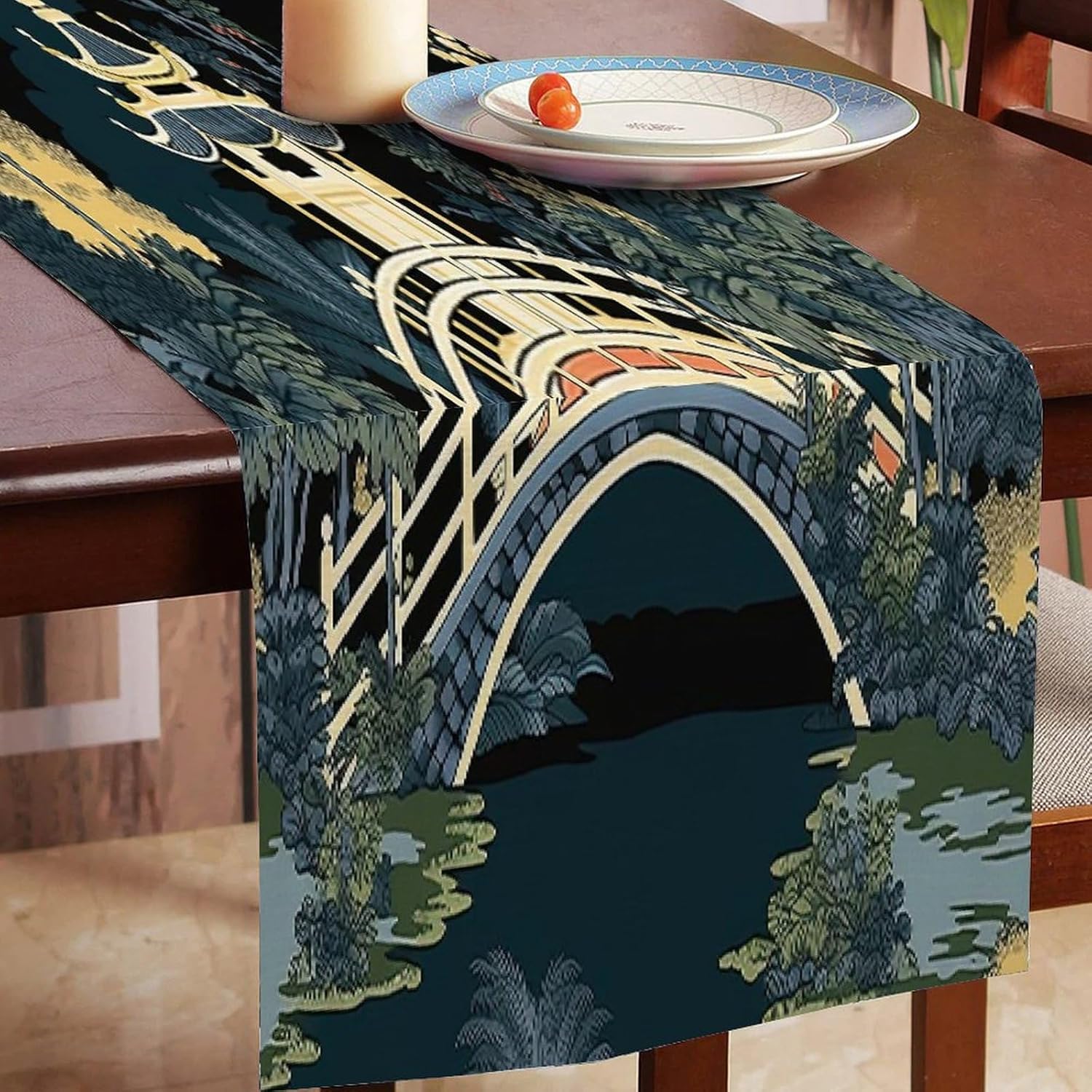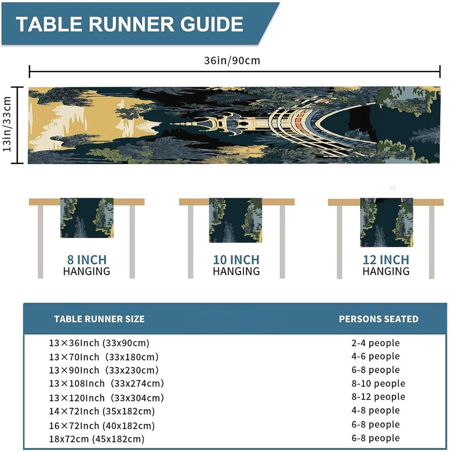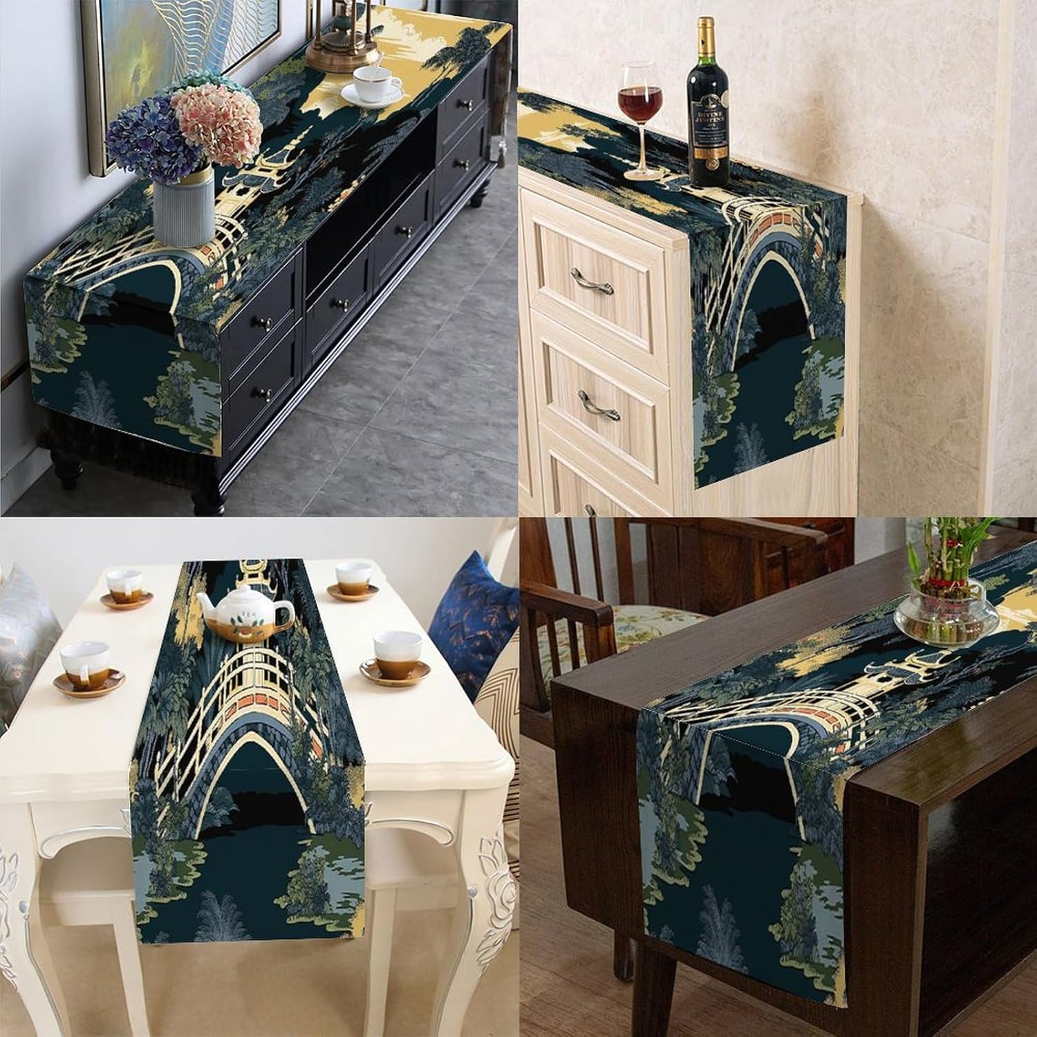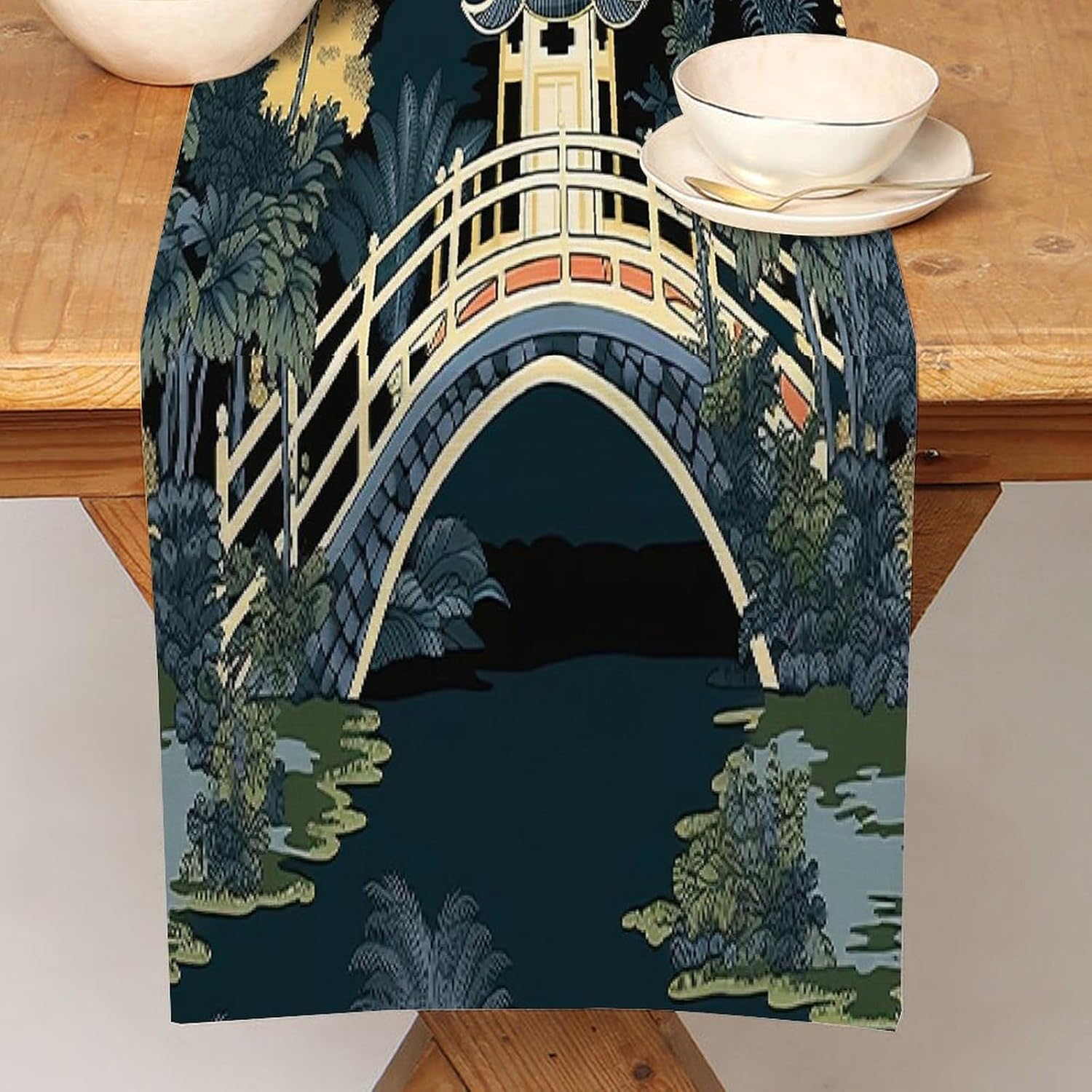 Chinoiserie Runner da tavolo da pranzo per comò e sciarpe, runner da cucina per cene in fattoria, feste festive, matrimoni, eventi, decorazione, 33 x 91,4 cm