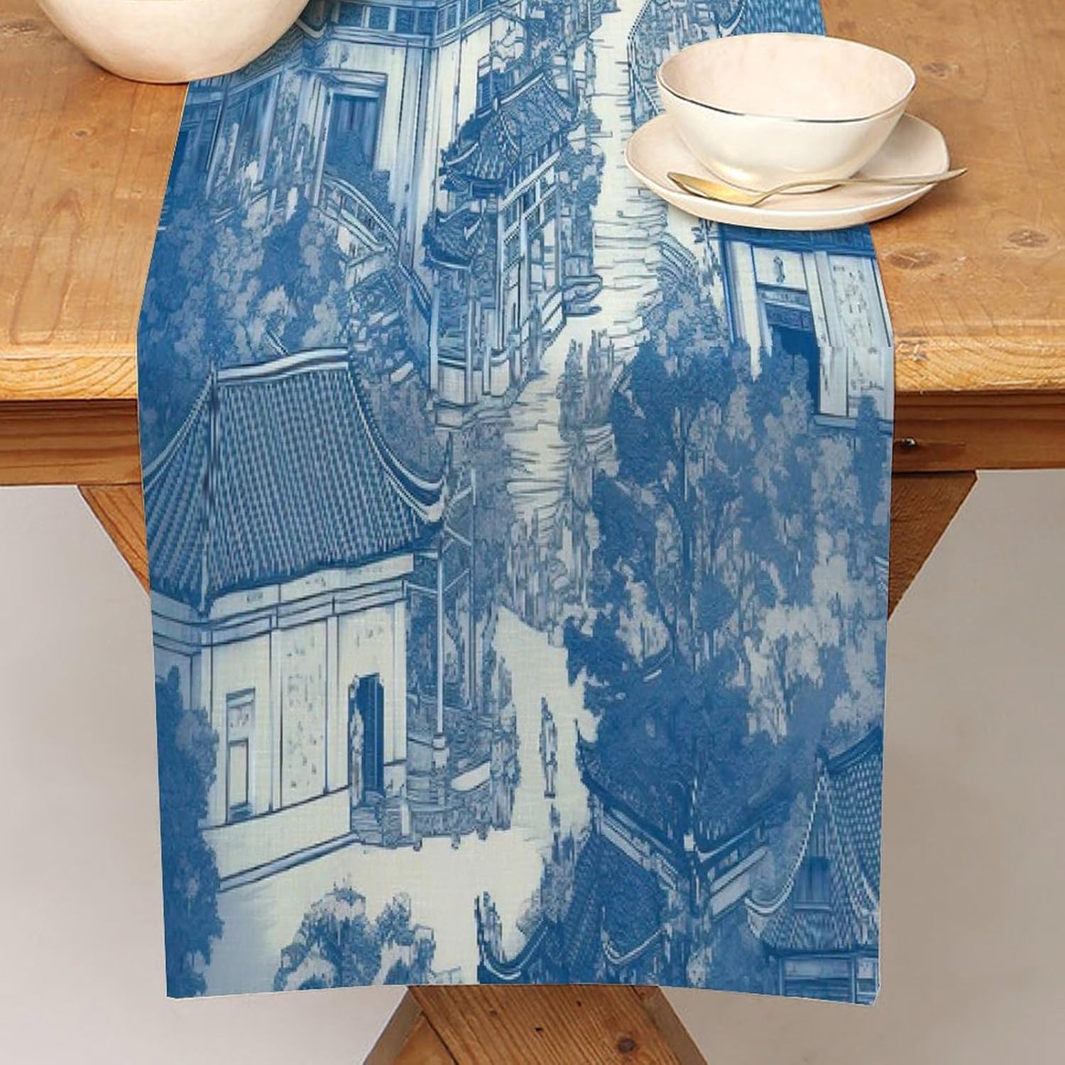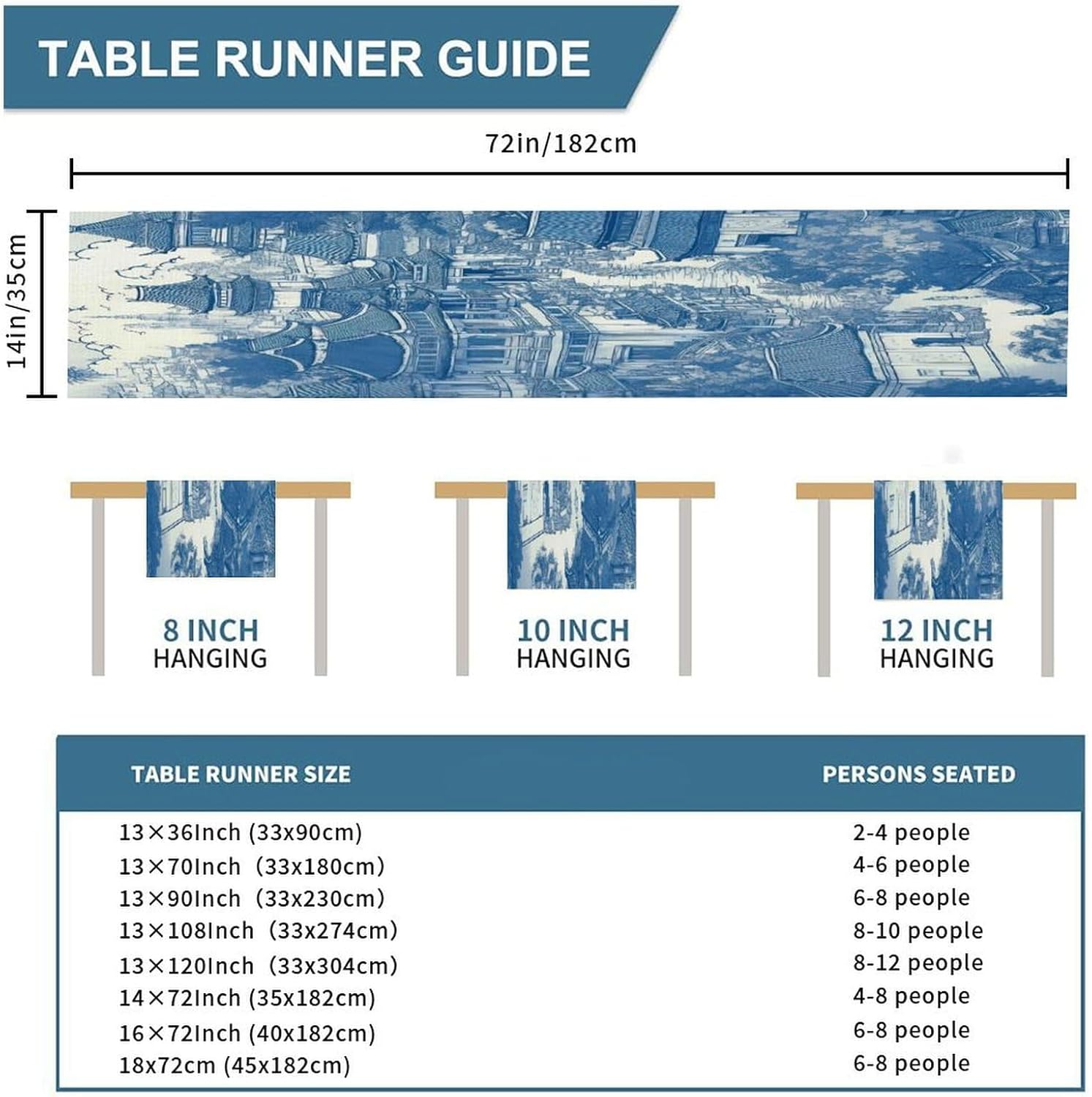 Chinoiserie Runner da tavolo da pranzo per comò e sciarpe, runner da cucina per cene in fattoria, feste festive, matrimoni, eventi, decorazione, 35,6 x 182,9 cm