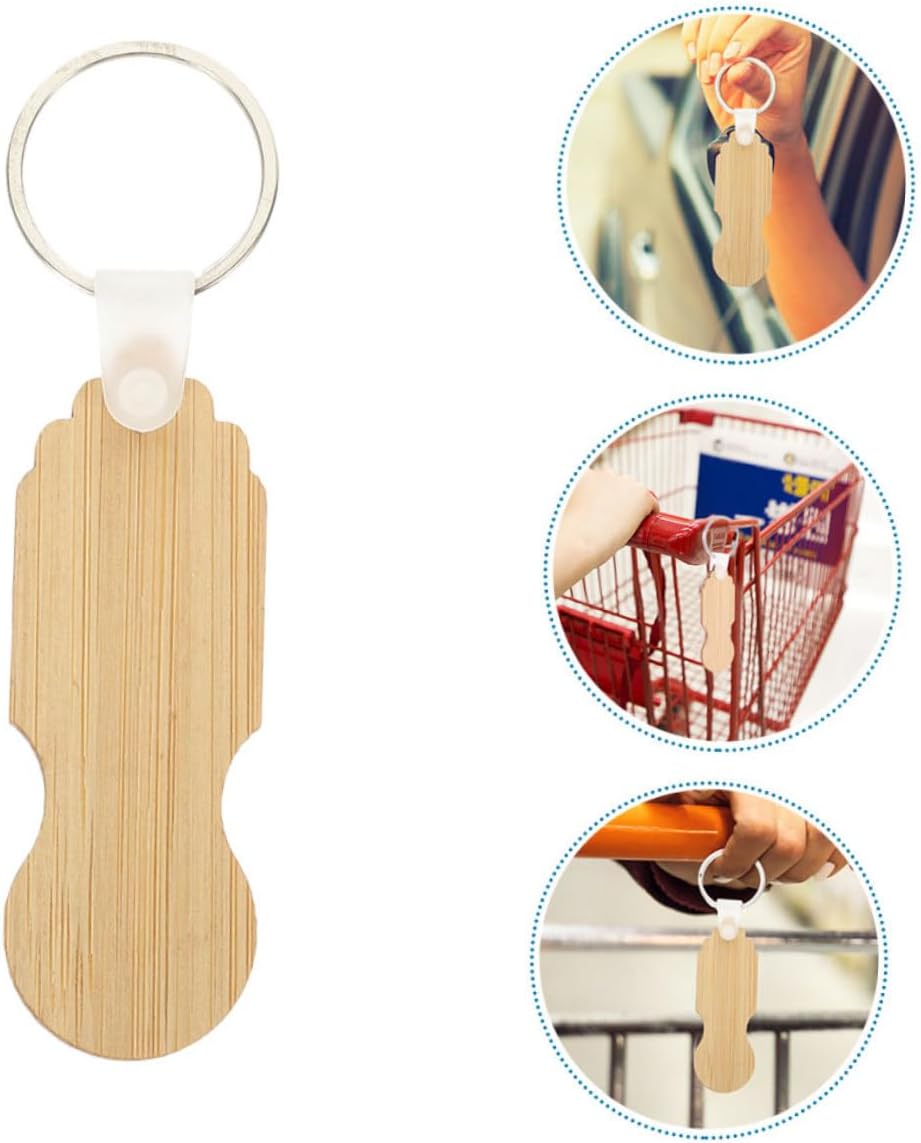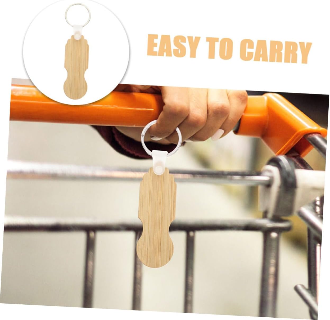 Chip per carrello della spesa in bambù: questo portachiavi unico può anche decorare le chiavi, le chiavi della macchina, borse e altri oggetti che ti piacciono Dispositivo per la rimozione del carrello della spesa: la forma insolita lo rende più facile da estrarre rispetto alla normale forma rotonda e non è necessario bloccare la moneta o il chip del carrello della spesa Chip del carrello della spesa: realizzato in robusto metallo e materiale di bambù, può essere utilizzato a lungo. Chiave estraibile per sblocco carrello Accessori carrello: ha un design semplice ma molto pratico da usare e ti offre una chiave carrello per il supermercato Chip key carrello: dopo aver sbloccato il carrello, si smonta immediatamente. portachiavi con chip per lo sviluppo sostenibile e il carrello della spesa