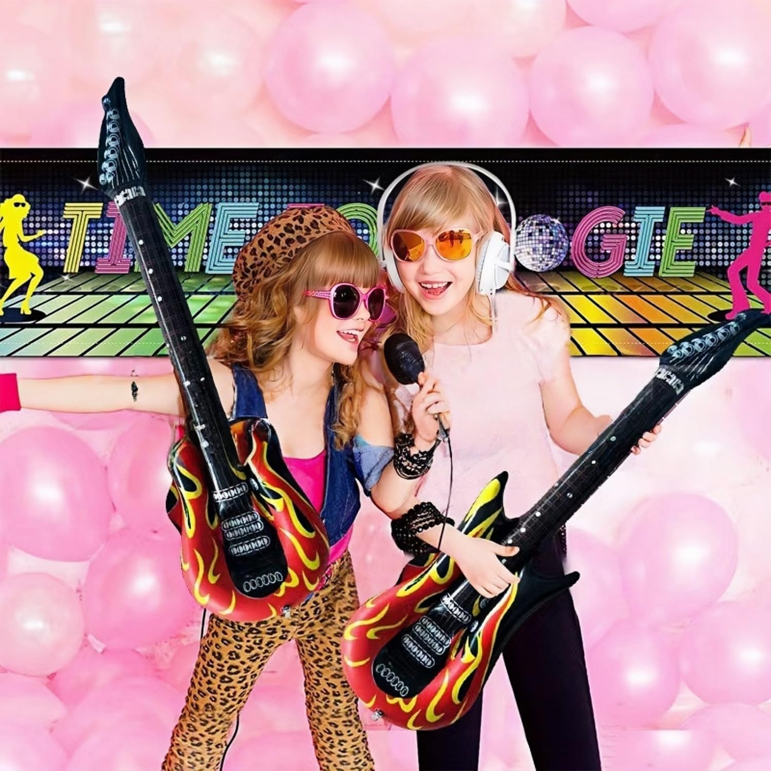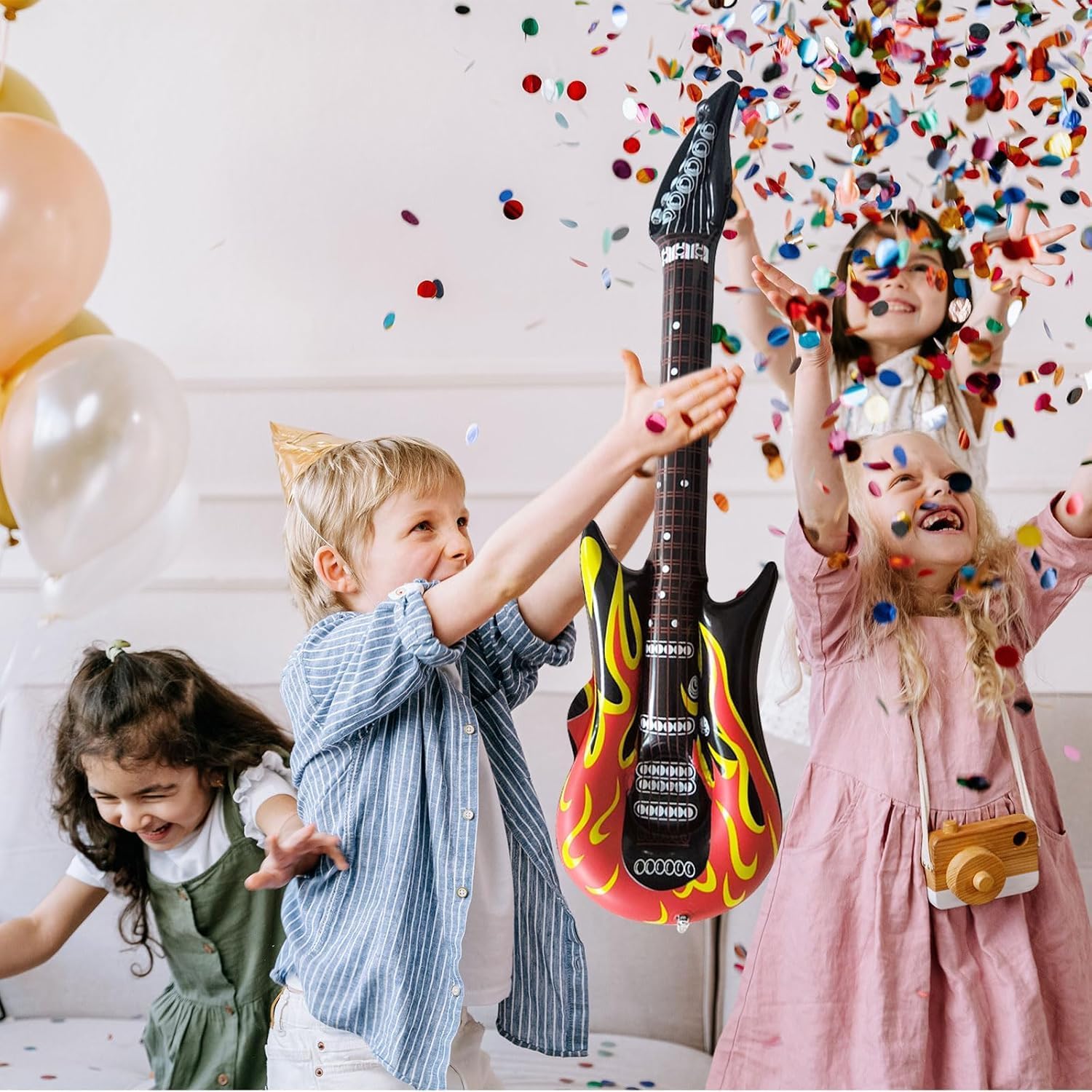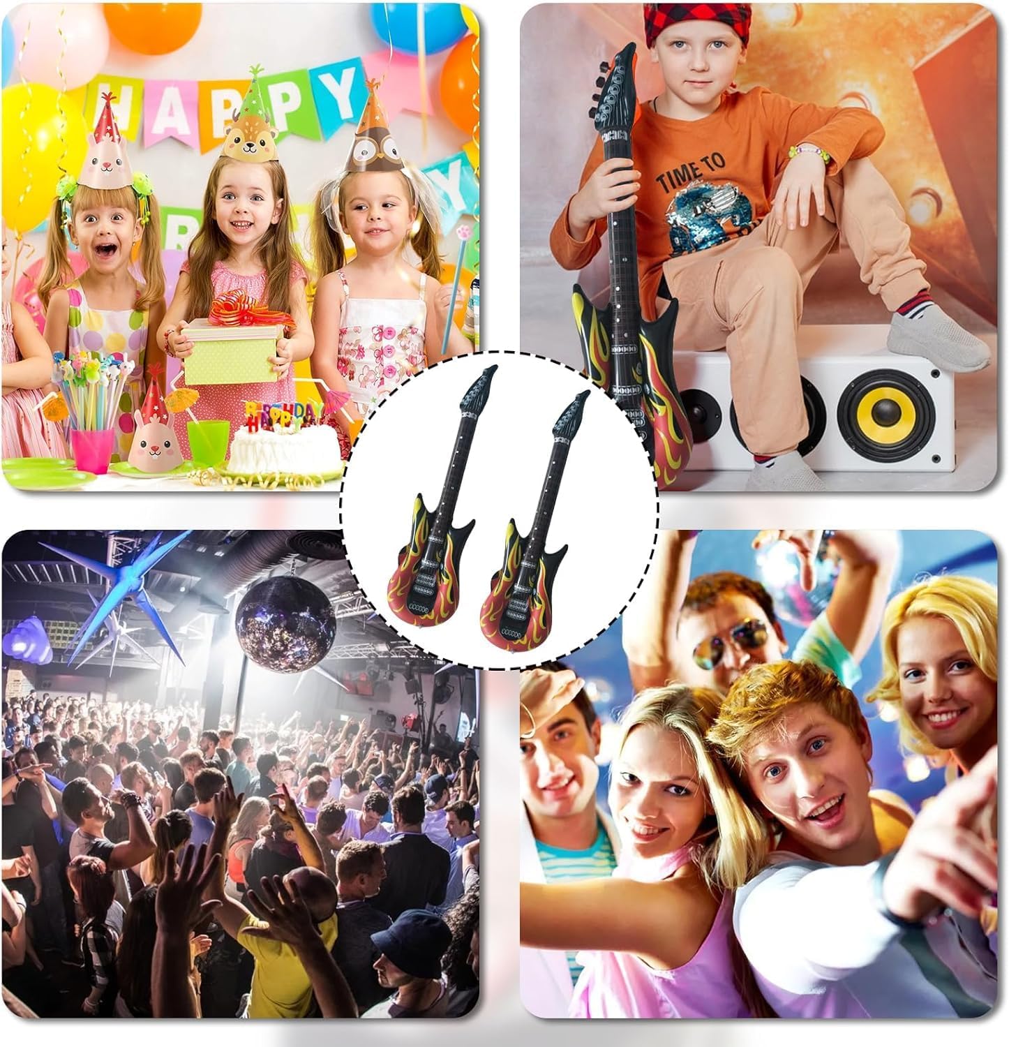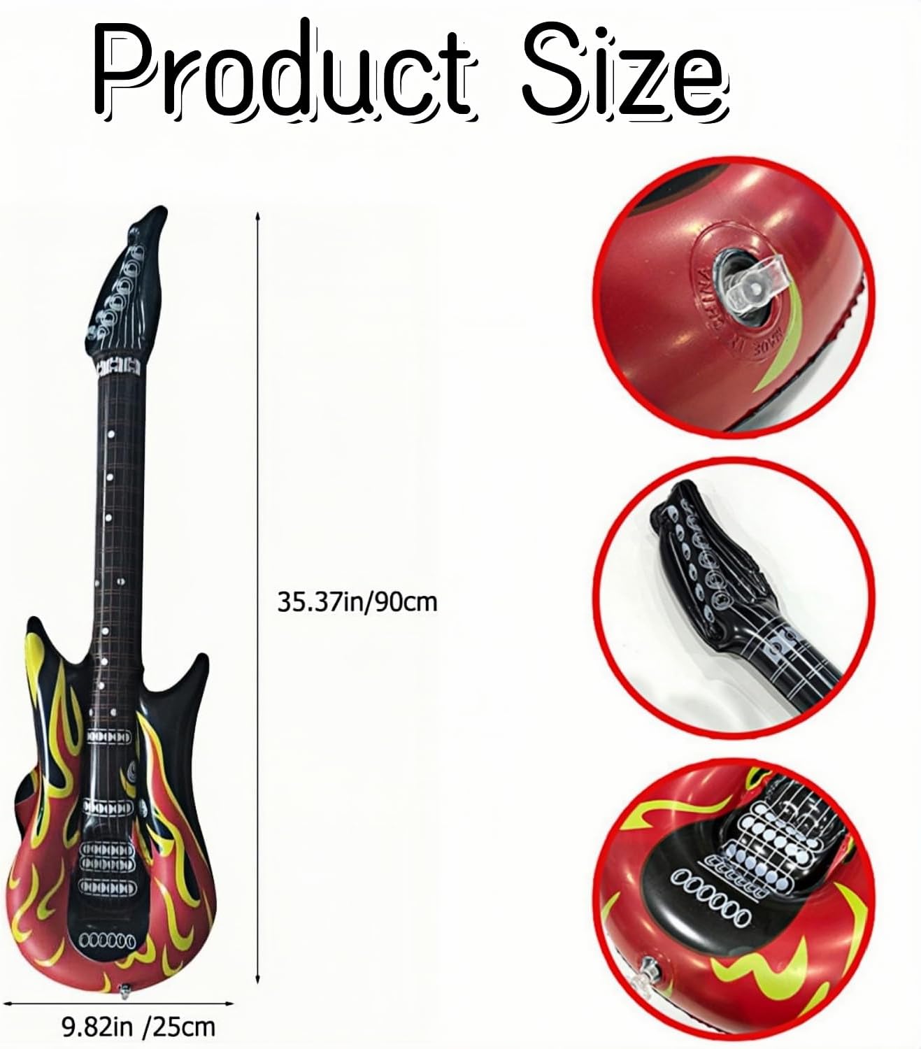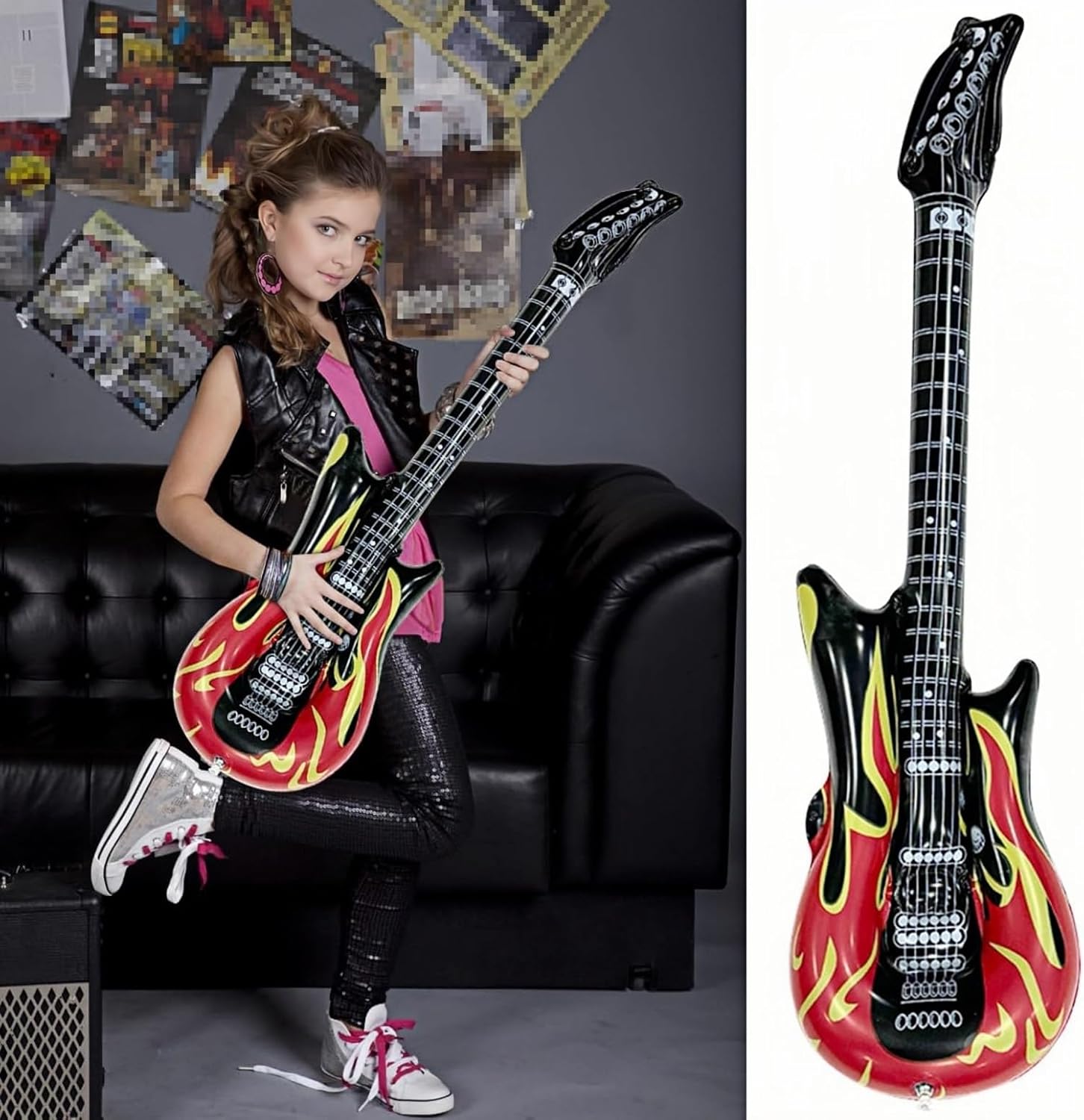 Contenuto del prodotto: Riceverete 2 palloncini a forma di chitarra. Ogni palloncino misura 90 cm ed è di colore rosso, adatto per decorazioni di feste ed eventi rock and roll per bambini. Materiale: Realizzato in materiale PVC di alta qualità, superficie liscia ed elastica, impermeabile, non facile da rompere, resistente per un uso a lungo termine. Chitarra gonfiabile: La superficie di questa chitarra è disegnata con un motivo a fiamma per una maggiore personalità. Può essere utilizzata come decorazione per feste rock, festival musicali. Facile da gonfiare: Gonfiare la chitarra è molto semplice, basta allineare l'ugello dell'aria con la porta di gonfiaggio e soffiare delicatamente con la bocca o la pompa d'aria. Una volta gonfiata, la chitarra diventa robusta, elegante e pronta per l'uso immediato. Ampie applicazioni: I nostri strumenti musicali gonfiabili sono ottimi regali per compleanni o feste. È adatto a qualsiasi fascia d'età e può essere regalato a un bambino vicino a voi o a qualcuno che ama il rock and roll, sarebbe un regalo perfetto. Particolarmente adatto per riunioni di amici, feste e attività all'aperto.
