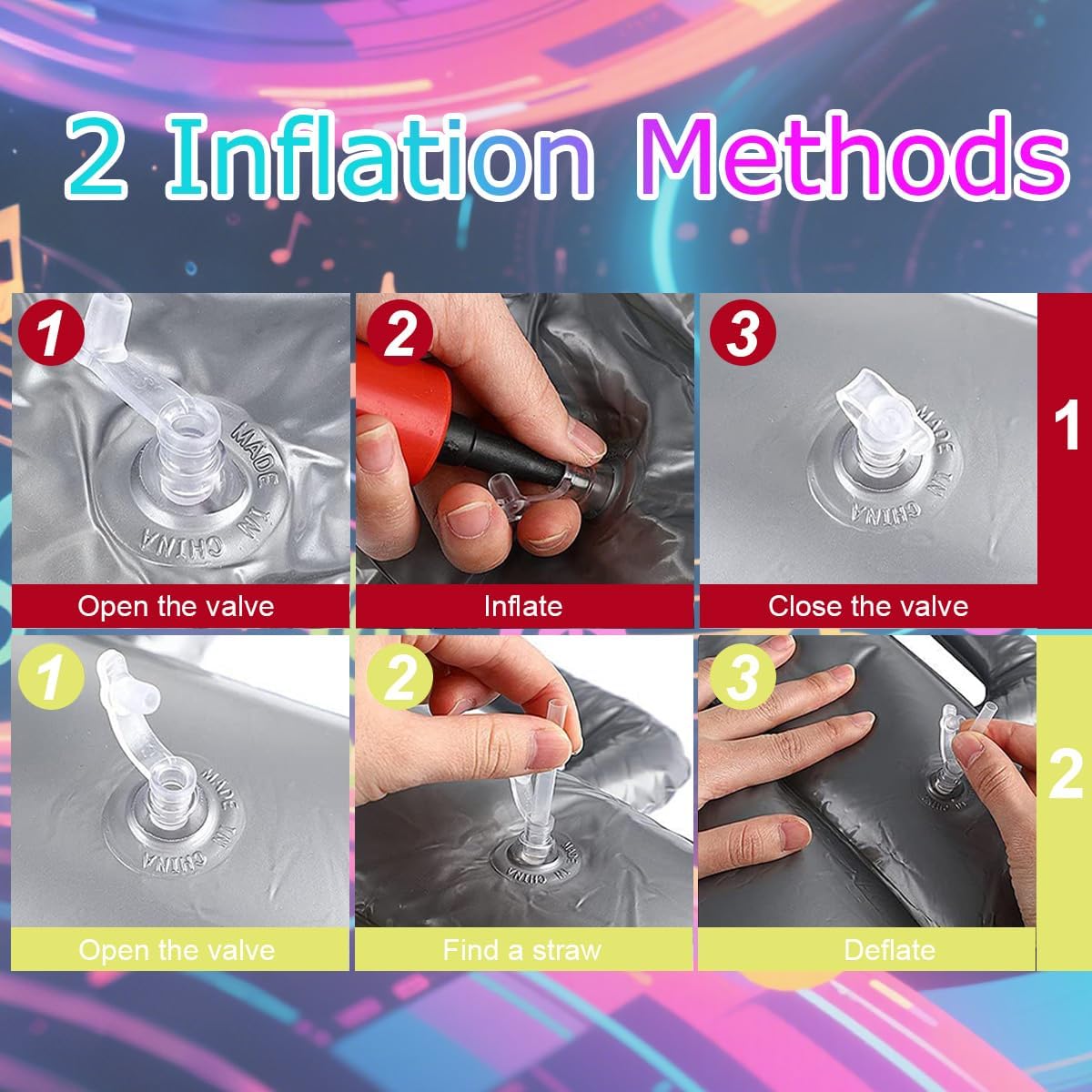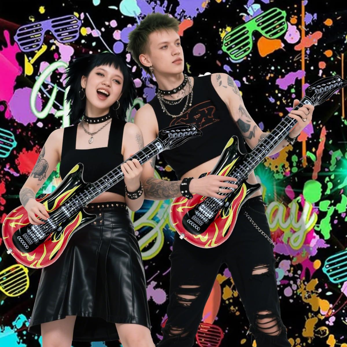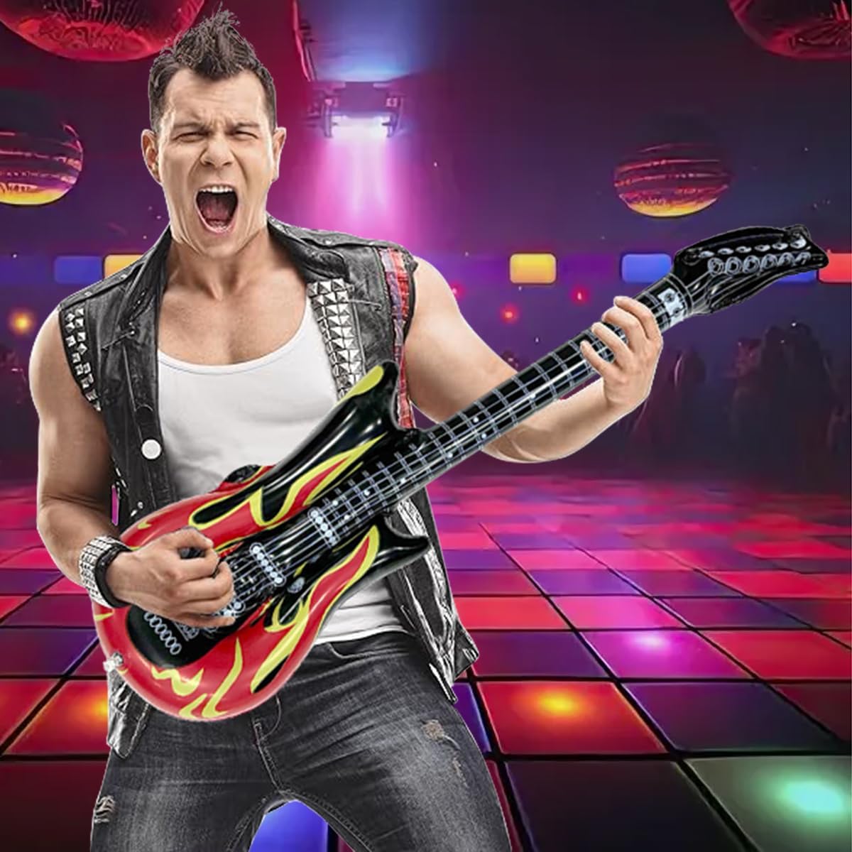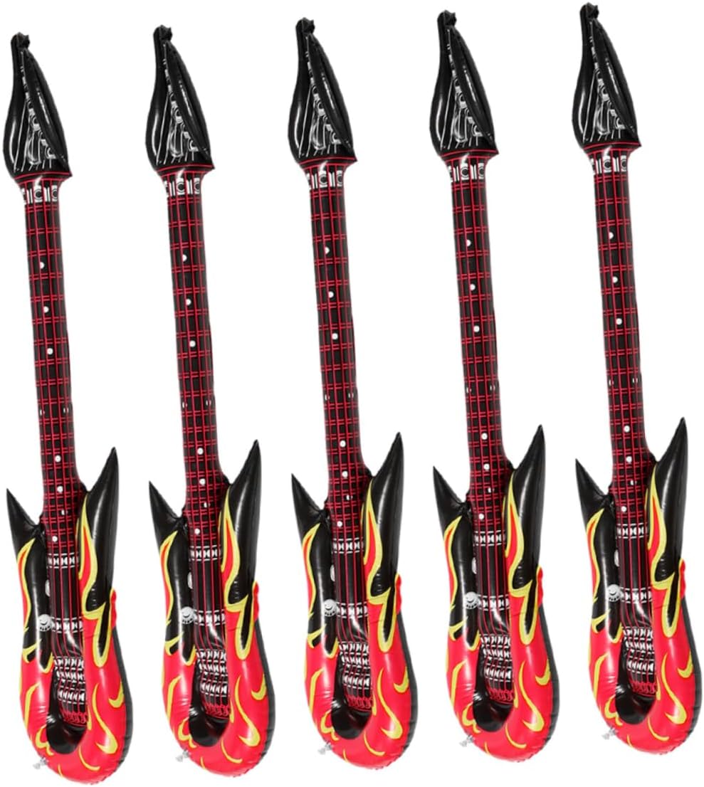 PRATICO SET DA 6 : La confezione include 6 Pezzi chitarra gonfiabile rock.Questa chitarra gonfiabile colpisce per i dettagli di stampa realistici e i colori vivaci, perfetta come decorazione per feste o per una sessione fotografica di gruppo. CHITARRA GONFIABILE DI ALTA QUALITÀ : Le nostre Chitarre Gonfiabili sono realizzate in PVC spesso, sono leggere, riutilizzabili e dotate di valvole di alta qualità facili da gonfiare, possono trattenere l'aria per giorni, sono resistenti e a prova di perdite. DIMENSIONI DELLA CHITARRA GONFIABILE : Ogni inflatable guitar è lunga 100 cm ed è adatta alla maggior parte delle corporature di bambini e bambine. Perfetta per chiunque ami la musica rock e voglia imitare i chitarristi ! FACILE DA USARE : La chitarra gonfiabile per bambini è dotata di una valvola di gonfiaggio rapido che può essere gonfiata in pochi secondi utilizzando una pompa o un bocchino. Facile da piegare e trasportare. UTILIZZO VERSATILE : La nostra chitarra gonfiabile per adulti è ideale per serate karaoke, feste musicali, eventi a tema anni '80, photo booth, Halloween, Natale, carnevale, spettacoli teatrali, compleanni per bambini e come divertente premio o decorazione per feste. SERVIZIO CLIENTI : Per qualsiasi domanda sul prodotto, non esitate a contattarci. Saremo lieti di aiutarvi.