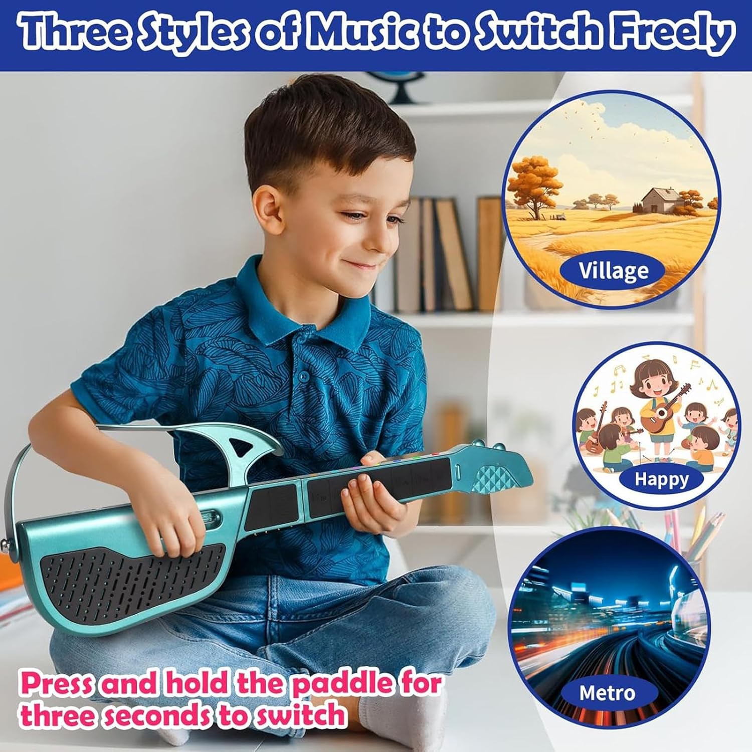 Esplorazione musicale sicura: Offre una sensazione autentica da chitarra con 7 pulsanti di accordi e un plettro, promuove lo sviluppo ritmico in un formato sicuro senza corde progettato per ispirare efficacemente i giovani apprendisti Design Viaggi-Friendly: La chitarra per bambini vanta una struttura pieghevole innovativa che garantisce una conservazione compatta e una portabilità senza sforzo, permettendo ai giovani musicisti di portare con sé il loro strumento musicale in ogni viaggio o avventura, mantenendo tutta la praticità per l'uso quotidiano durante le lezioni di musica o il dedicato al gioco e alla creatività. Integrazione sensori intelligenti: Il avanzato di sensori intelligenti permette ai bambini di creare musica in modo facile e veloce eliminando la necessità di abilità complesse e incoraggiando esperienze di creazione melodica coinvolgenti e interattive con strumento musicale educativo per l'infanzia Struttura ABS Affidabile: Il corpo della chitarra è realizzato in ABS robusto ma sicuro per i bambini, garantendo durabilità e una maggiore tranquillità per i genitori che cercano strumenti affidabili per i propri figli, con una costruzione che resiste all'uso quotidiano Occasione Speciale: Eccellente idea regalo per compleanni e feste, porta gioia ai bambini e accresce il loro interesse musicale con un design accattivante e un suono piacevole che stimola la curiosità e l'esplorazione sonora in modo intuitivo e appassionante.