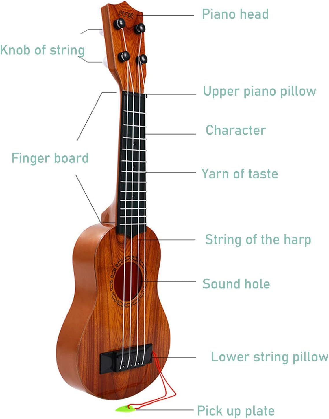 4 stringhe: il giocattolo iculel pedagogico per bambini è dotato di 4 stringhe di chitarra autentiche e rotte per creare un suono chiaro che può incoraggiare i bambini ad imparare. Stimolare lo sviluppo creativo: l'apprendimento della musica può stimolare la creatività dei bambini, sviluppare il loro udito, il loro ritmo e le loro capacità di coordinamento e aiutare i bambini a imparare ad imparare i voti e i ritmi di base. Per i bambini: il giocattolo ukulele portatile è di dimensioni per i bambini e può essere giocato ovunque e in qualsiasi momento. È un ottimo modo per i bambini di imparare la musica e sviluppare le loro capacità di coordinamento degli occhi manuali. Ideale: i giocattoli ukulele sono per Natale, compleanni, festa dei bambini e feste. È anche adatto alle decorazioni per la casa e delle feste e può creare un'aura musicale calda. ABS: i giocattoli ukulelen consistono in plastica ABS ecologica per prevenire lesioni delle .