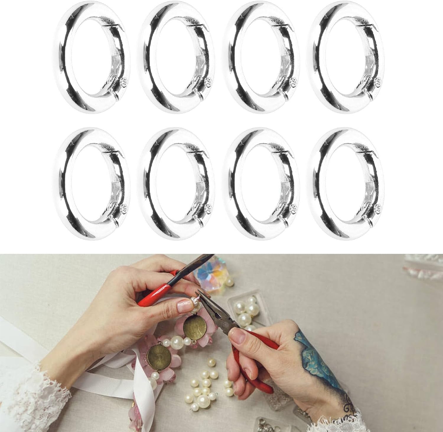 [Accessori versatili per gioielli] Questi fermagli per anelli a molla sono adatti per bellissime collane, bracciali, cavigliere e orecchini. Il loro design durevole garantisce che possano essere trasferiti nella vita di tutti i giorni aggiungendo una finitura professionale ai tuoi progetti di gioielli fatti a mano. Ideale per principianti e artigiani esperti che cercano elementi di fissaggio affidabili. [Costruzione in rame di alta qualità] Questi fermagli ad anello a molla realizzati in rame di alta qualità sono ad alta resistenza, lucentezza fine ed eccellente resistenza all'usura. Il materiale in rame garantisce una lunga durata e un aspetto lucido che migliora l'estetica generale dei tuoi gioielli. [Dimensione e per un facile utilizzo] Ogni chiusura ad anello a molla in rame misura circa 30 mm di diametro con un piccolo foro di 20 mm di diametro. La dimensione è ideale per essere fissata a vari componenti di gioielleria, facilitandone l'apertura e la chiusura e garantendo al tempo stesso una vestibilità sicura per le tue creazioni. [Confezione sfusa dal 20%] Questa confezione contiene 20 pezzi di chiusure ad anello a molla, che forniscono una quantità sufficiente per tutte le esigenze di bricolage fai-da-te. Che tu stia lavorando su più progetti o abbia bisogno di extra per progetti futuri, questo pacchetto sfuso offre grande valore e praticità. [Compatto e facile da riporre] Il design piccolo e compatto di questi fermagli ad anello a molla li rende facili da riporre e utilizzare. Non occuperanno molto spazio nel tuo kit di creazione, ma la struttura robusta garantisce che rimangano affidabili per tutte le tue attività di gioielleria.