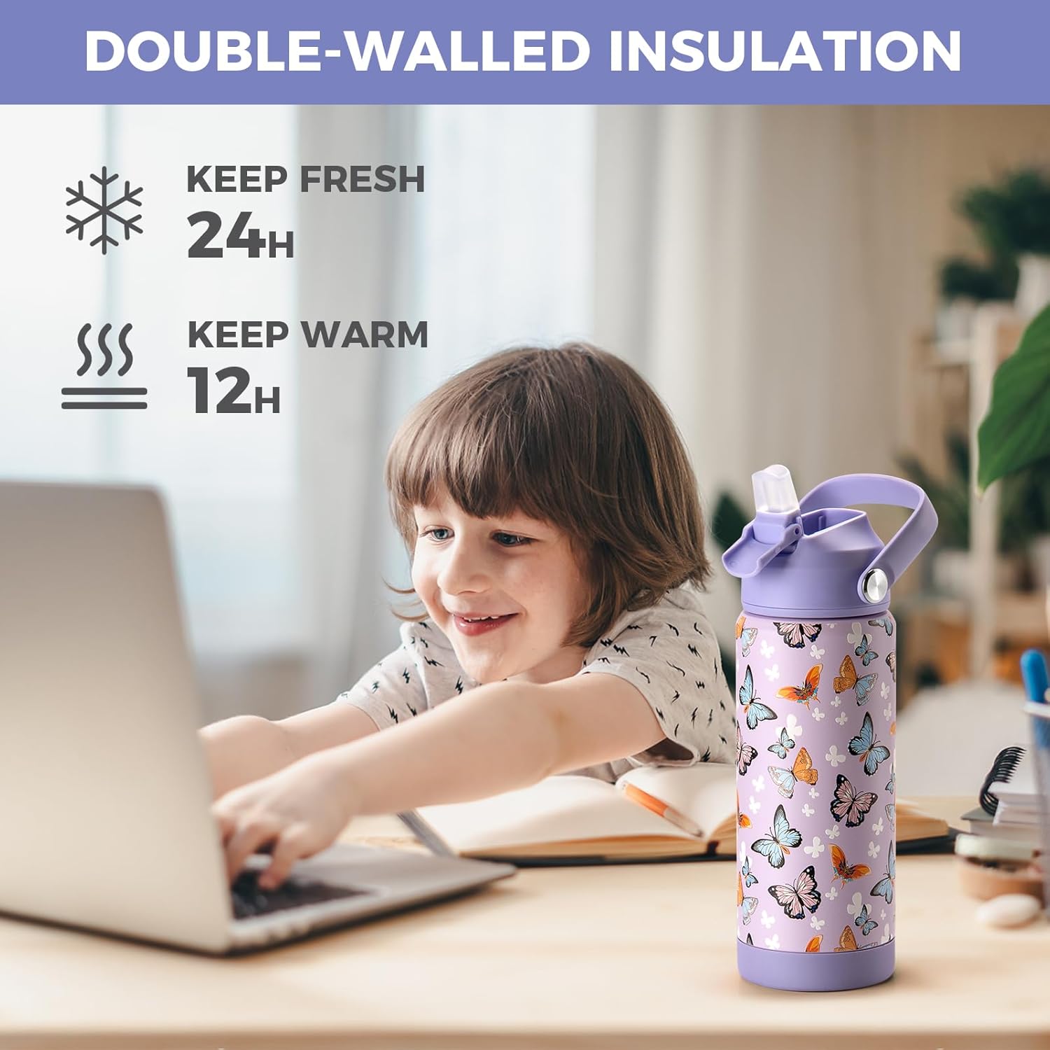 Borraccia lavabile in lavastoviglie, 530 ml Senza BPA, a prova di perdite, a prova di perdite, senza perdite, con manico integrato Bottiglia d'acqua riutilizzabile per bambini, bottiglia d'acqua a doppia parete con beccuccio Semplice da usare in una varietà di scenari: viaggi, scuola, campeggio, escursioni Regalo perfetto per bambini, adatto per Natale, compleanno, Capodanno, San Valentino per bambini, figlie, figli, nipoti, nipoti e così via