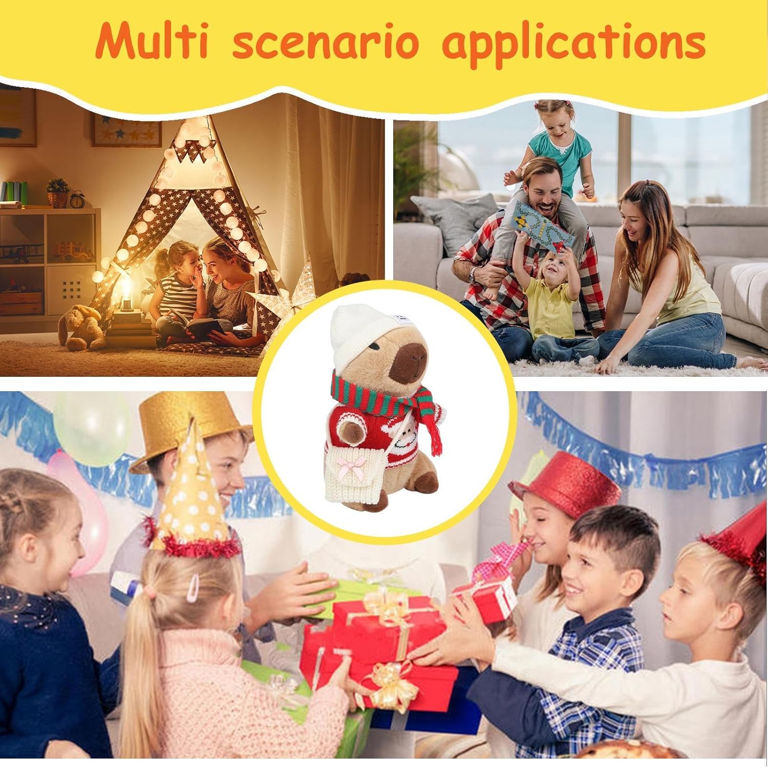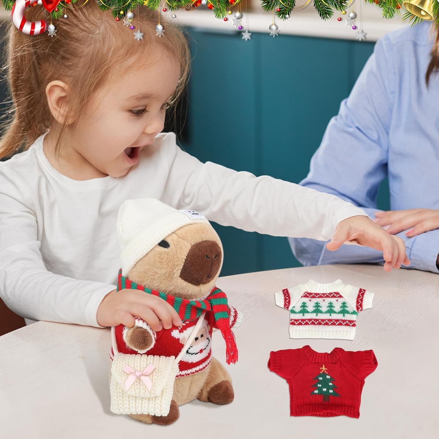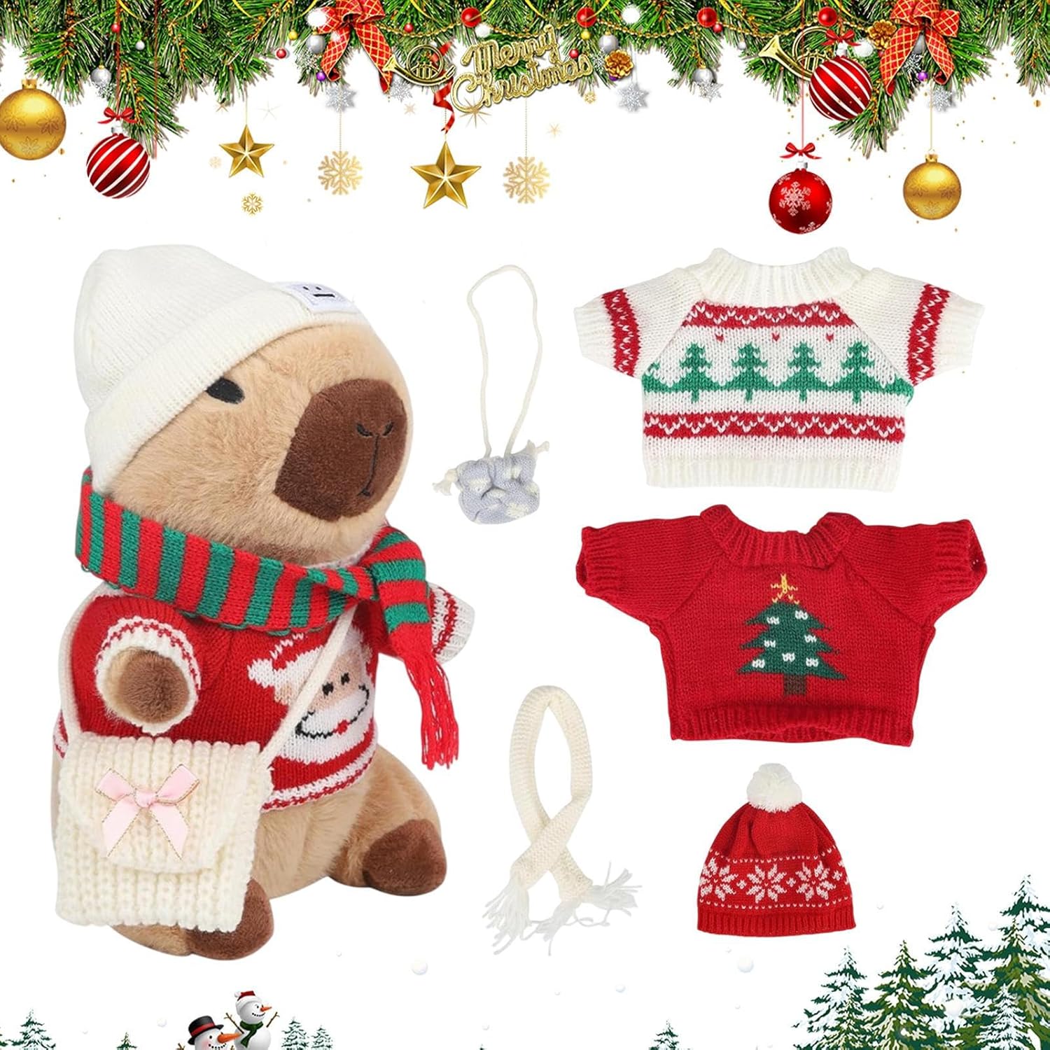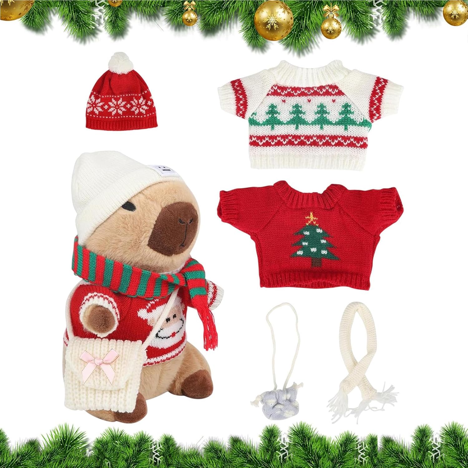 Adorabile tema del fumetto: Infondere il vostro arredamento di vacanza con un fascino irresistibile di questi animali di peluche. Design capybara accattivante, vestito con abiti diversi, emana gentilezza con un simpatico cartone animato Divertente giocattolo interattivo: incoraggia il lato creativo del tuo bambino con i giocattoli di peluche capybara in questa stagione delle feste. Con 9 abiti e accessori festivi come cappelli, borse e sciarpe, miglioreranno le loro abilità pratiche e abbinate creando un compagno di Natale unico Ampiamente utilizzato: solleva le tue decorazioni per le vacanze con questo animale di peluche che serve un obiettivo multiplo. Non è solo il giocattolo di un bambino, ma può decorare il divano, lo scaffale, il letto, ecc. Aggiungere un tocco carino al tuo spazio, è una decorazione versatile che può essere posizionata ovunque Presenti divertenti: mostra il tuo affetto verso amici e familiari in questa stagione delle vacanze con questo animale di peluche. Il suo design unico e il suo bell'aspetto lo rendono un regalo creativo per amici e familiari, esprimendo amore e cura in modo confortante Crea un'atmosfera di vacanza: solleva il tuo arredamento natalizio con questi animali di peluche decorati con accessori per le vacanze. Incarnano le feste e sono perfette per decorare le vostre feste, la vostra casa, la camera e altro ancora, aggiungendo l'atmosfera festiva alla vostra celebrazione delle vacanze
