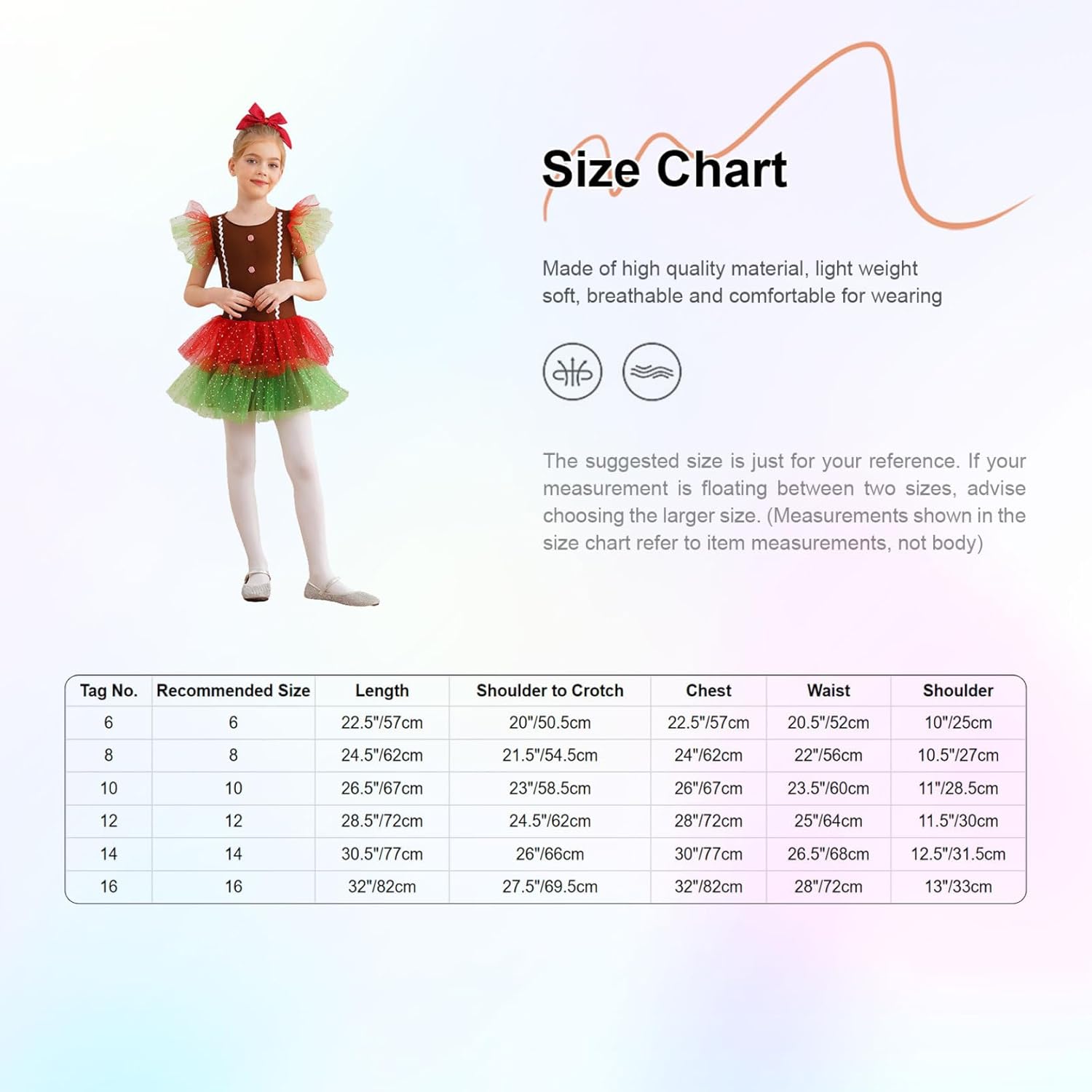 Imposta include : 1Pc Vestito da ragazza Condizione : Nuovo con cartellino Materiale : 85% poliestere, 15% elastan Etichetta No.---|---Dimensione Consigliata---|----Lunghezza---|---Spalla al cavallo---|-----Torace-----|------Vita------|------Spalla--- ------6---------|----------5-6 anni----------|---22.5"/57cm---|-------20"/50.5cm------|---22.5"/57cm---|---20.5"/52cm---|-----10"/25cm-- ------8---------|----------7-8 anni----------|---24.5"/62cm---|------21.5"/54.5cm-----|----24"/62cm----|----22"/56cm----|----10.5"/27cm- ------10--------|----------9-10 anni---------|---26.5"/67cm---|-------23"/58.5cm------|----26"/67cm----|---23.5"/60cm---|----11"/28.5cm- ------12--------|---------11-12 anni---------|---28.5"/72cm---|-------24.5"/62cm------|----28"/72cm----|----25"/64cm----|----11.5"/30cm- ------14--------|---------13-14 anni---------|---30.5"/77cm---|--------26"/66cm-------|----30"/77cm----|---26.5"/68cm---|---12.5"/31.5cm ------16--------|---------15-16 anni---------|----32"/82cm----|------27.5"/69.5cm-----|----32"/82cm----|----28"/72cm----|-----13"/33cm--