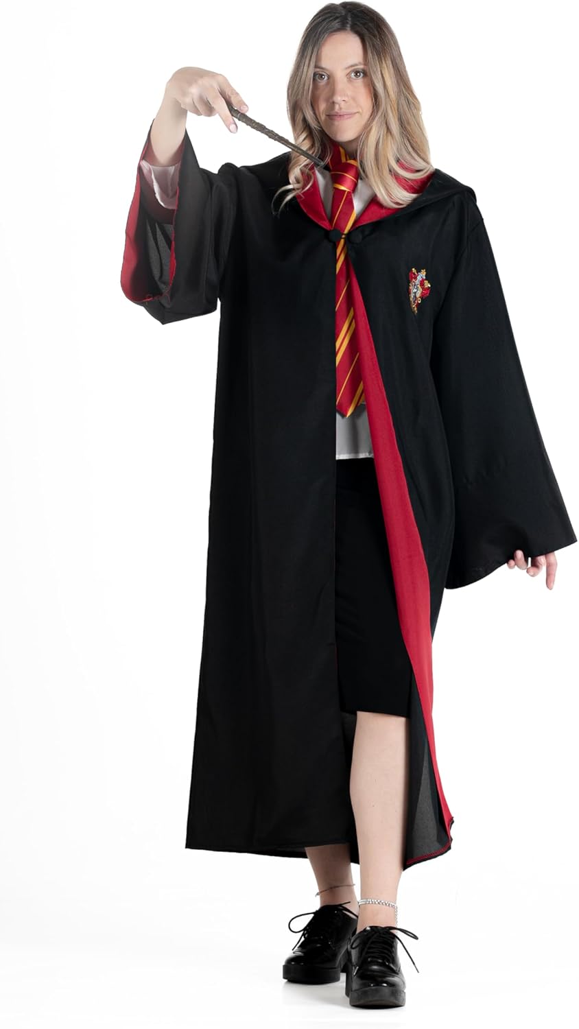 Prodotto originale licenziato Warner Bros. / Wizarding World Contenuto: Mantello con maniche con stemma Gryffindor ricamato, cravatta Taglia unica adulto Stemma Gryffindor ricamato Occasioni: Carnevale, Halloween, compleanni, party, feste a tema, spettacoli, saggi, recite, cosplay