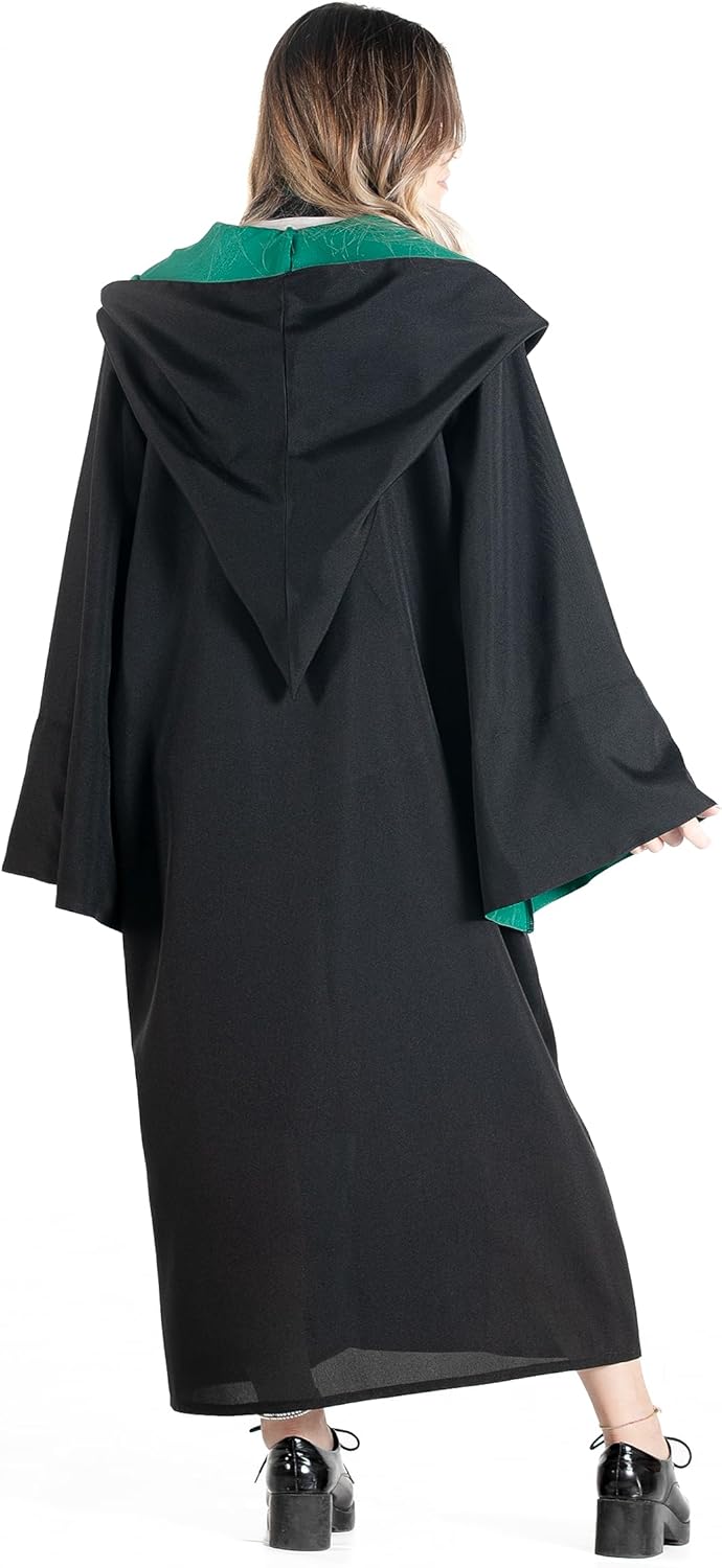 Prodotto originale licenziato Warner Bros. / Wizarding World Contenuto: Mantello con maniche con stemma Slytherin ricamato, cravatta Taglia unica adulto Stemma Slytherin ricamato Occasioni: Carnevale, Halloween, compleanni, party, feste a tema, spettacoli, saggi, recite, cosplay