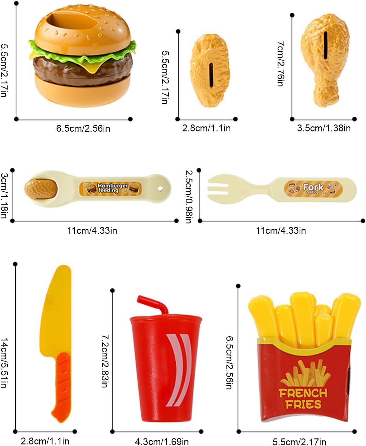 Esperienza di Gioco di Ruolo: Il Play Food Set supporta il gioco di ruolo immersivo offrendo un'esperienza realistica con il suo design dettagliato da fast food, aiutando i bambini a esplorare la narrazione creativa durante il gioco a casa o con amici. Questo set promuove l'immaginazione e la condivisione, ideale per stimolare il gioco cooperativo e lo sviluppo del linguaggio, in un contesto avvincente che favorisce le capacità cognitive e sociali attraverso la simulazione di situazioni quotidia per Gioco di Ruolo: Il set di cibo giocattolo per bambini include una vasta gamma di varietà alimentari come hamburger, patatine e pollo, insieme a complementari che favoriscono una esplorazione creativa prolungata durante le attività di gioco di ruolo, stimolando l'immaginazione e la fantasia in contesti ludici per ore di divertimento coinvolgente e sviluppo della creatività infantile. Rafforza i Legami Familiari: Il Set di Gioco del Cibo promuove attività di alimentazione simulata, creando un'esperienza coinvolgente che rafforza i legami emotivi e migliora le interazioni familiari, per passare del insieme in modo giocoso e significativo, ideale per momenti di qualità in famiglia con giochi divertenti che uniscono genitori e bambini. Miglioramento Coordinazione Occhio-Mano: Il cibo giocattolo per finzione aiuta lo sviluppo educativo supportando la crescita cognitiva e migliorando le abilità motorie fini, il che promuove direttamente la coordinazione occhio-mano. Ideale per l'apprendimento precoce durante processi di gioco interattivo a casa o in classe, favorisce la coordinazione e le abilità cognitive attraverso un uso regolare in situazioni di gioco immaginativo e collaborativo. Sviluppo Lavoro di : I giocattoli alimentari incoraggiano interazioni cooperative multi-giocatore che favoriscono la consapevolezza del lavoro di , stimolano la creatività durante le attività di gioco di ruolo ristorante e forniscono un'espansione dello scenario coinvolgente per un divertimento collaborativo, enhancing le competenze sociali e la capacità di lavorare insieme in modo creativo e coinvolgente.