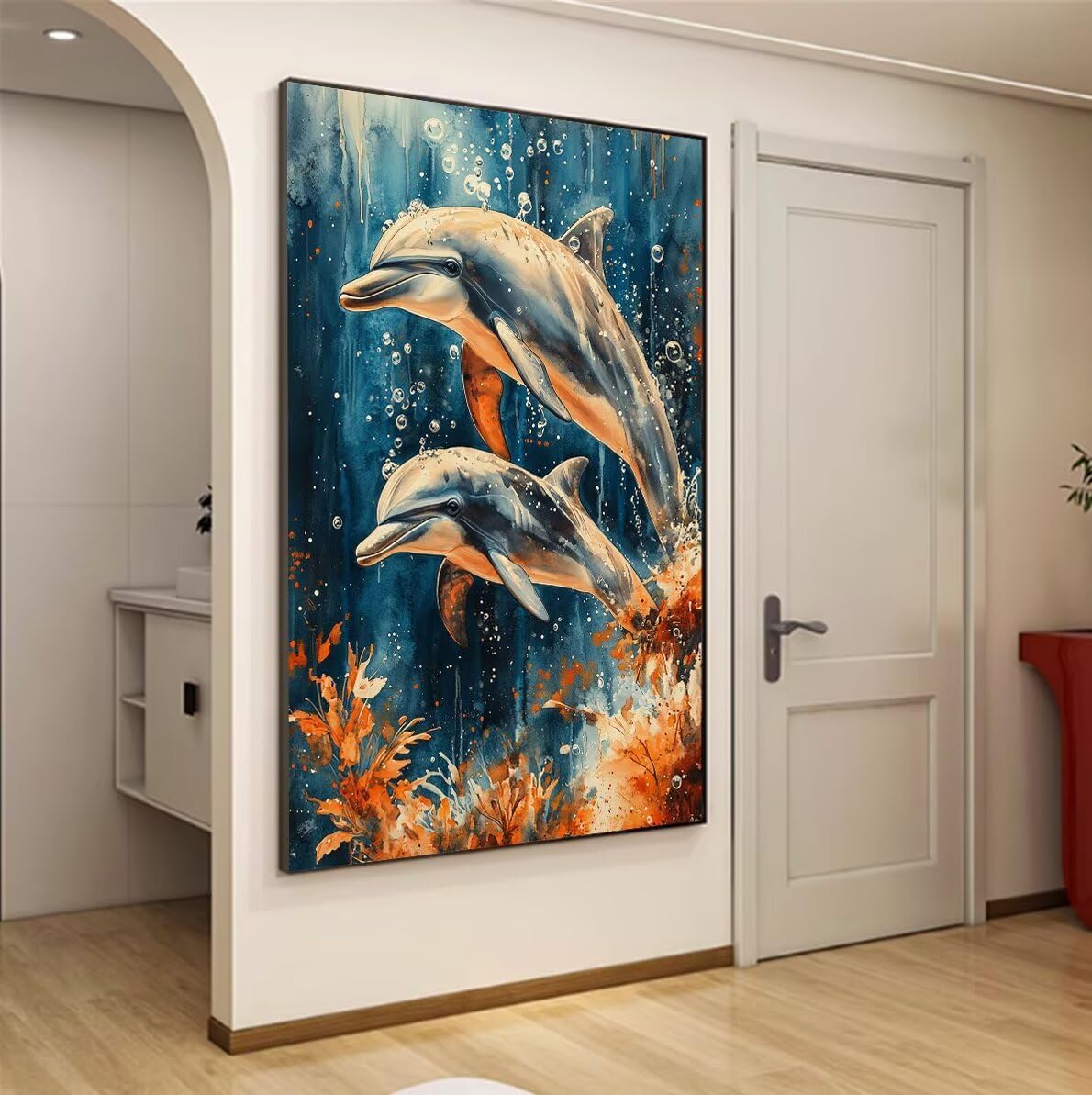 Cielo stellato Dipingere con i Numeri Delfino Paint by Numbers Dipingere con i Numeri Bambini con Cornice 50x70cm Tela, Kit Pittura Adulti Fai da Te con Vernici e 3 Pennelli, Home Room Decor F-930