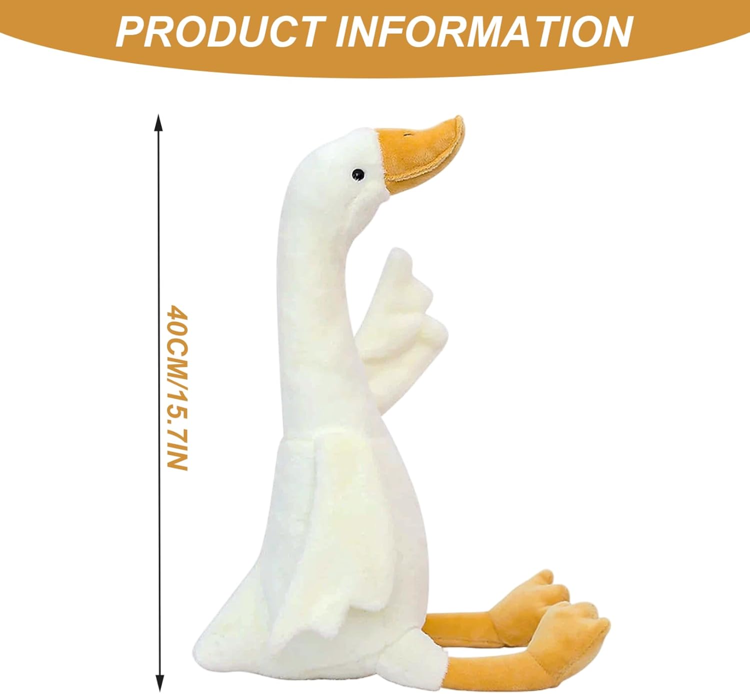 Decorativo e funzionale: oltre ad essere un accogliente peluche, funge anche da elegante decorazione a forma di cigno in camere da letto, sale giochi o spazi abitativi, aggiungendo calore e fantasia a qualsiasi ambiente. Utilizzo versatile e facile manutenzione: leggero ma robusto, questo peluche a forma di oca è indefinitamente perfetto per coccole e relax e può essere pulito facilmente per rimanere fresco e invitante per il divertimento quotidiano. Design adorabile e tenero: l'animale di pezza del cigno presenta un corpo di peluche irresistibilmente carino e morbido, perfetto per abbracciare e coccolare ragazze, ragazzi e adulti, rendendolo un compagno affascinante o un cuscino confortante. Materiale peluche: realizzata con tessuti morbidi, questa anatra imbottita offre un comfort duraturo pur mantenendo la sua consistenza morbida e l'aspetto vibrante attraverso l'uso continuo. Idea regalo perfetta: questo cigno di peluche da 15,8 pollici è un delizioso regalo di compleanno, vacanza o festa per bambini e adulti, ideale per chi ama l'arredamento del cigno o i morbidi animali di peluche.