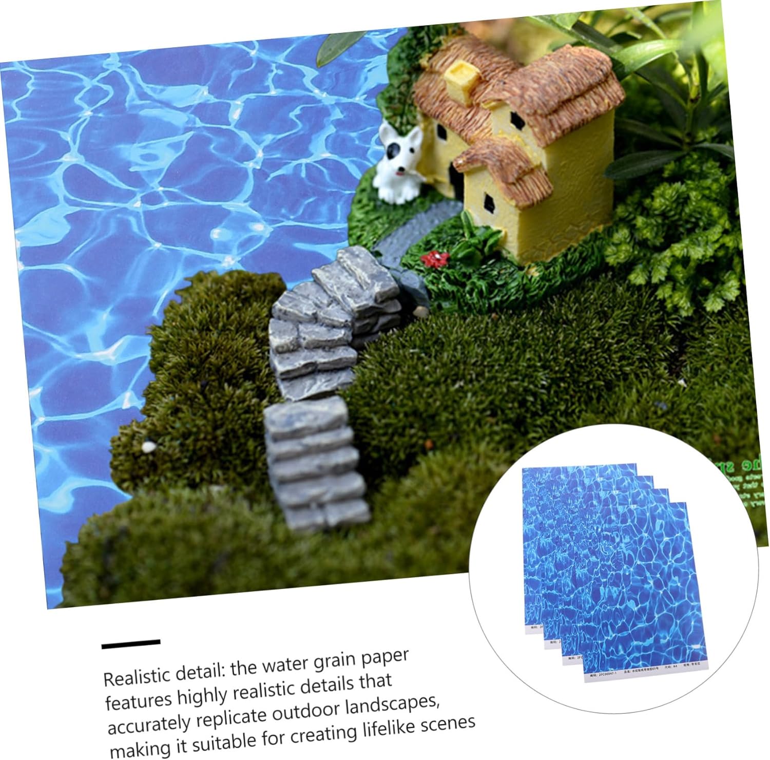 Artigianato fai-da-te: adatto per gli appassionati di artigianato, consente l'assemblaggio e la decorazione fai-da-te basati su creatività, ornamenti murali, sfondo delle onde dell'oceano per sandbox. Ampia gamma di applicazioni: può essere utilizzato in vari scenari, ad es. B. Decorazione per interni, paesaggi da giardino e mostre di modelli, per migliorare l'estetica, come poster delle onde dell'oceano o come adesivo da parete per la cameretta dei bambini. Multiuso: adesivo decorativo con motivo a grana d'acqua delicato e simulato per camera da letto, soggiorno, camera dei bambini, ecc., adesivo da parete, adesivo con onde dell'oceano. Ben progettato: con motivi a grana d'acqua ben progettati, gli adesivi murali rendono la casa più bella e più calda, come sfondo di una piscina o come decorazione domestica. Realistico: questa carta a grana d'acqua presenta motivi ad acqua altamente realistici che replicano accuratamente le superfici naturali dell'acqua all'aperto, rendendola ideale per creare modelli realistici, poster da parete e adesivi murali con superfici d'acqua