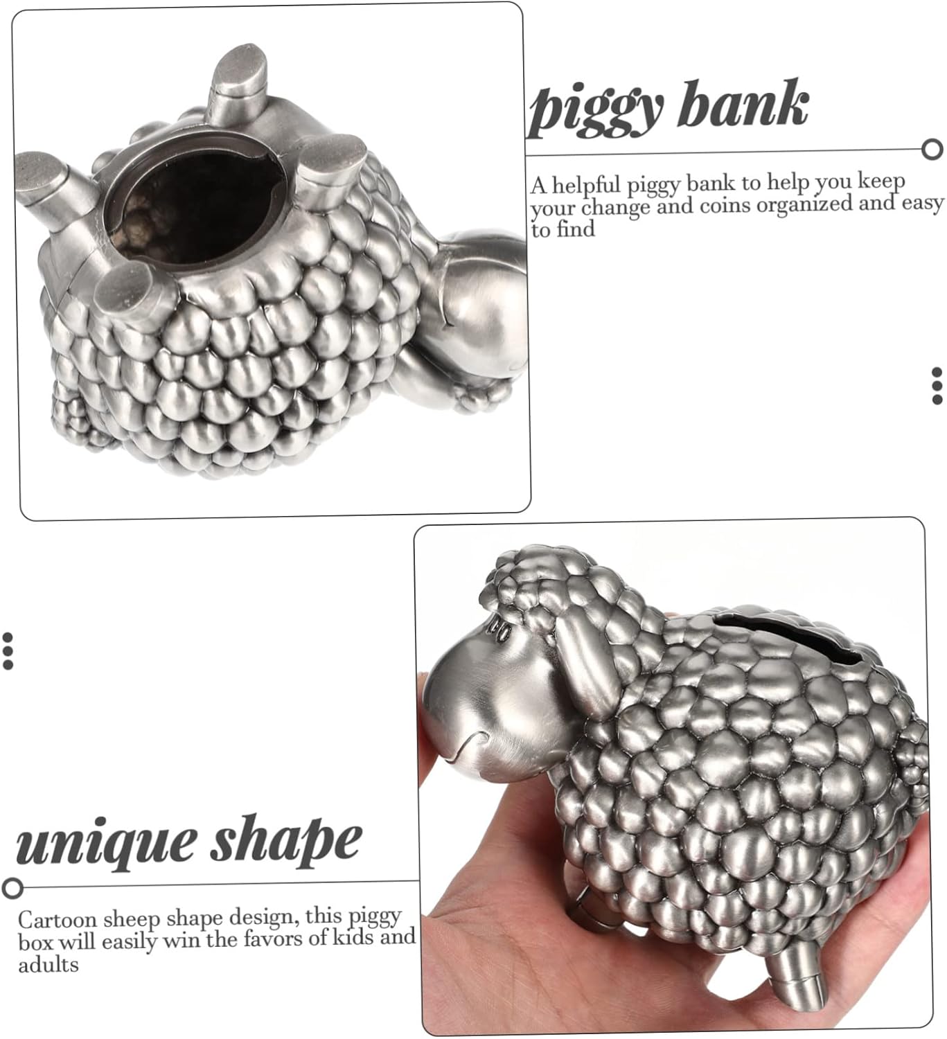 Salvadanaio per ragazzi: adatto ai che hanno l'abitudine di risparmiare denaro, questo salvadanaio è facile e comodo da usare, salvadanaio a forma di cartone animato Salvadanaio giocattolo: questo salvadanaio può abbinarsi bene all'arredamento della tua casa e aggiungere un ulteriore abbellimento allo spazio della tua stanza, salvadanaio per Salvadanaio salvadanaio: realizzato in lega di zinco, inodore, senza spigoli, senza sbiadimento, piacevole al tatto, non si rompe facilmente, salvadanaio per Salvadanaio per : un utile salvadanaio per aiutarti a tenere il resto e le monete organizzati e facili da trovare, salvadanai per Salvadanaio a forma di pecora per : si adatta a quasi tutti i tipi di monete standard, incoraggia i a risparmiare denaro con questo salvadanaio, salvadanaio per