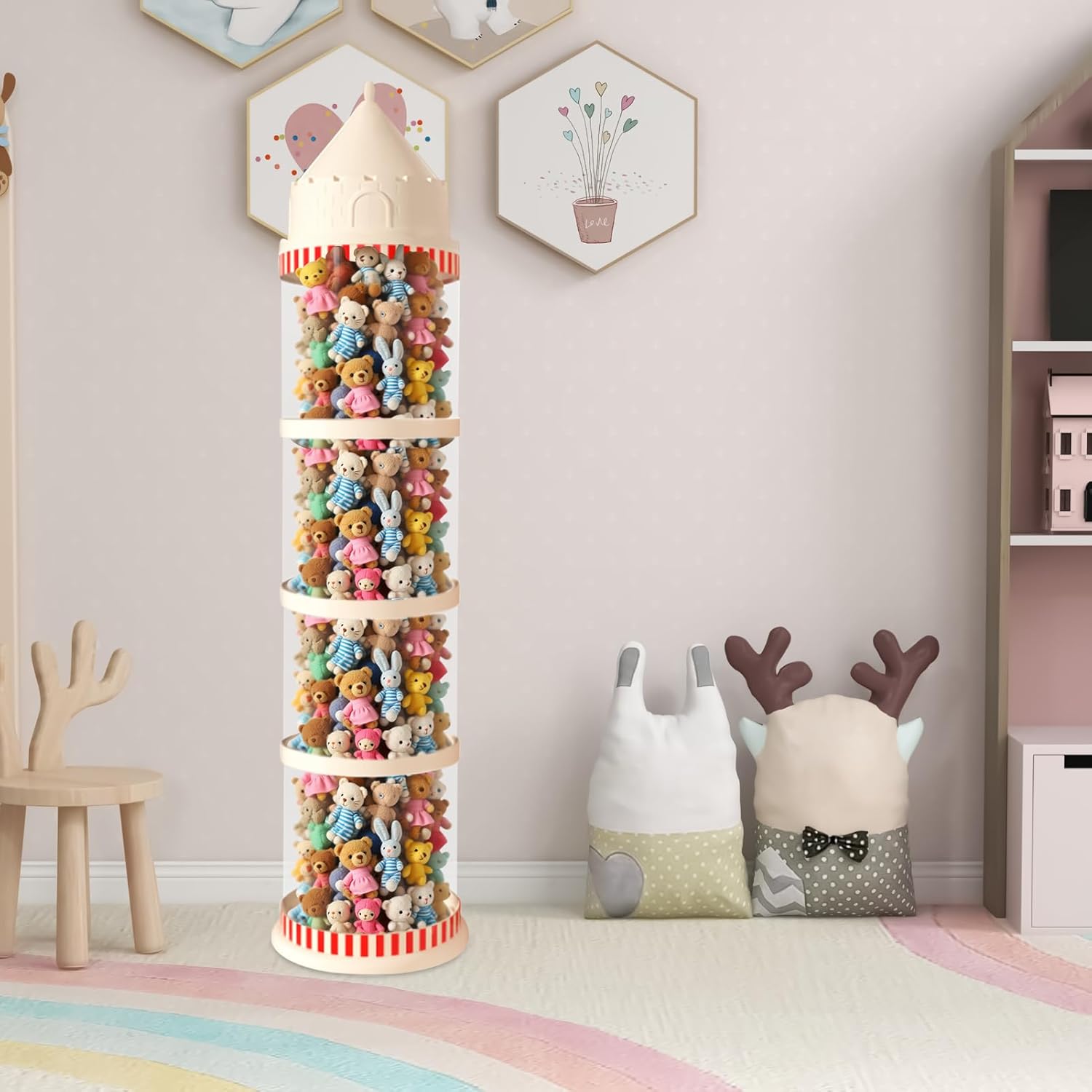 Note giocose del castello: colori vivaci e simpatici estetici diffondono un'atmosfera fiabesca nelle stanze dei bambini, arricchiscono l'ambiente con ispirazione per riporre i giocattoli grazie a elementi fantasiosi del castello Gestione efficiente: semplifica l'organizzazione dei giocattoli con pratico sistema di classificazione per dimensioni variabili, grazie al design ben studiato e salvaspazio Pulizia garantita: la struttura antipolvere protegge dallo sporco, isola le particelle nocive e garantisce condizioni di conservazione permanenti per animali di peluche. Facile da utilizzare: il design trasparente assicura una visibilità chiara e una rapida ricerca dei giocattoli, offre una gestione comoda e un facile accesso ai giocattoli di peluche grazie a un design ben progettato per mantenere i contenuti sempre visibili. Stabilità: il robusto materiale ABS mantiene forma e funzionalità per anni, offre una resistenza affidabile alla deformazione per un uso continuo nella cameretta dei bambini