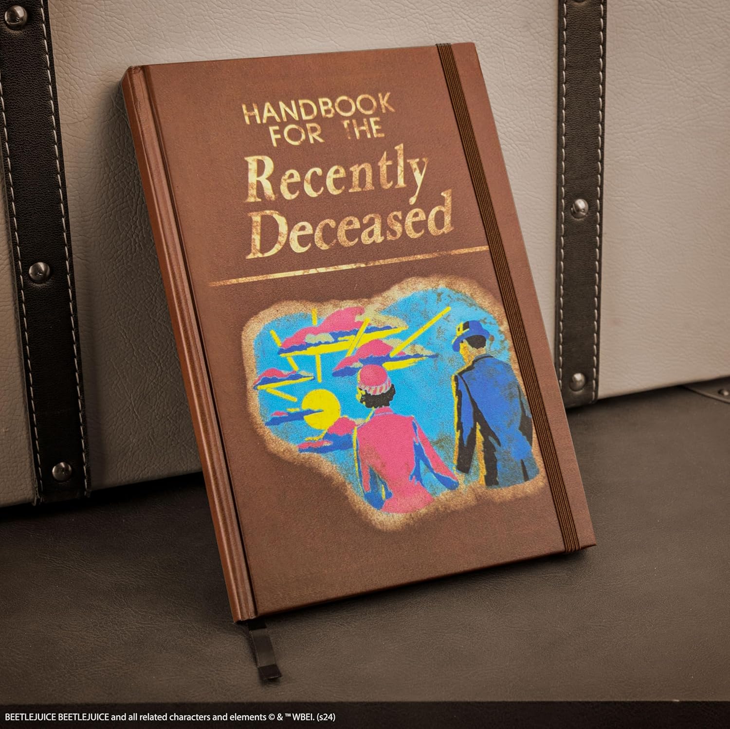 FAI UN GIRO SELVAGGIO CON BEETLEJUICE: apri questo taccuino con copertina rigida per scoprire pagine a righe vintage perfette per il brainstorming o per registrare i tuoi pensieri. Include deliziose illustrazioni che migliorano la tua esperienza di scrittura. PRODOTTO UFFICIALE CON WARNER BROS. LICENZA: Questo notebook è stato sviluppato nel rigoroso rispetto della licenza Warner Bros.. DESIGN ORIGINALE: In una calda tonalità marrone che ricorda l'iconico libro recentemente scomparso del film, questo taccuino compatto è tenuto saldamente insieme da una fascia elastica, che lo rende facile da trasportare ovunque. Inoltre, viene fornito con segnalibri di carta per la tua comodità! UN MARCHIO BEN RICONOSCIUTO: Warner Bros. si affida a Cinereplicas per rappresentarli in termini di produzione di merchandise e per sviluppare linee di prodotti Beetlejuice di alta qualità.
